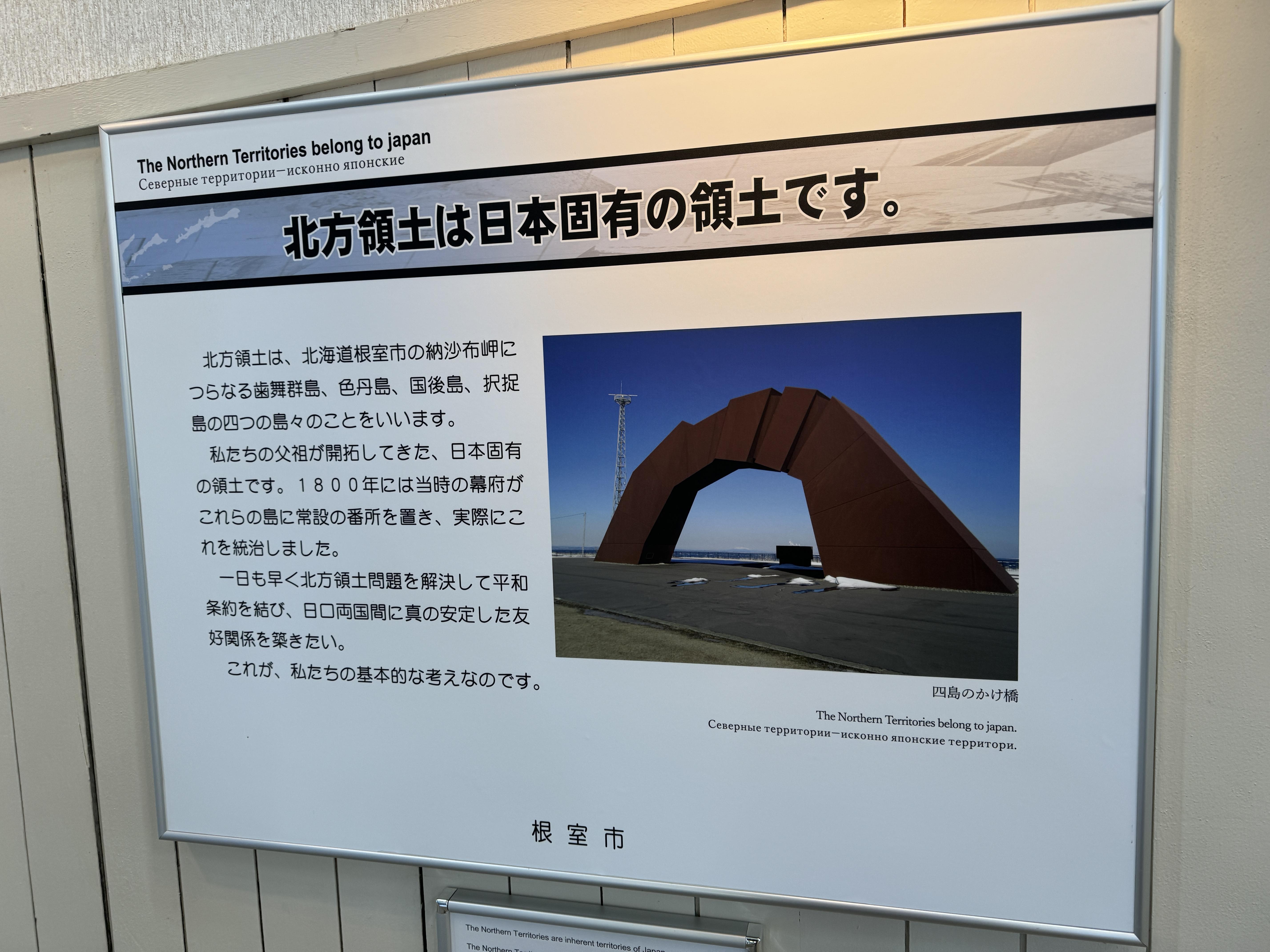일본 내, 특히 홋카이도 내에서는 쿠릴 열도 분쟁이 상당히 중요하게 다뤄지고 있습니다.