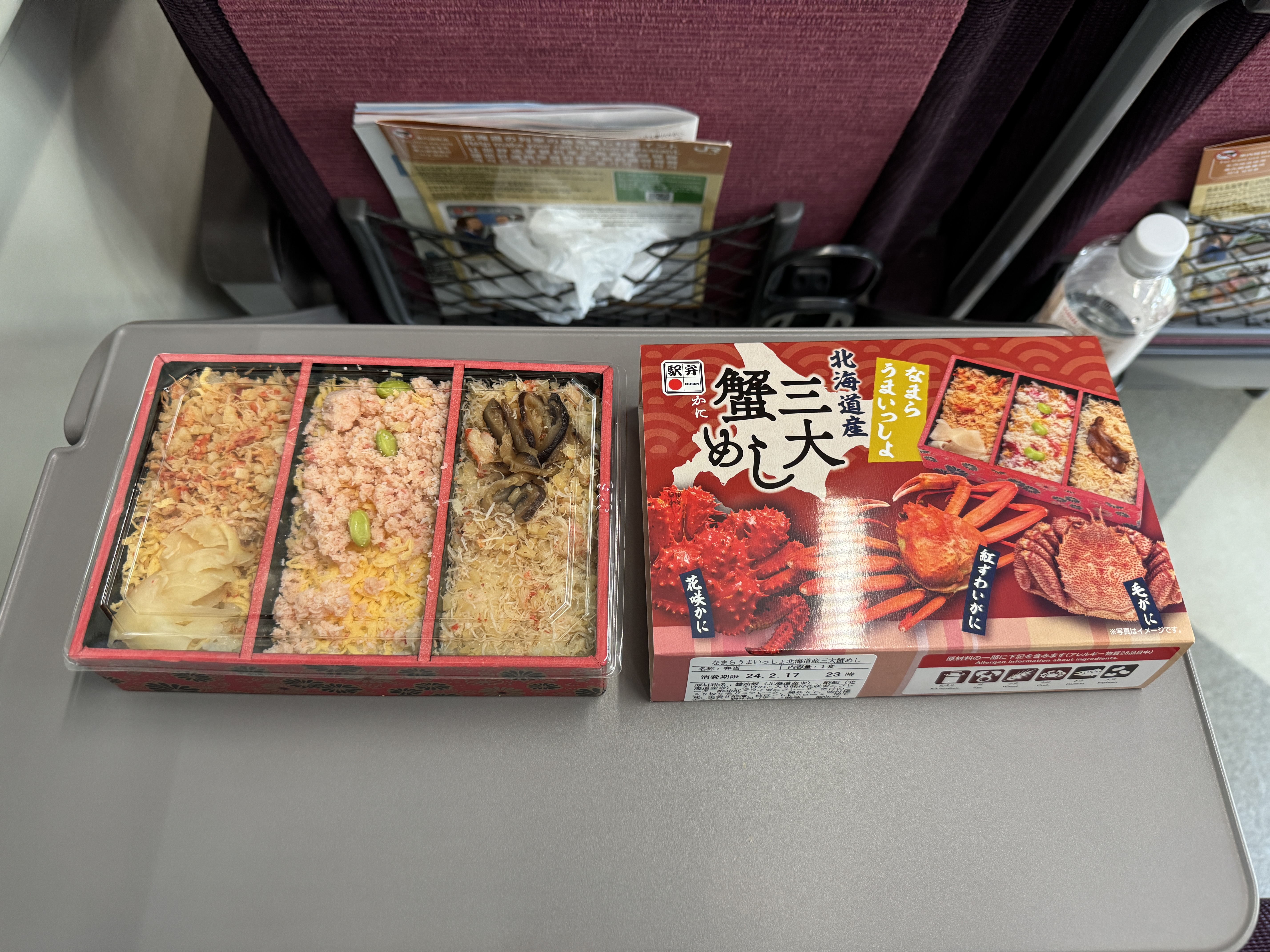 쿠시로역에서 산 에키벤을 꺼내 먹습니다.