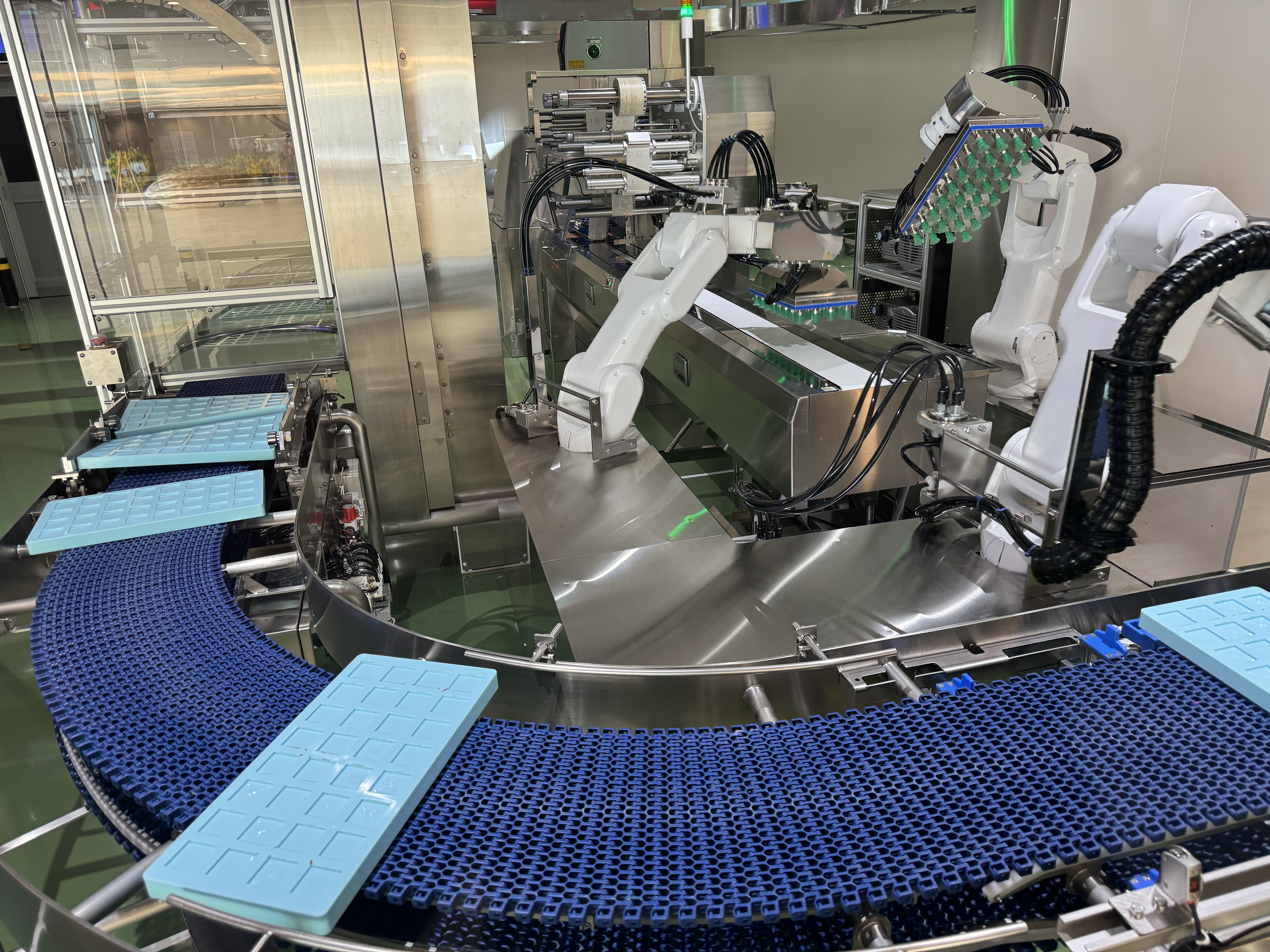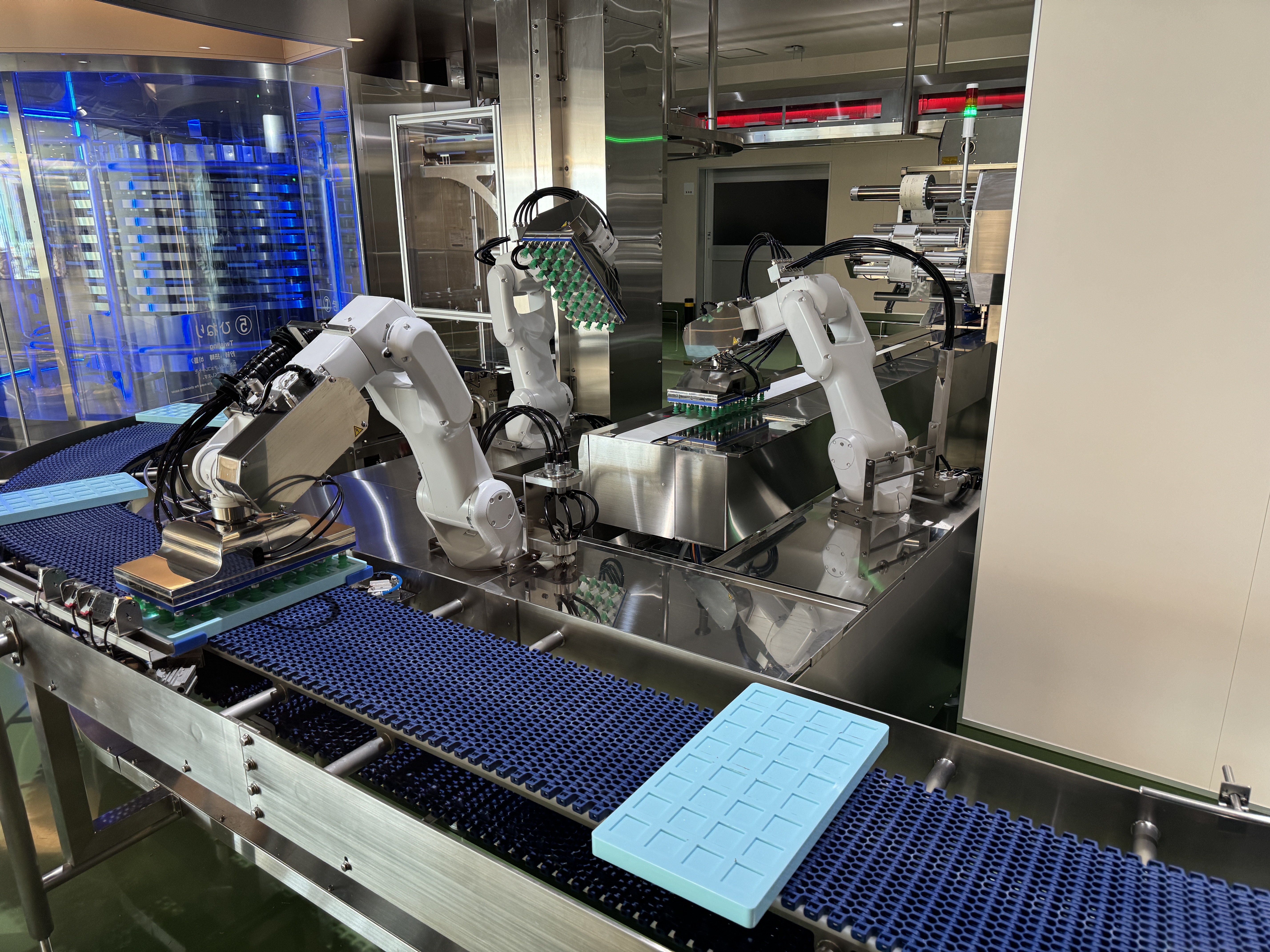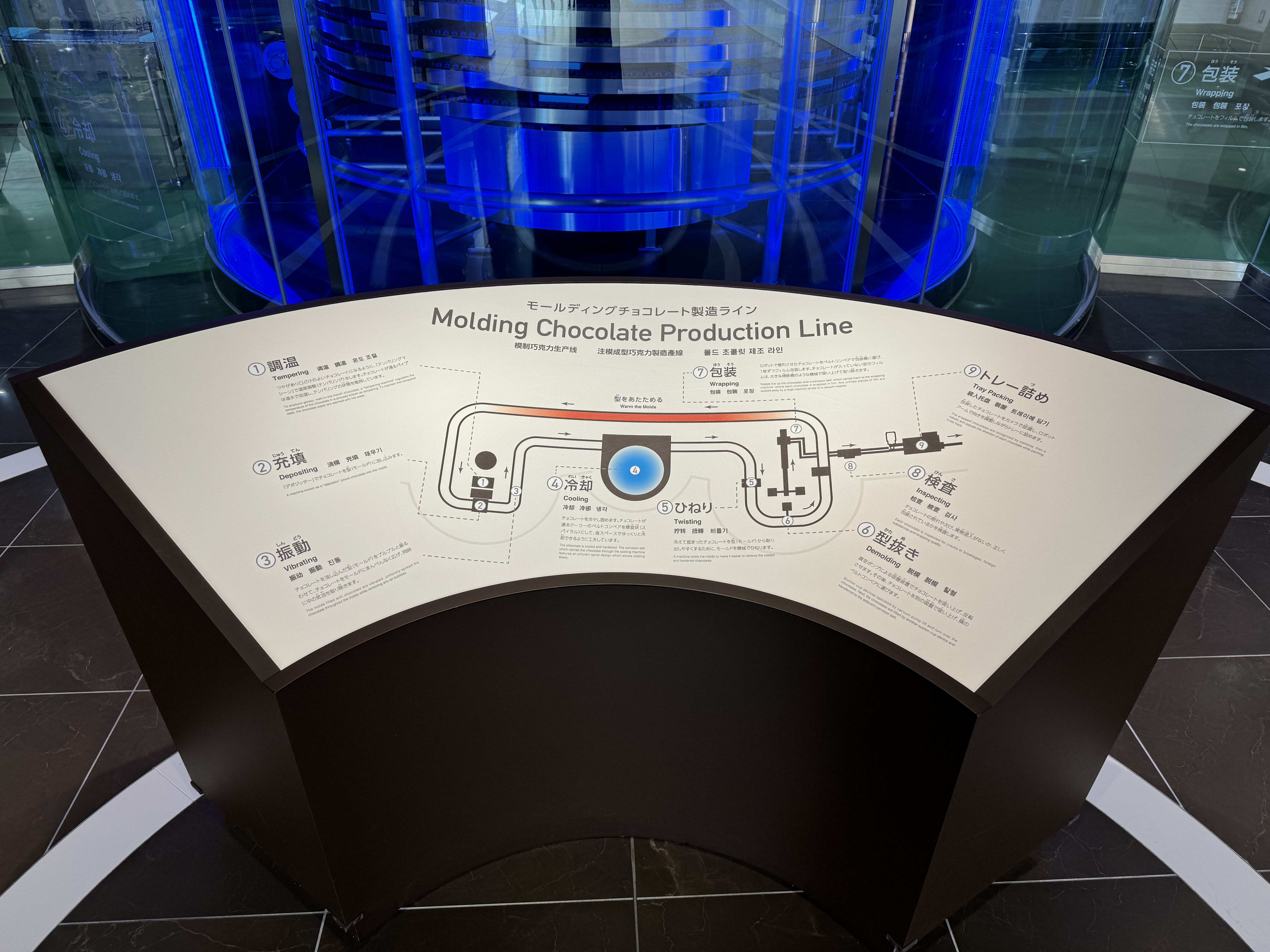 기념품점 옆에는 초콜릿을 틀에 넣고 성형하는 과정을 보여주는 생산 라인 모형이 있는데