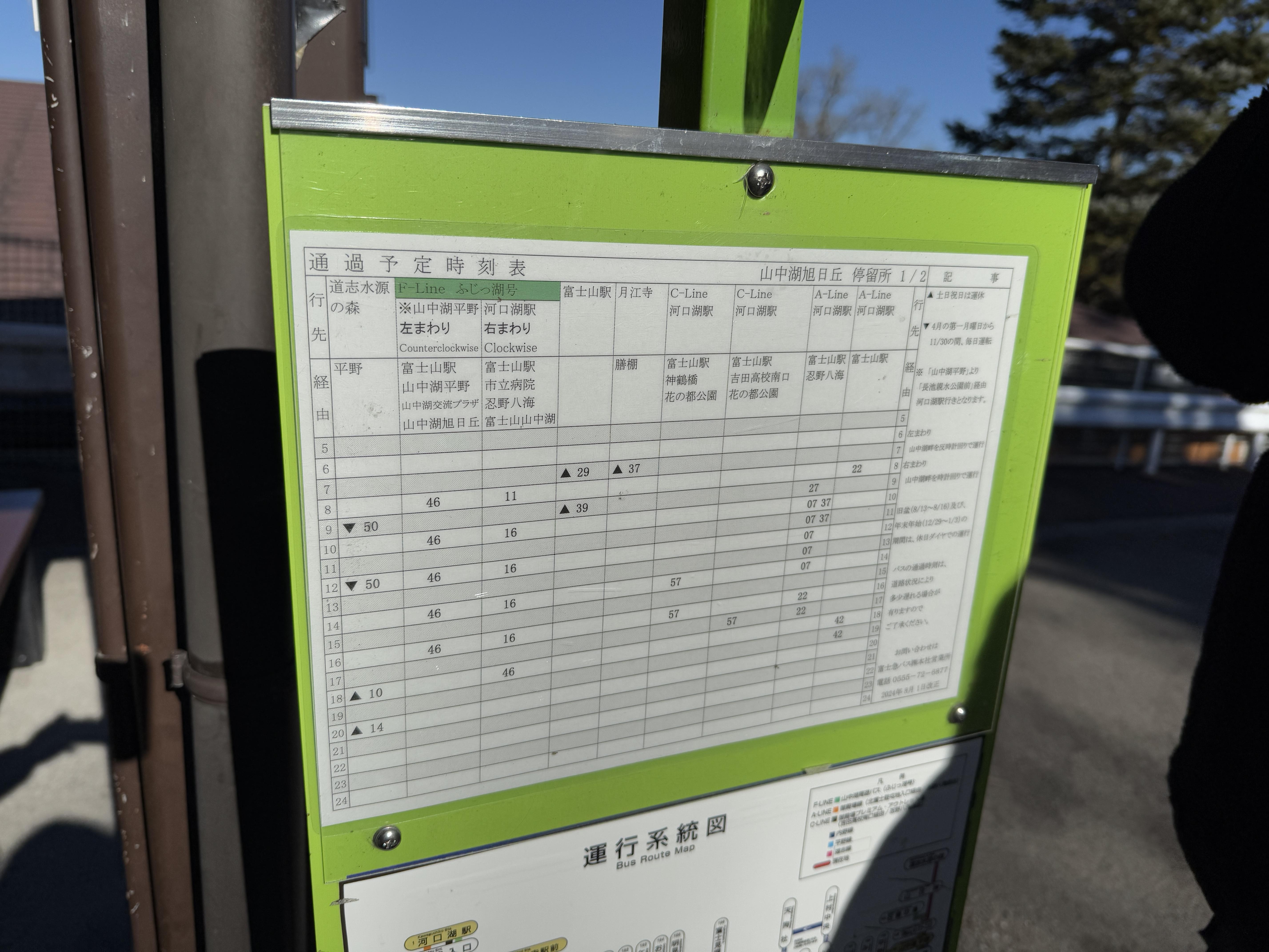 카와구치코역으로 가는 버스가 10시 37분에 이미 떠나서 한참을 더 기다려야 하나 했는데