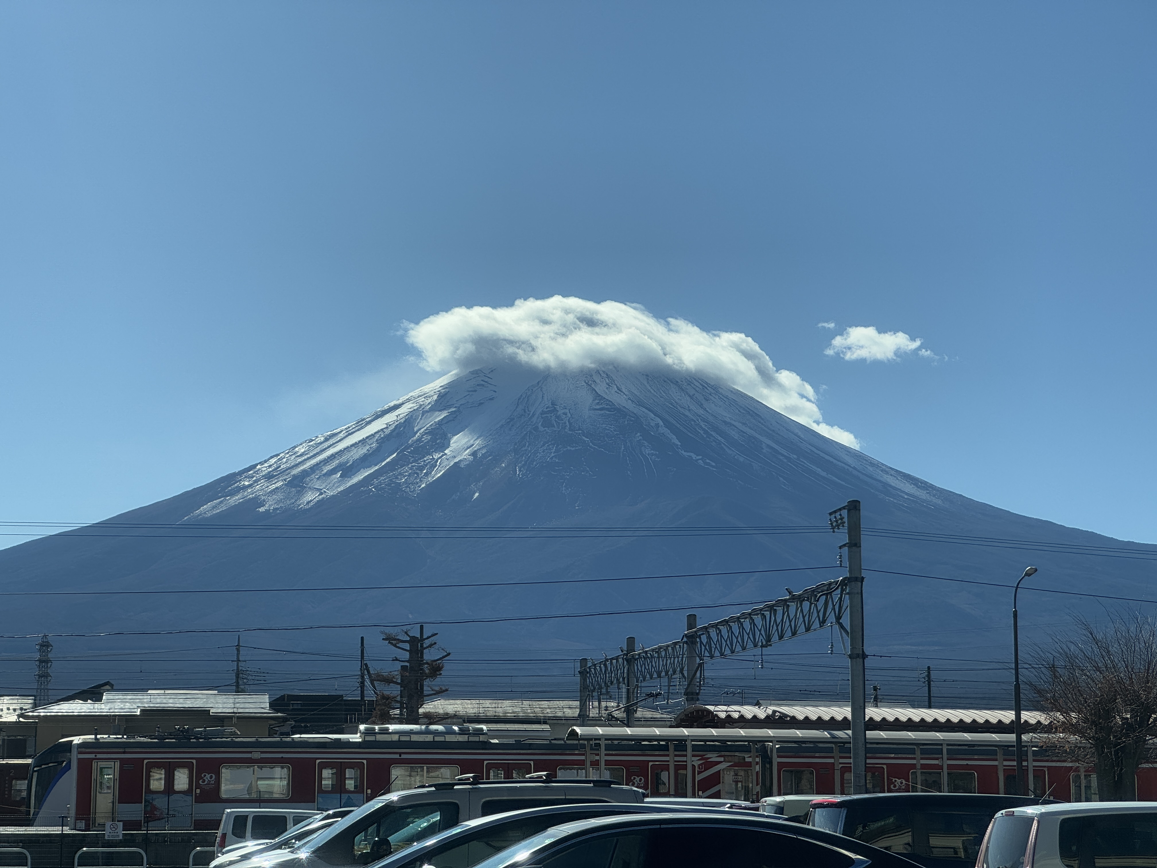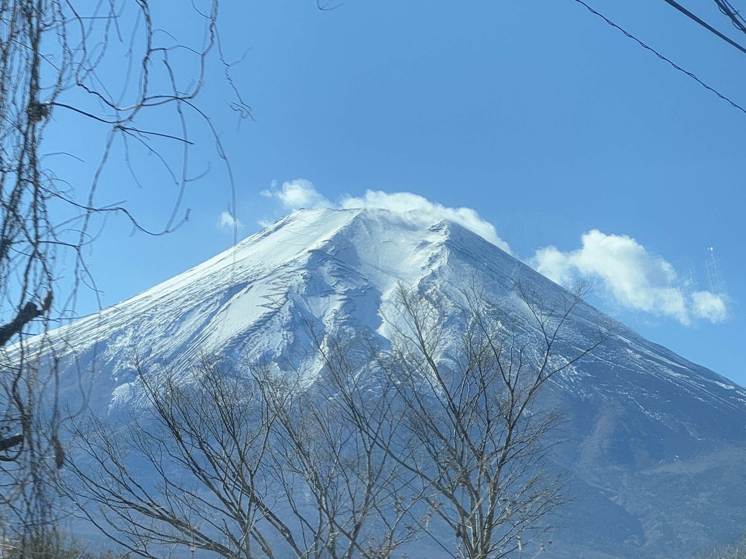 어느새 하얗고 예쁜 모자를 쓴 후지산을 보면서
