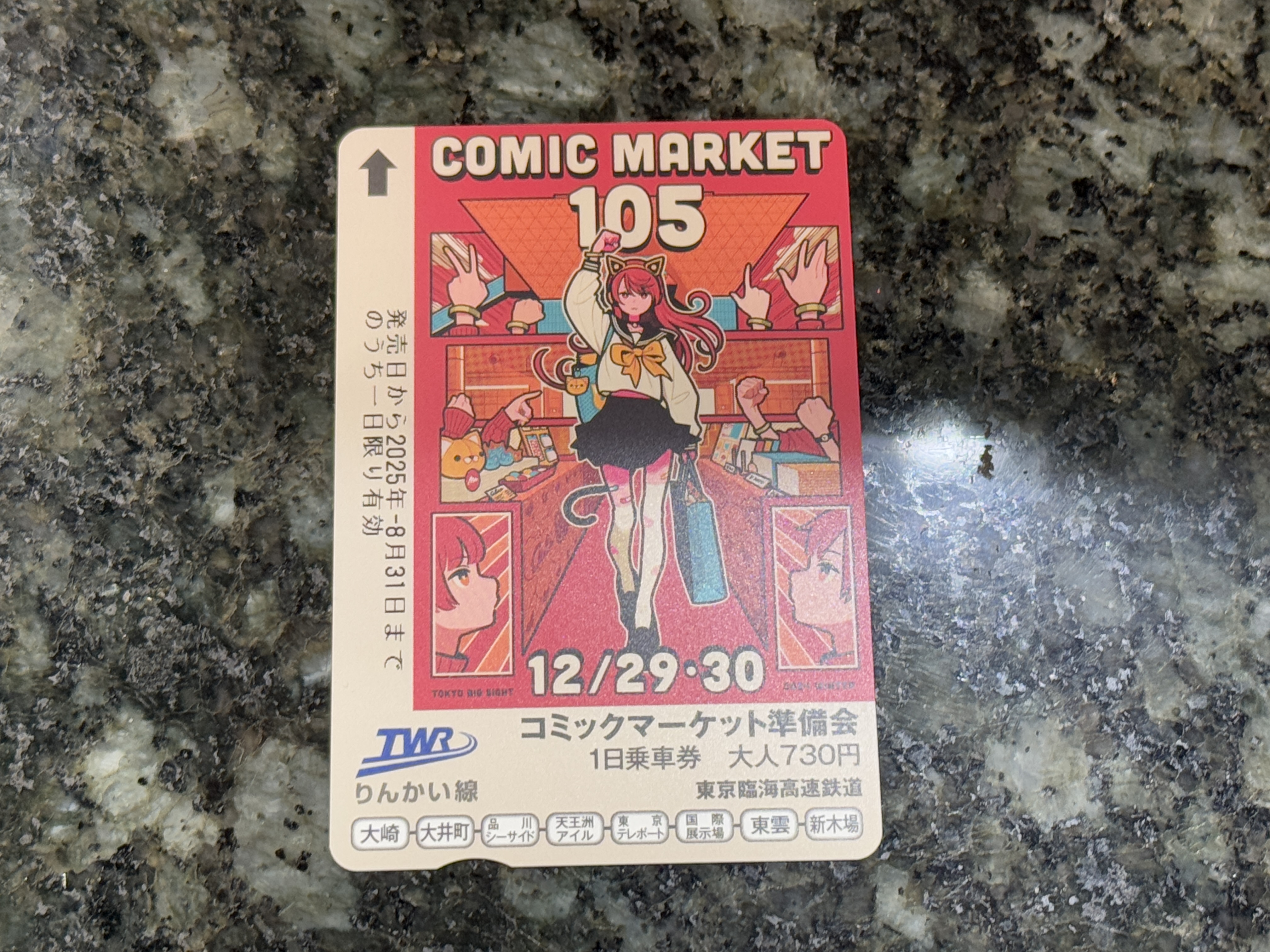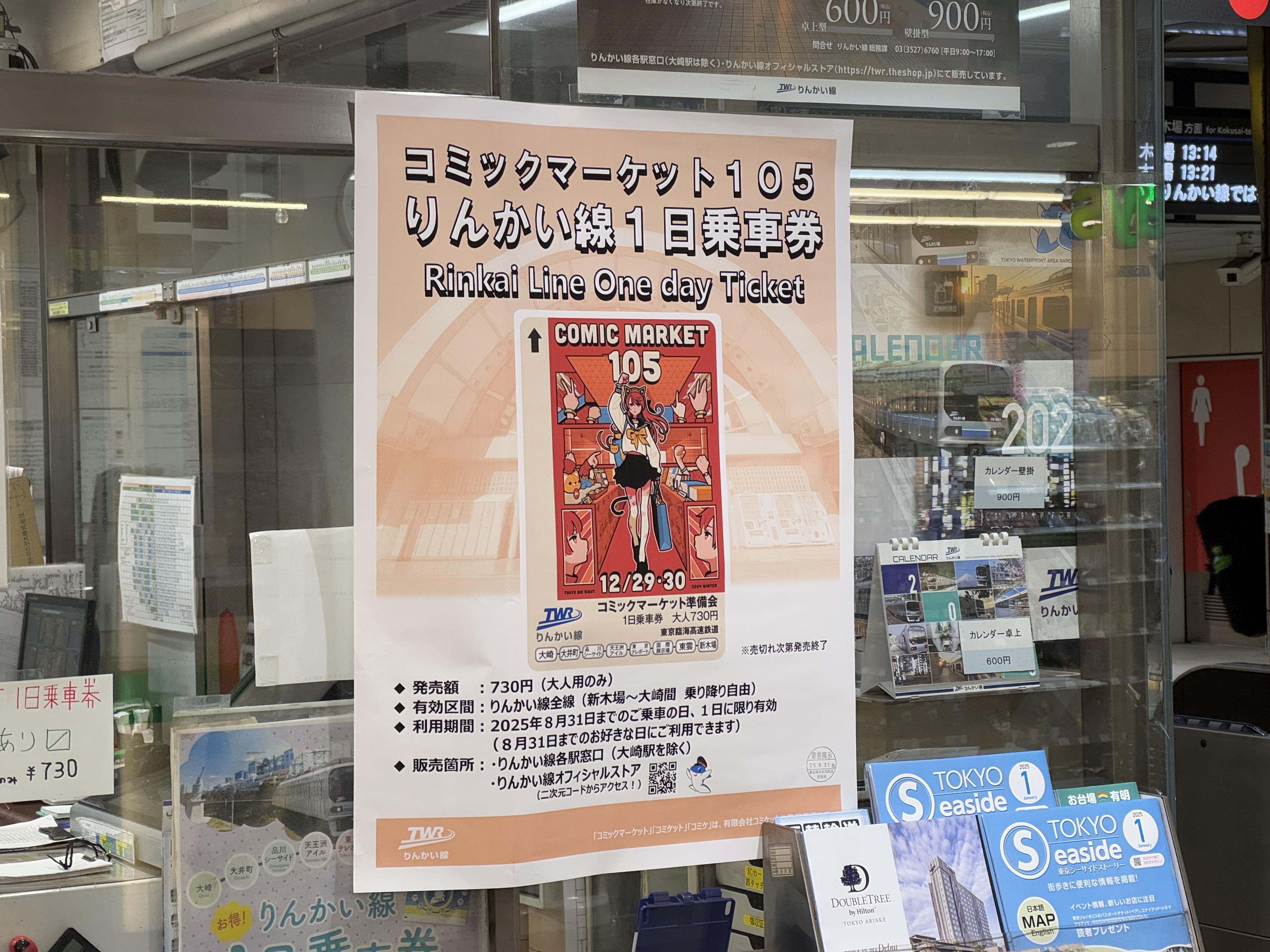 린카이선 개찰구를 지나다 어떤 승객이 코믹 마켓 기념 린카이선 1일 승차권을 사고 있길래
