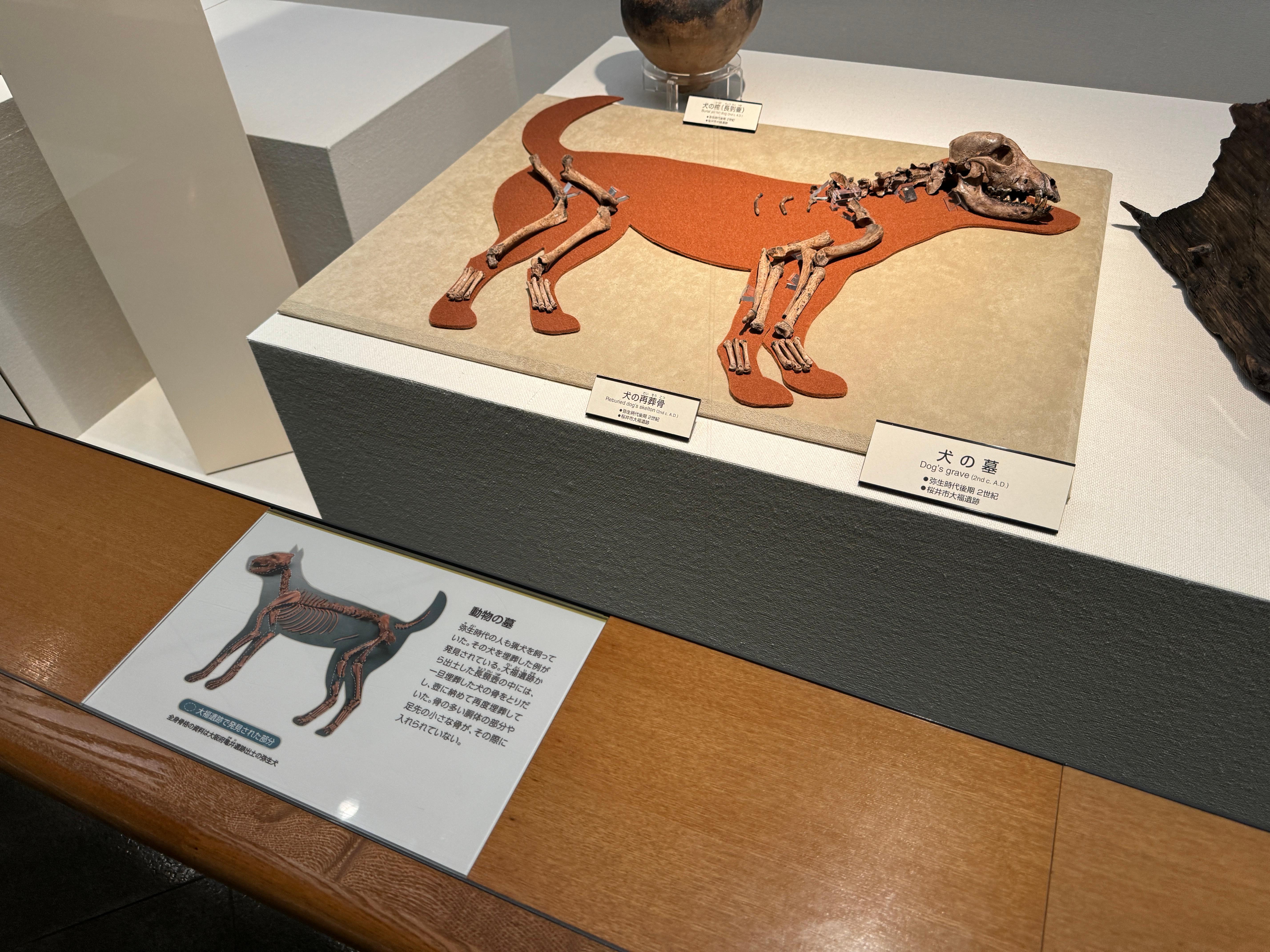 같이 키웠던 것으로 보이는 개를 묻은 흔적에 대한 유물도 보여주고