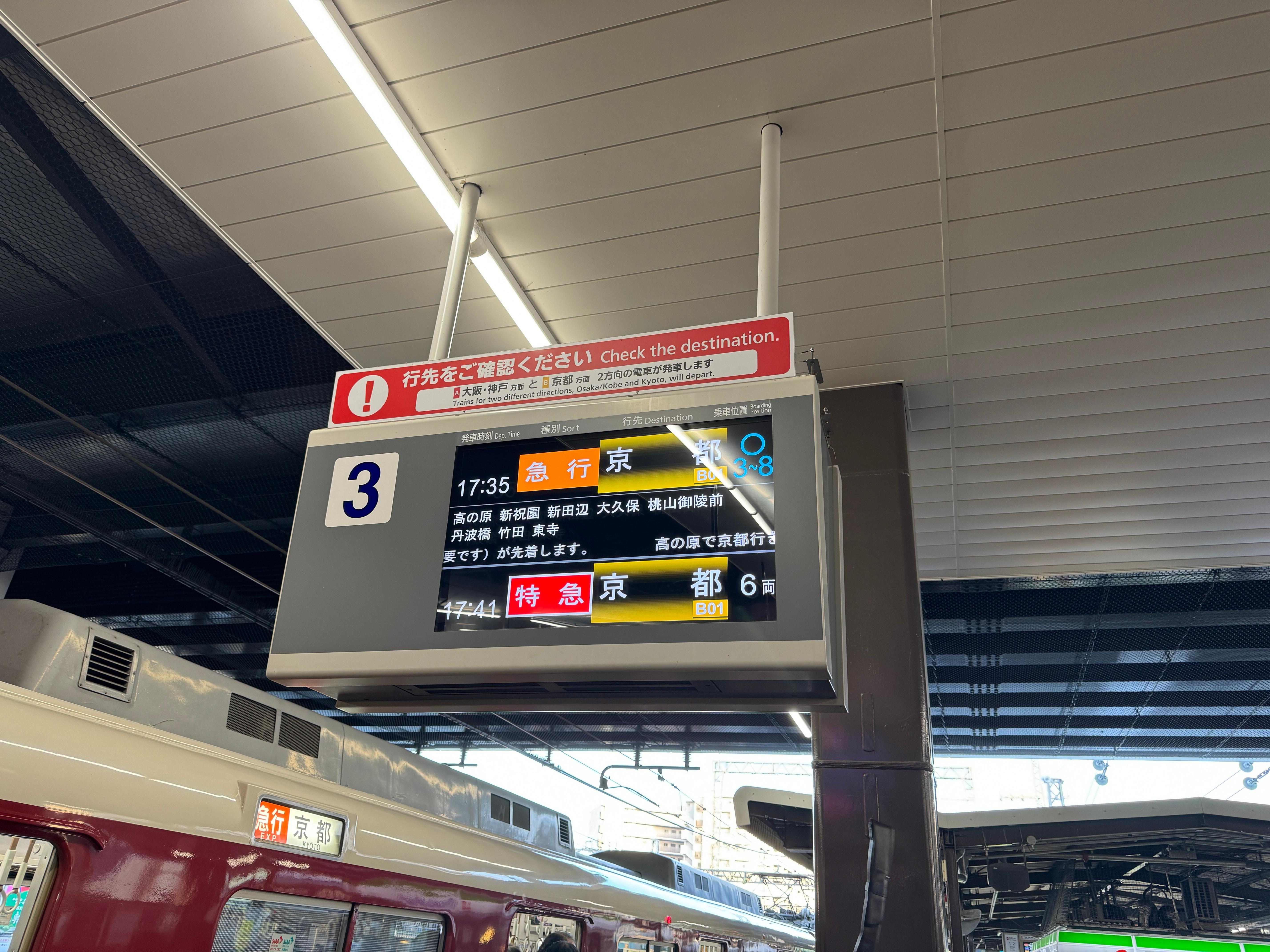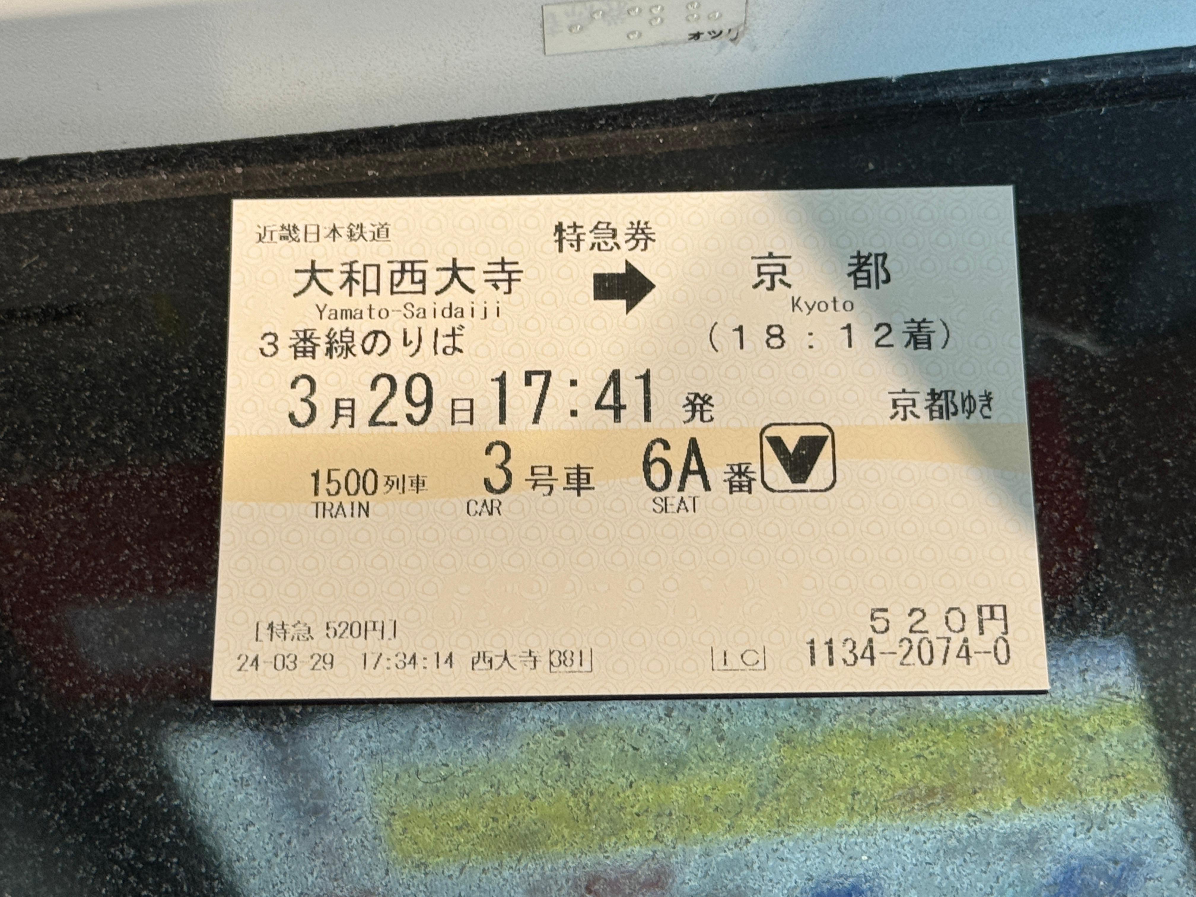 야마토사이다이지역에서 교토역까지는 특급 열차를 타고 이동하기로 합니다.