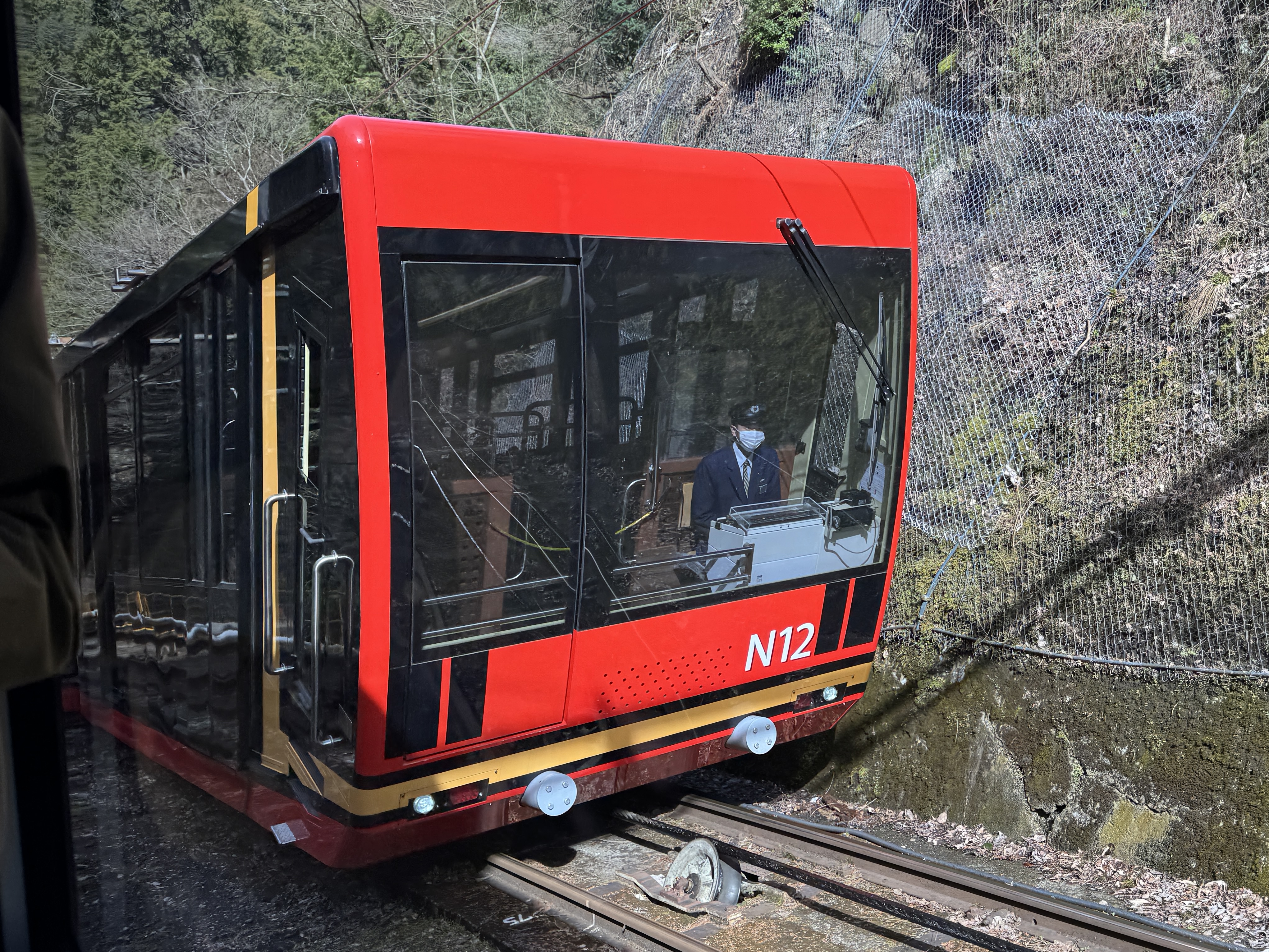 반대편에서 올라오는 관광열차 텐쿠(天空)를 찍고