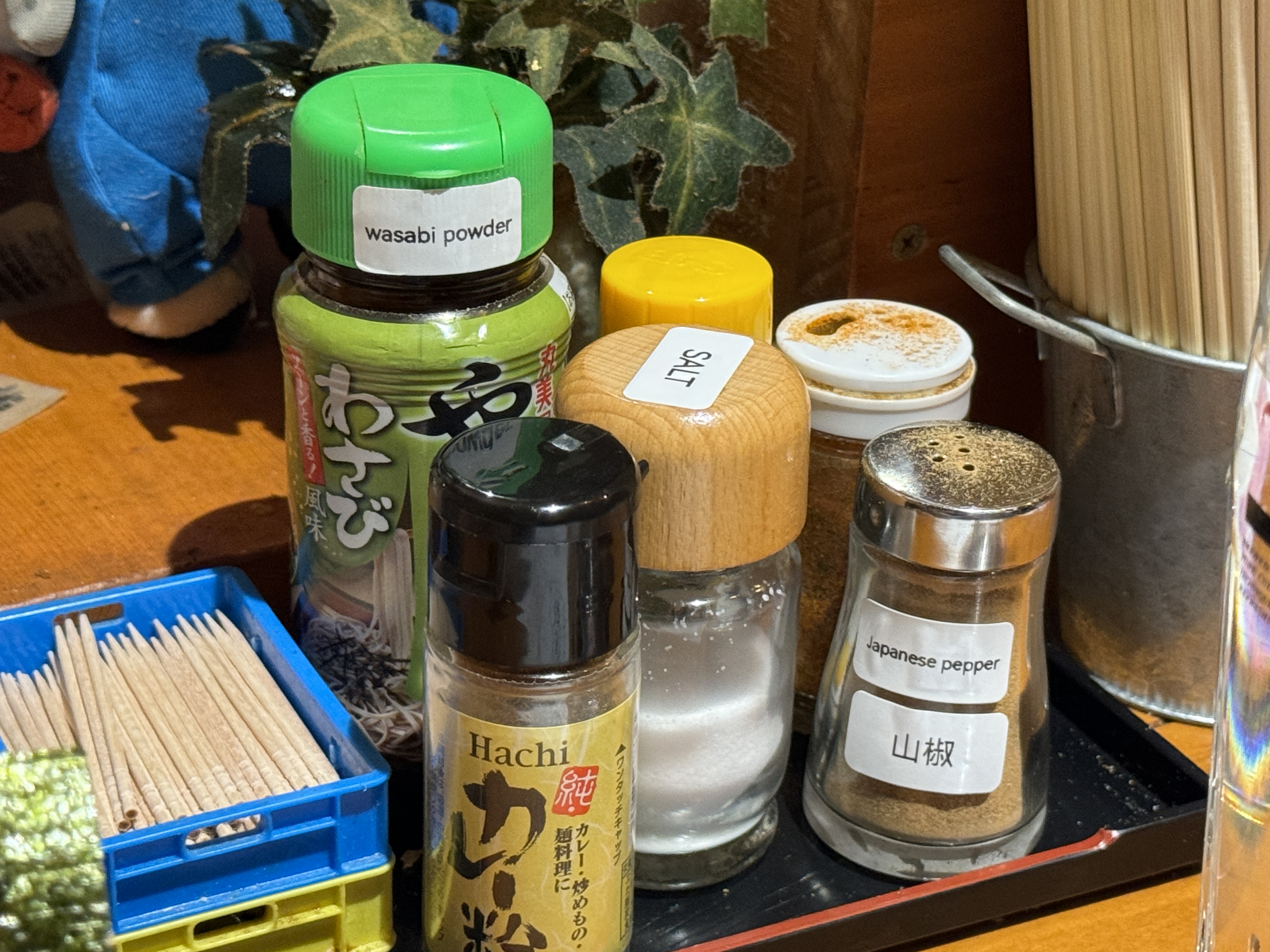 자리 옆에 있는 조미료를 꺼내