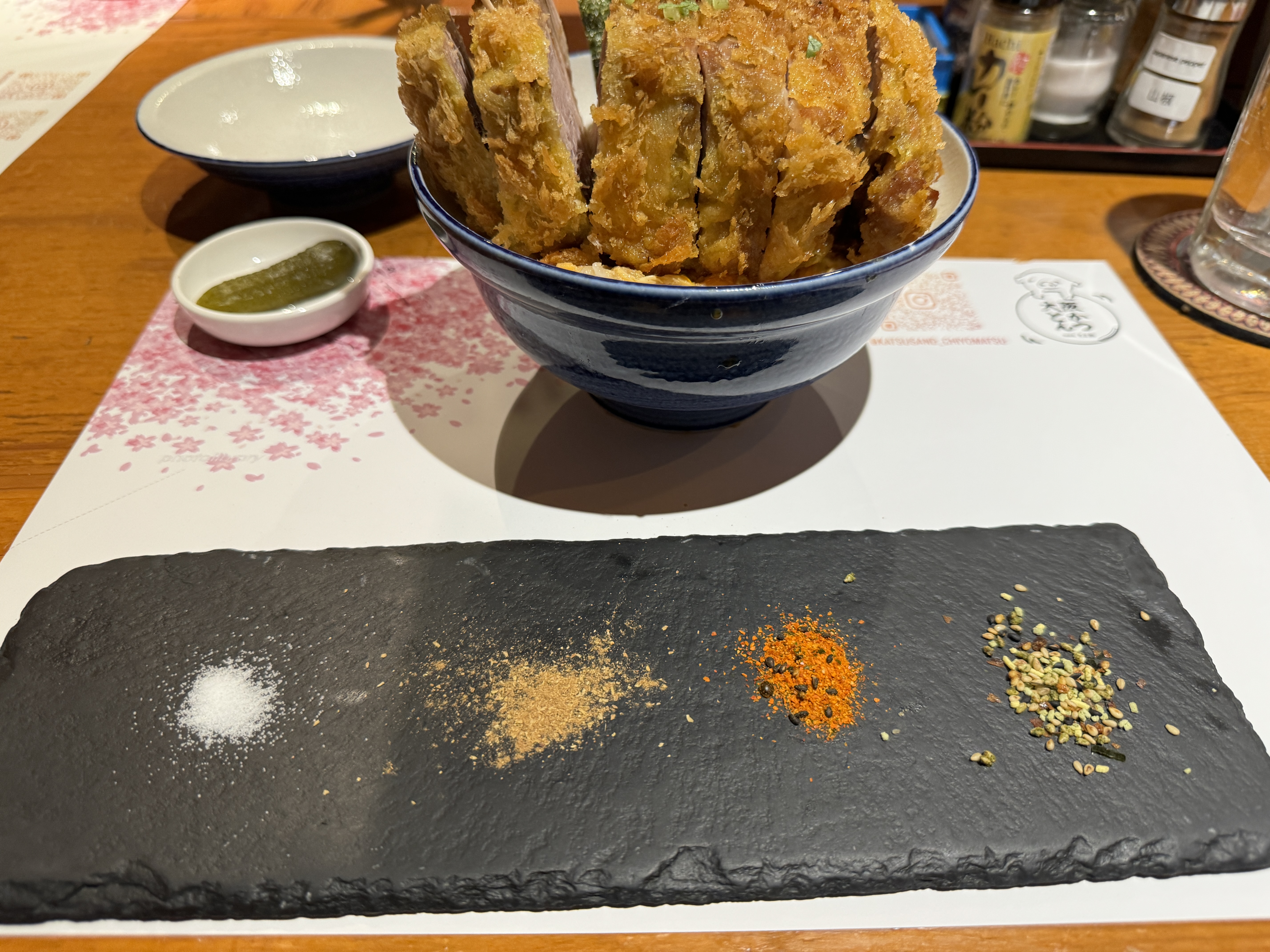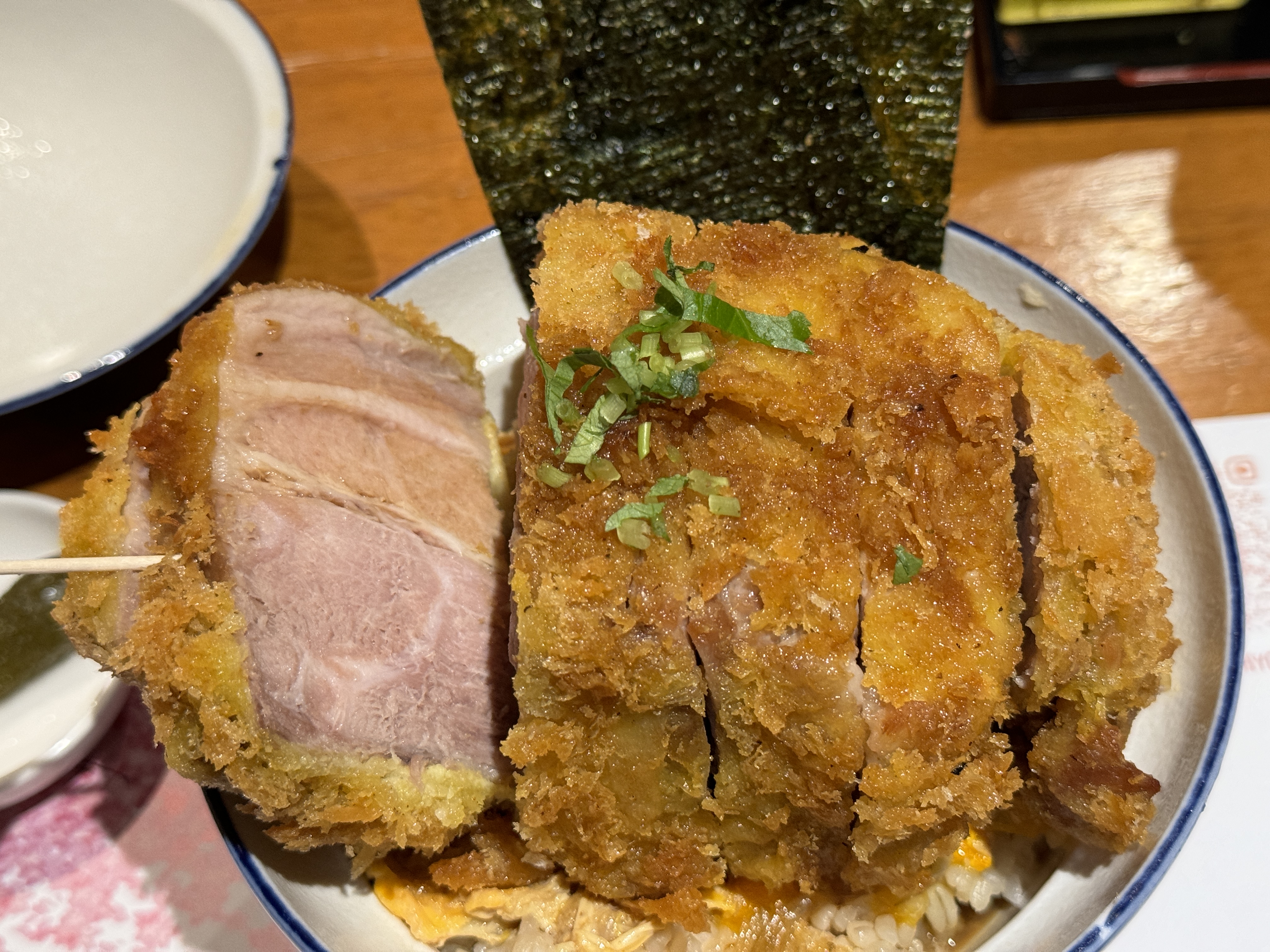 사진에 보이듯이 무식할 정도로 두꺼운 돈가스를 얹은 카츠동이 이곳의 주력 메뉴입니다.