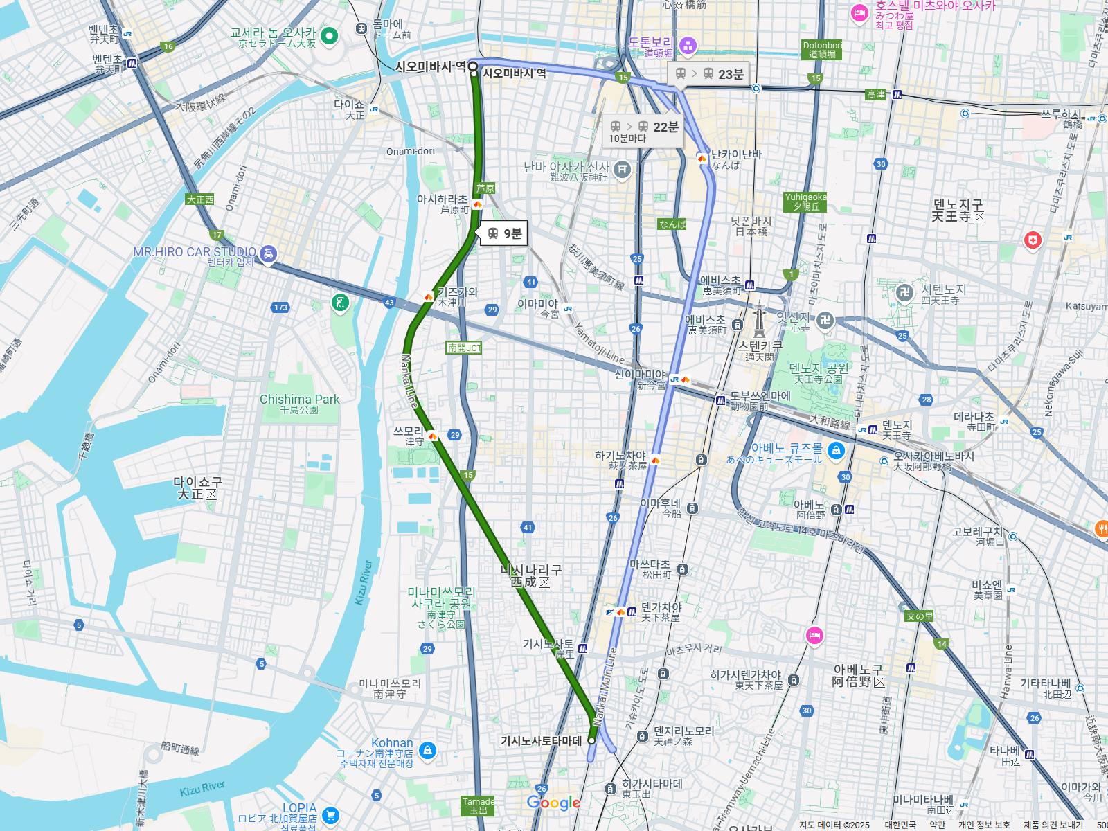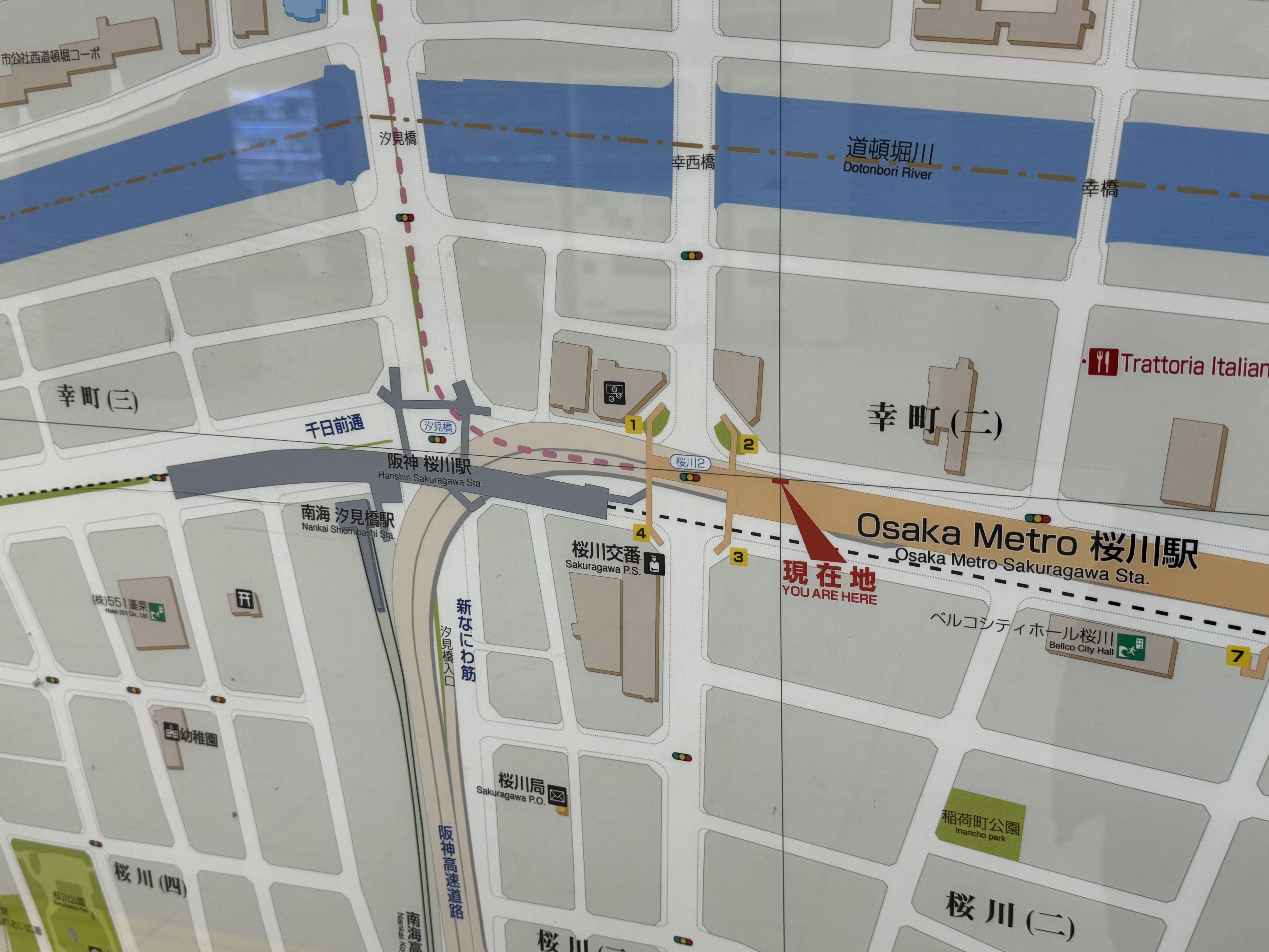 오사카 메트로 사쿠라가와역 옆 한신 사쿠라가와역 옆 조그맣게 그려진 작은 역.