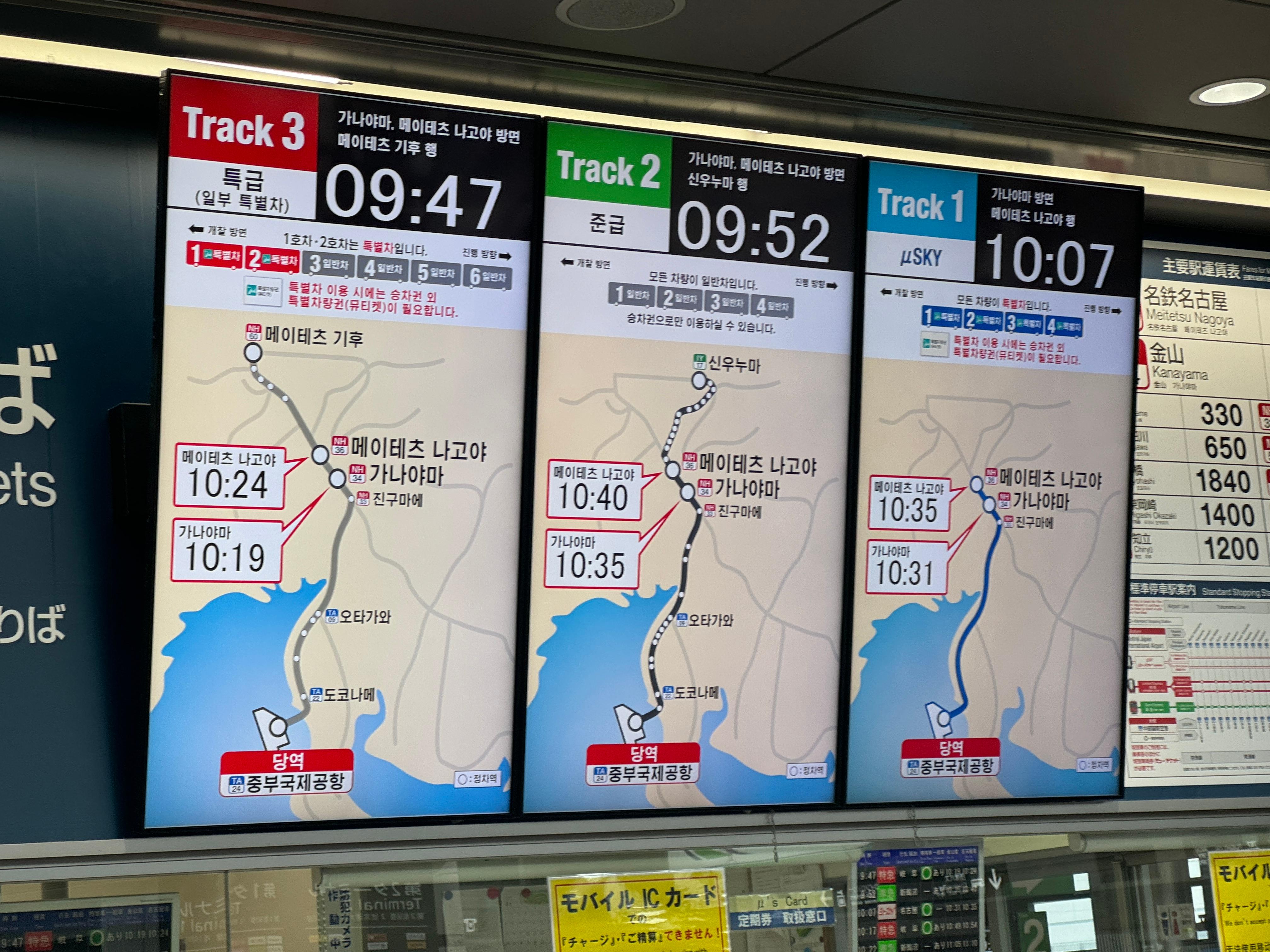 츄부국제공항은 철도회사가 나고야 철도, 줄여서 메이테츠 하나뿐입니다.