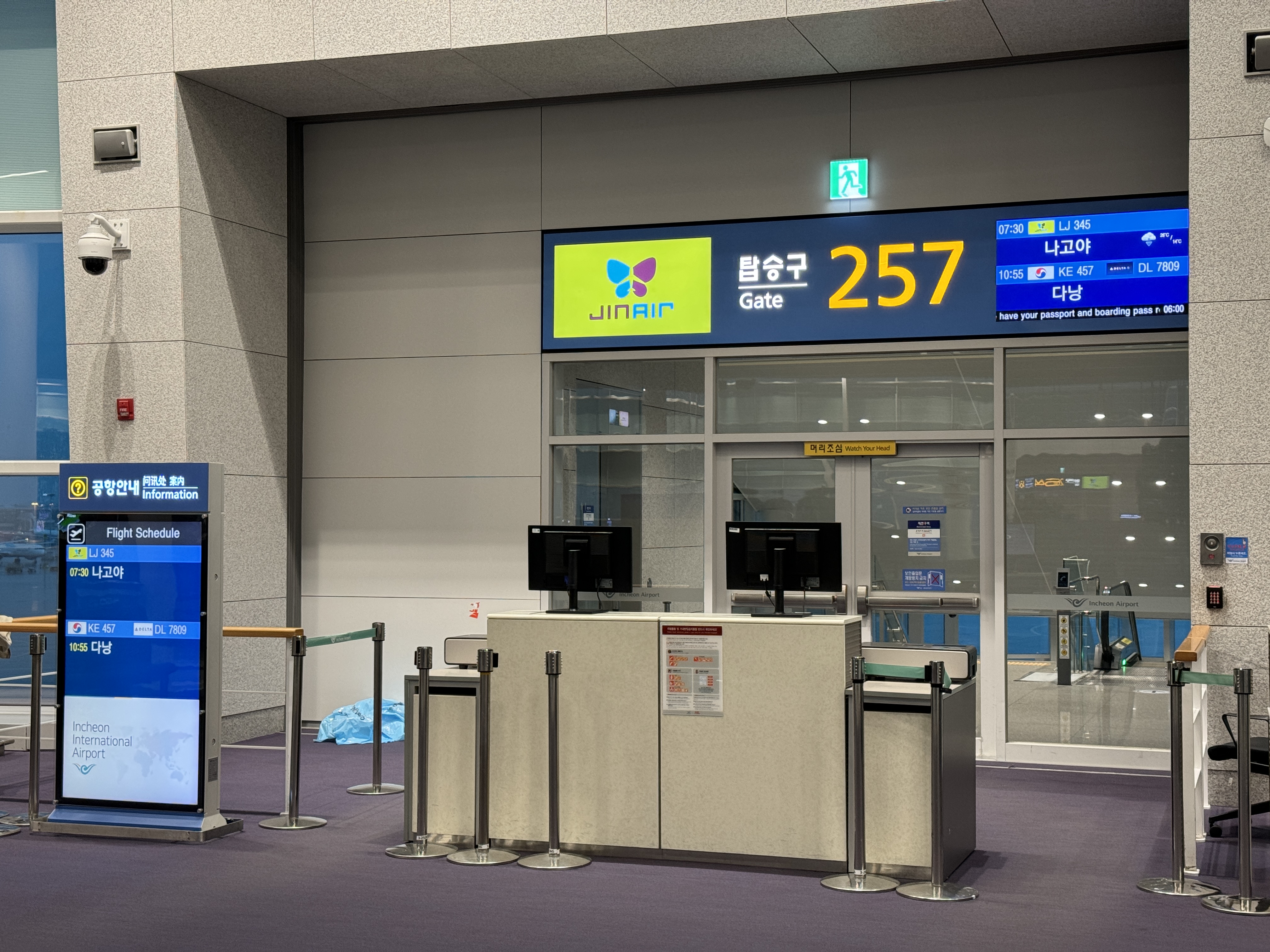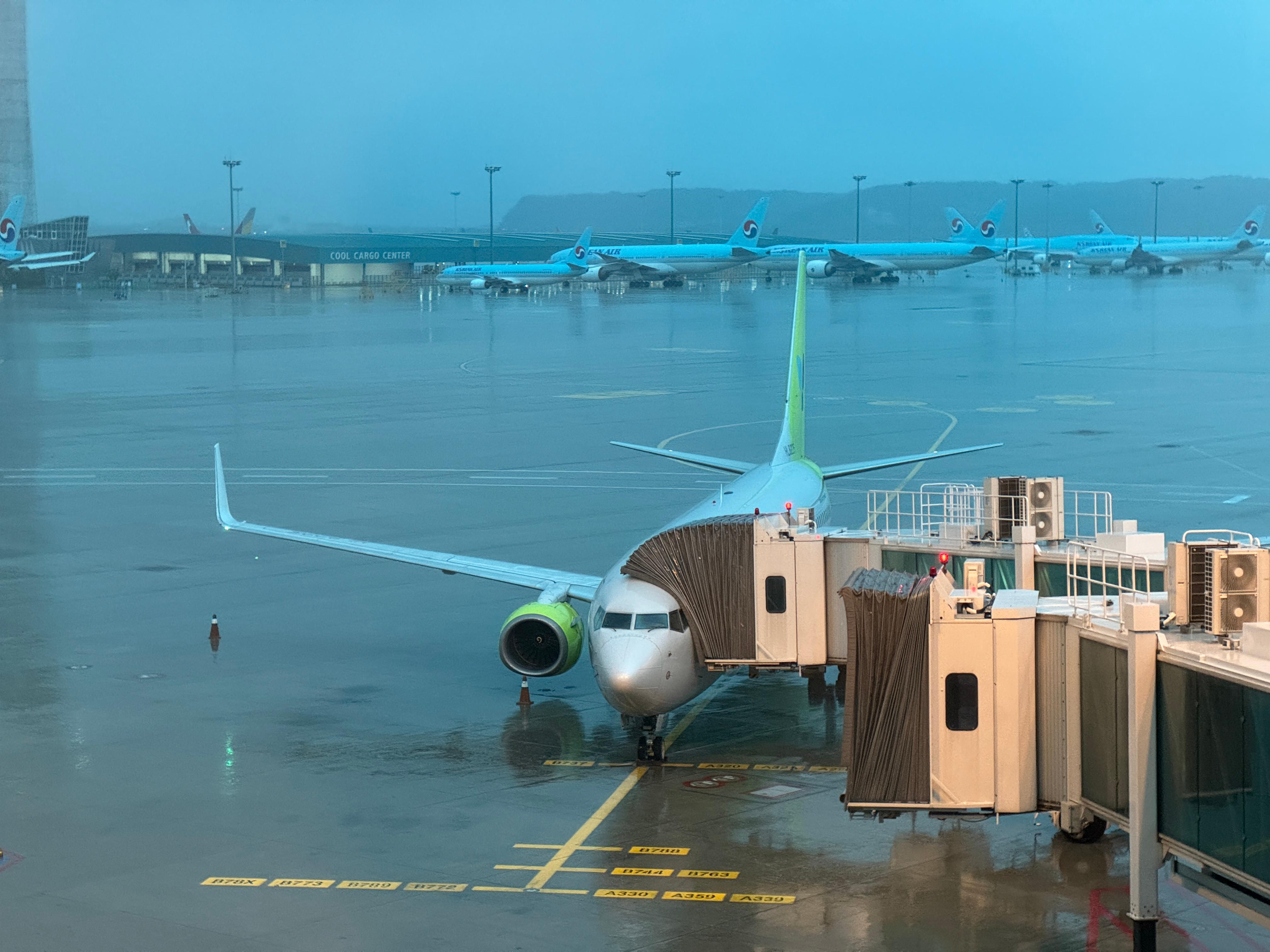 예정된 시간보다 15분 일찍 도착했으나 게이트에 다른 비행기가 있어 보딩 브리지를 연결하지 못해 의미가 없네요.