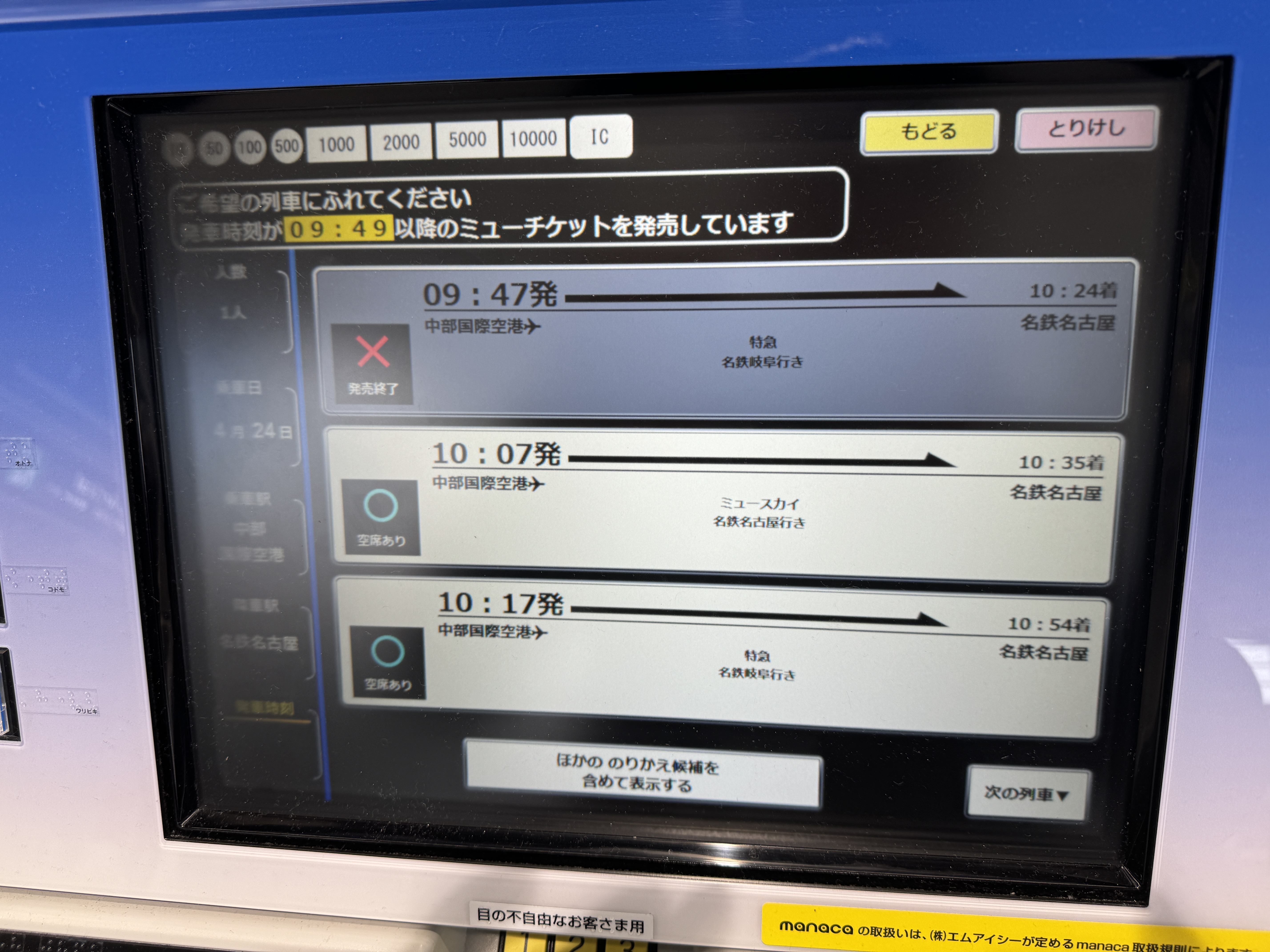 종점 메이테츠나고야역에 도착했습니다.