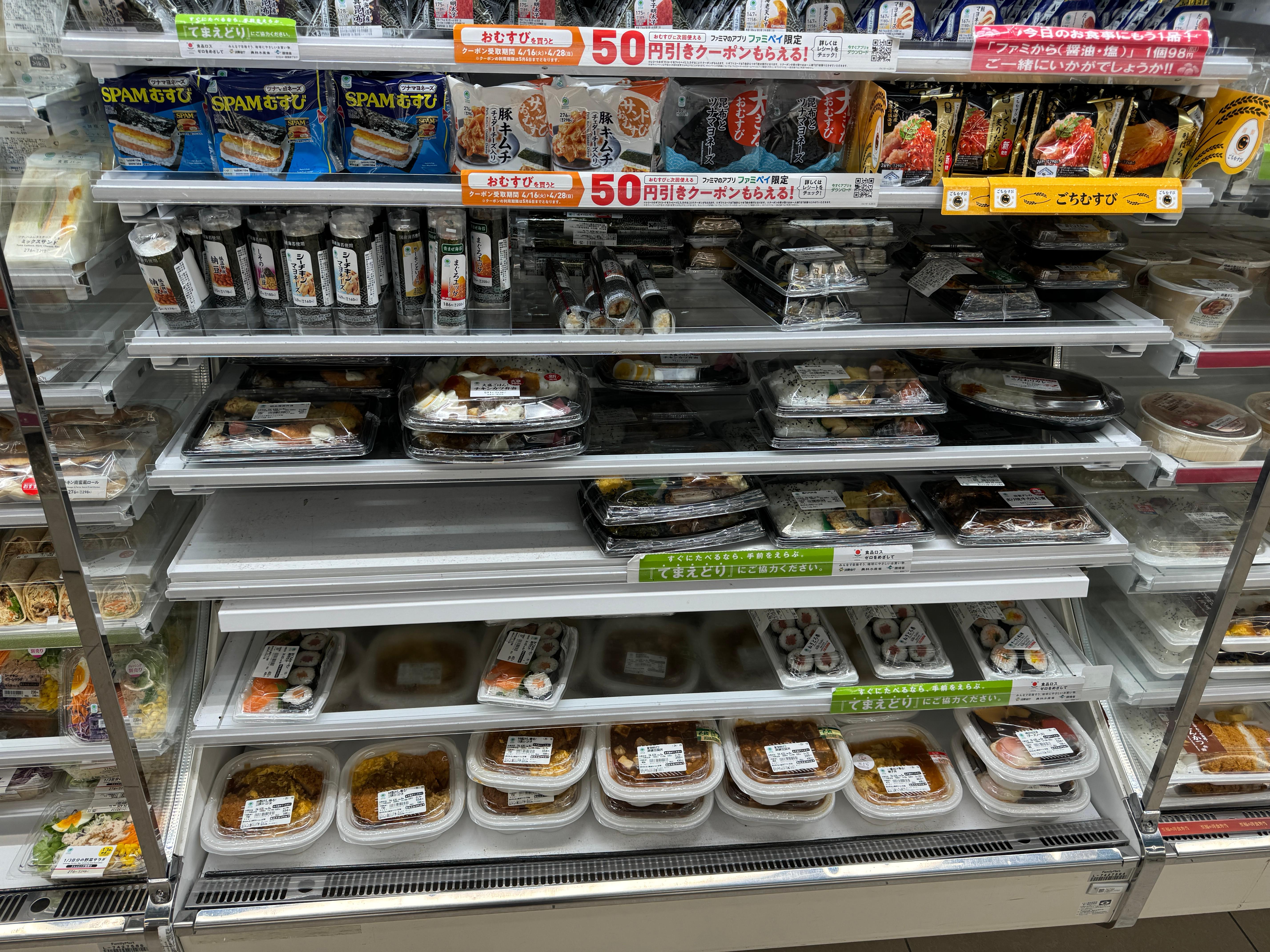 편의점에서 도시락을 산 뒤 열차를 타러 갑니다.