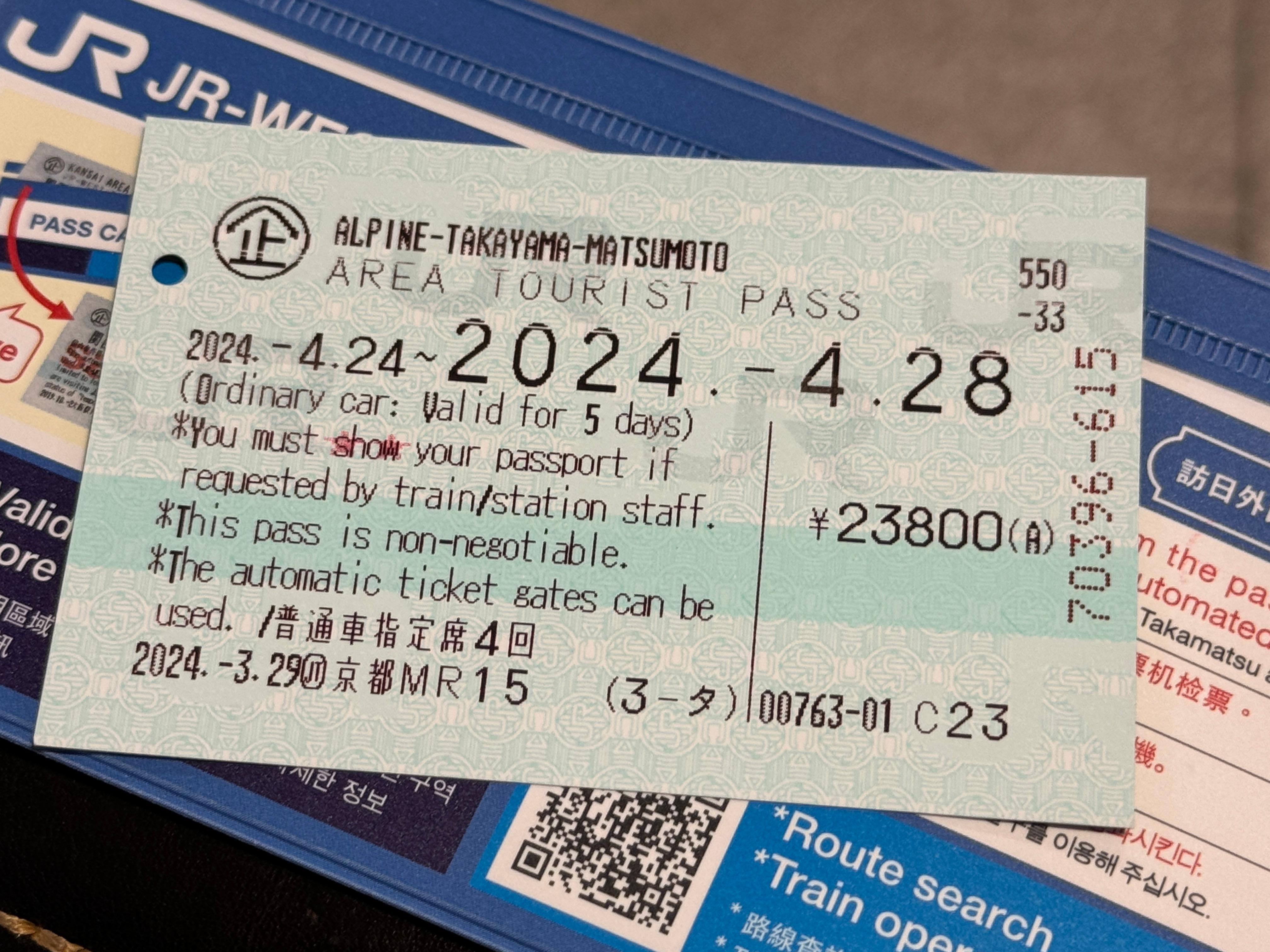 지난 3월 여행 때 미리 교환해둔 패스를 꺼내