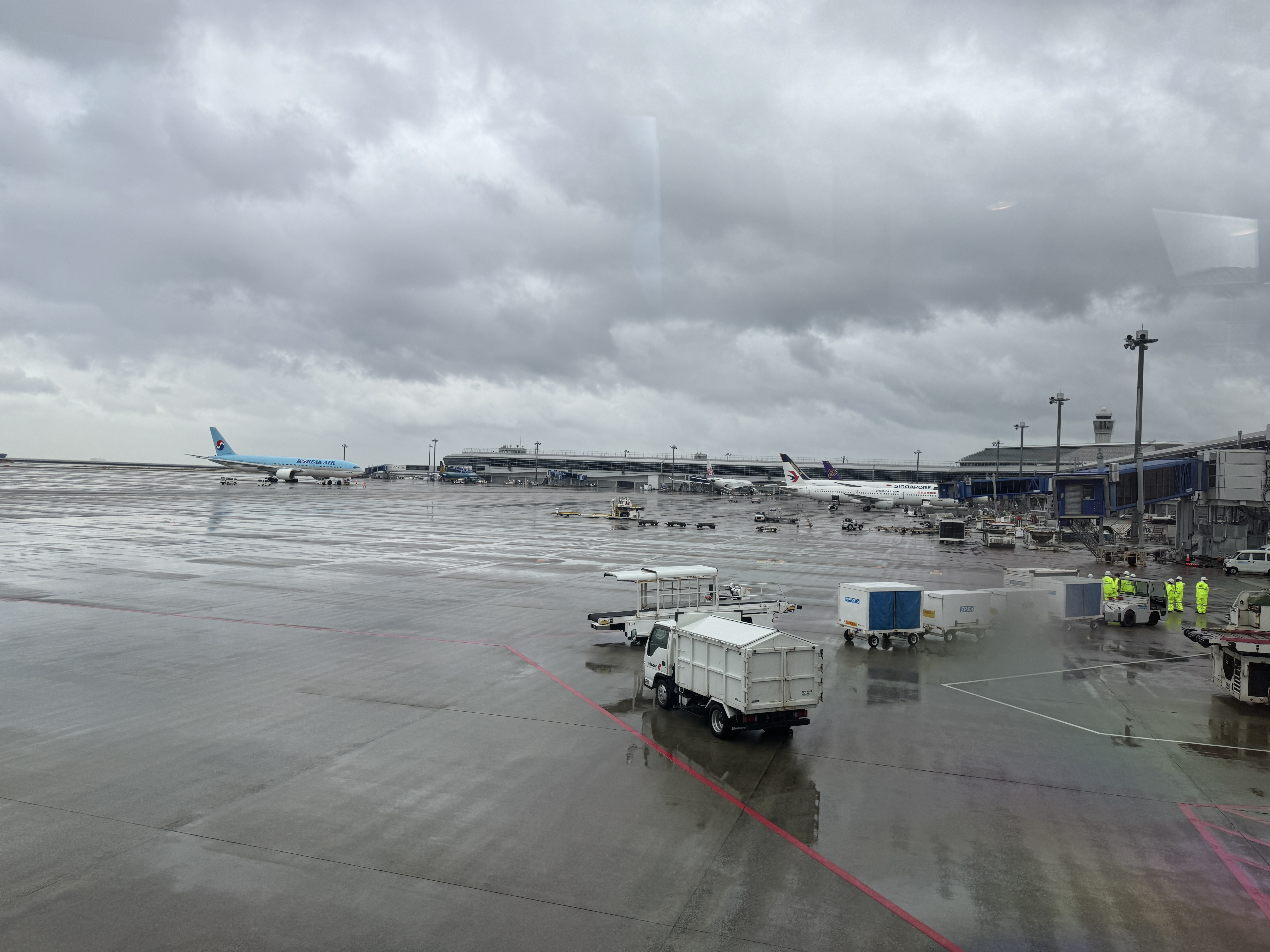 다행히 이륙 못할 정도로 내리지 않아 제 때 이륙합니다.