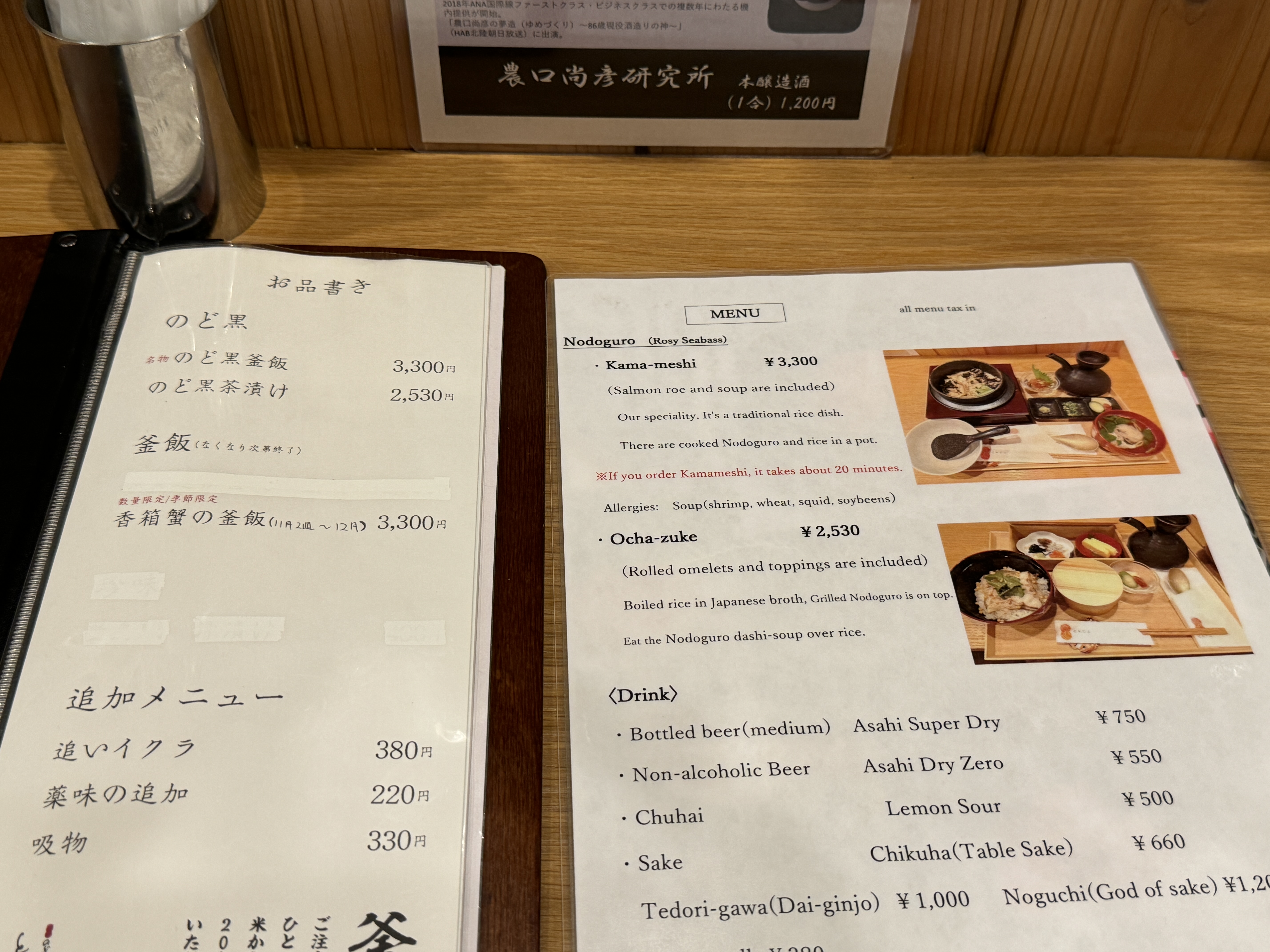 맨 위에 있는 노도구로 카마메시를 주문합니다.