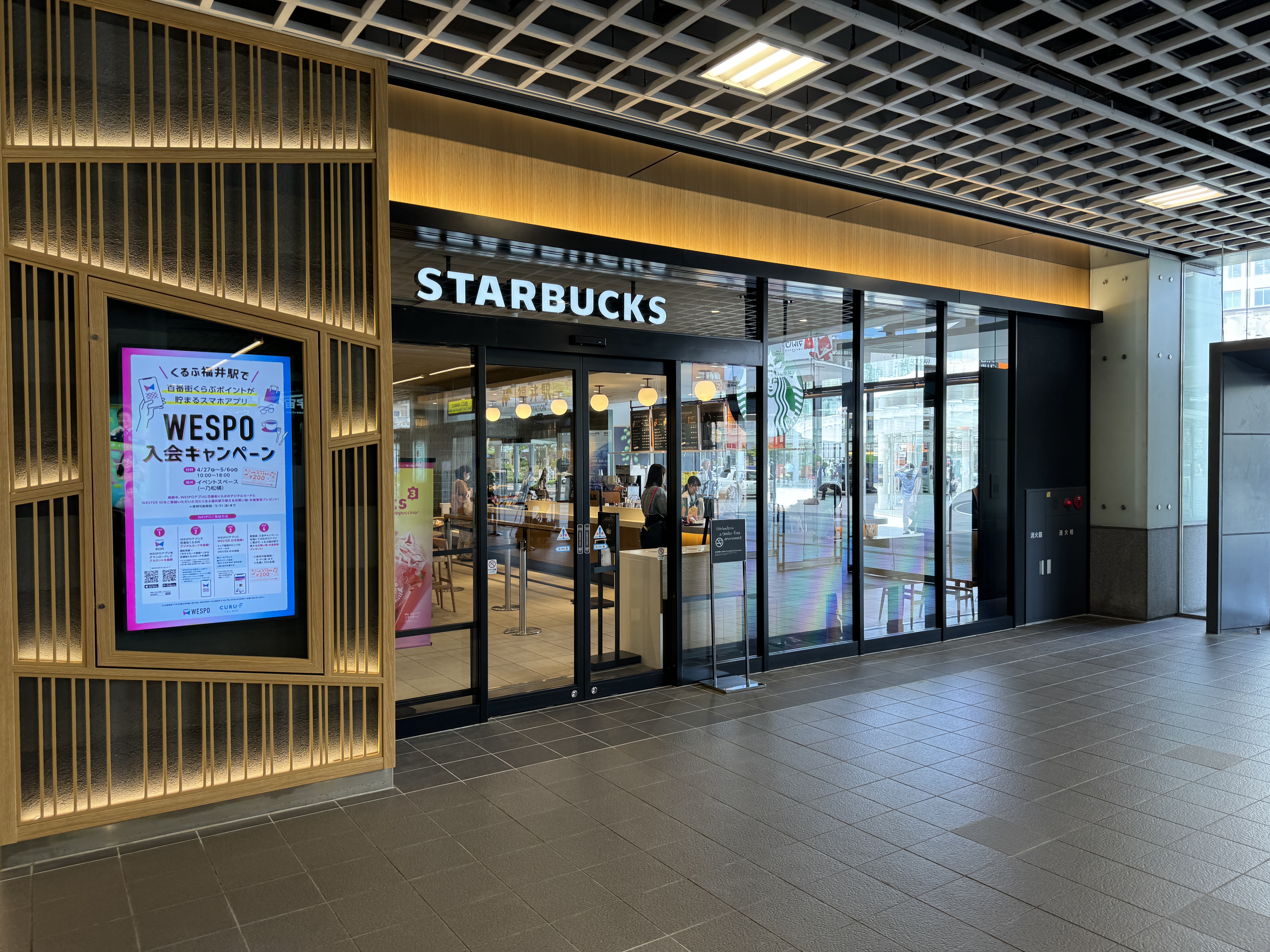 후쿠이를 떠나는 열차를 타기 전에 스타벅스에 들릅니다.