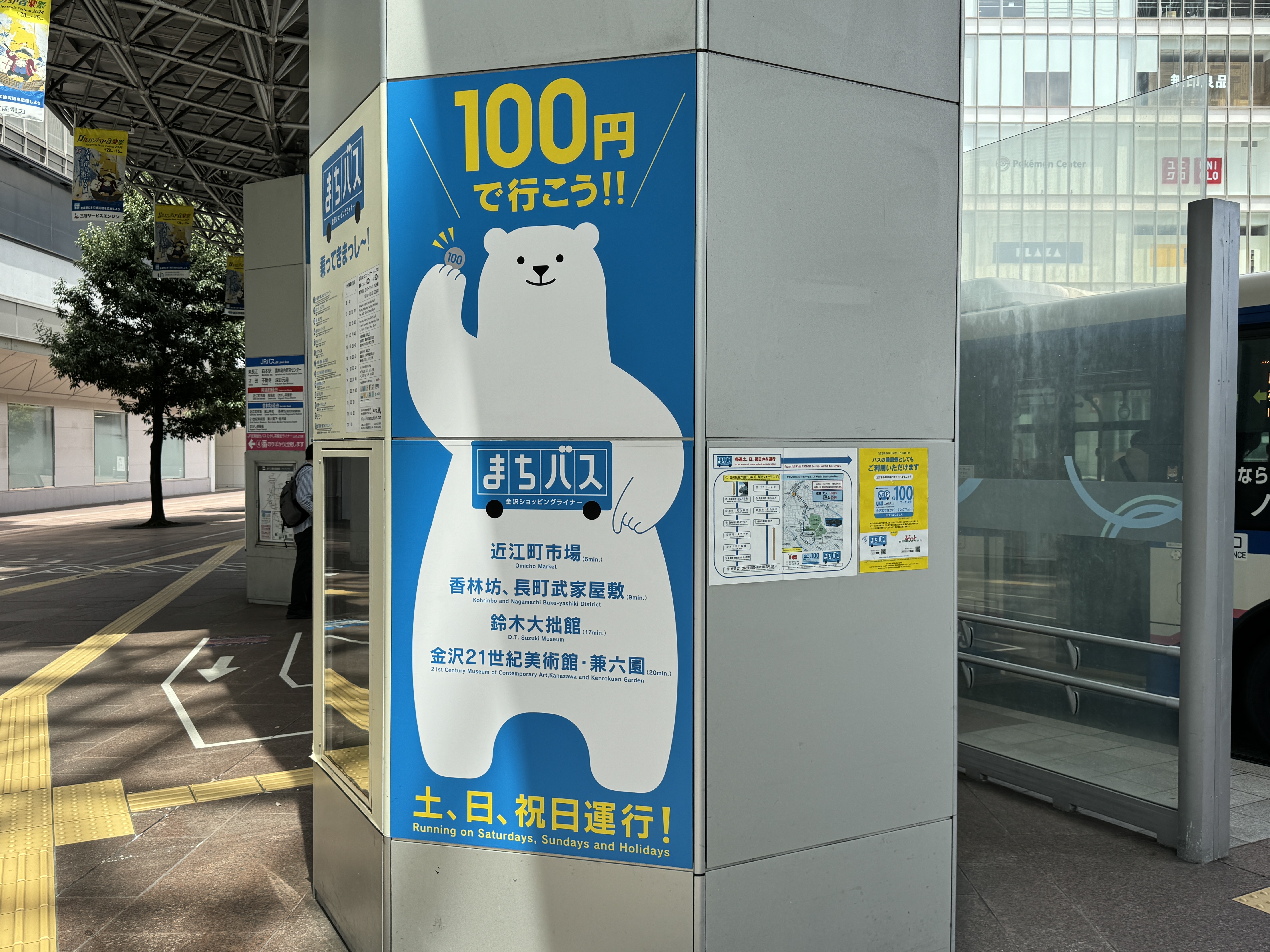 주말에 카나자와 일대를 다니는 마치버스(まちバス)라는 100엔 버스를