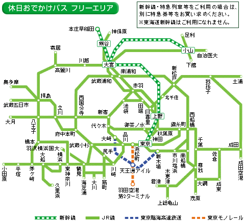 일본 주말이나 공휴일 하루 동안 위의 노선도에 나와있는 구간을 자유롭게 이동할 수 있는데