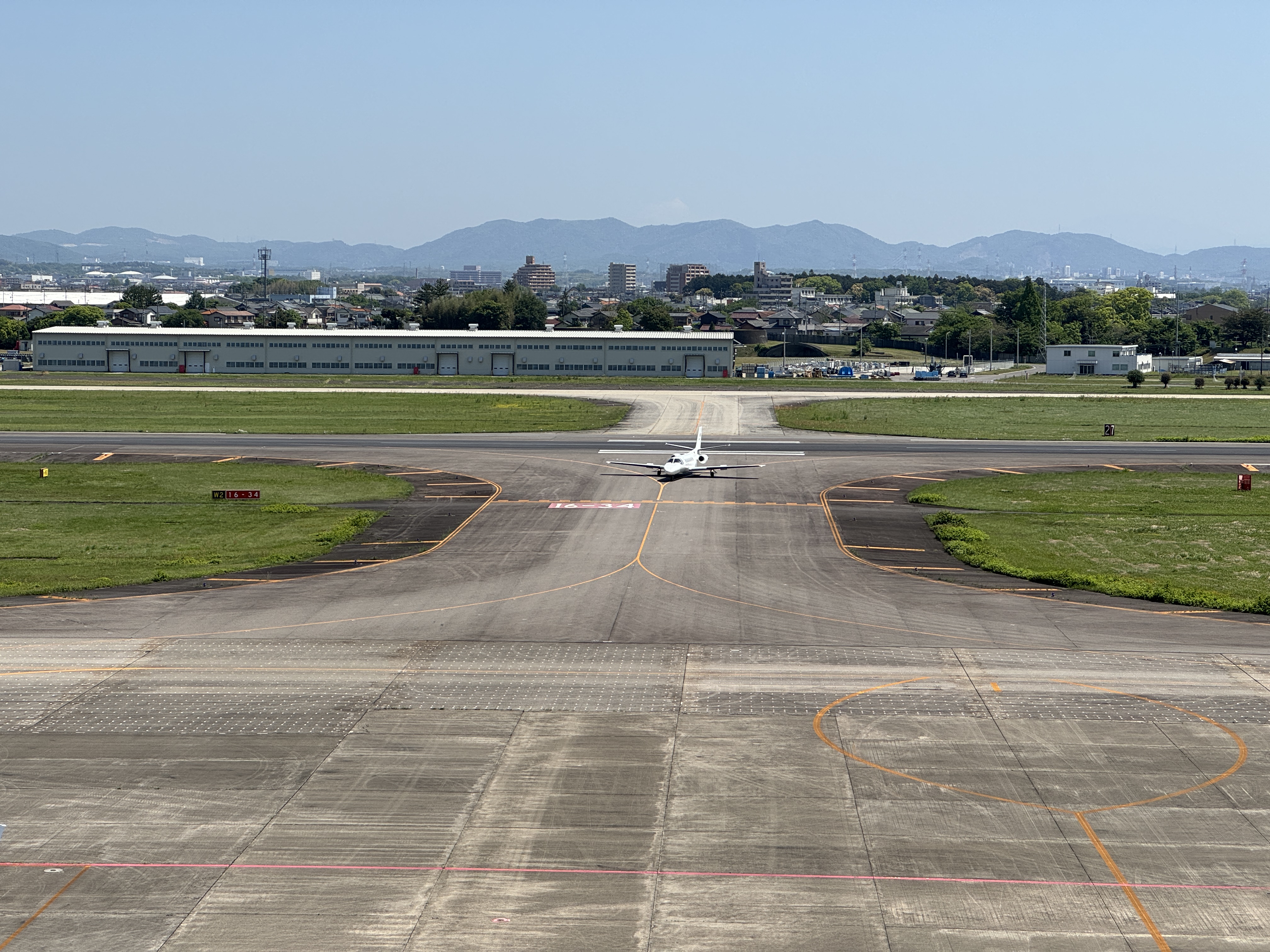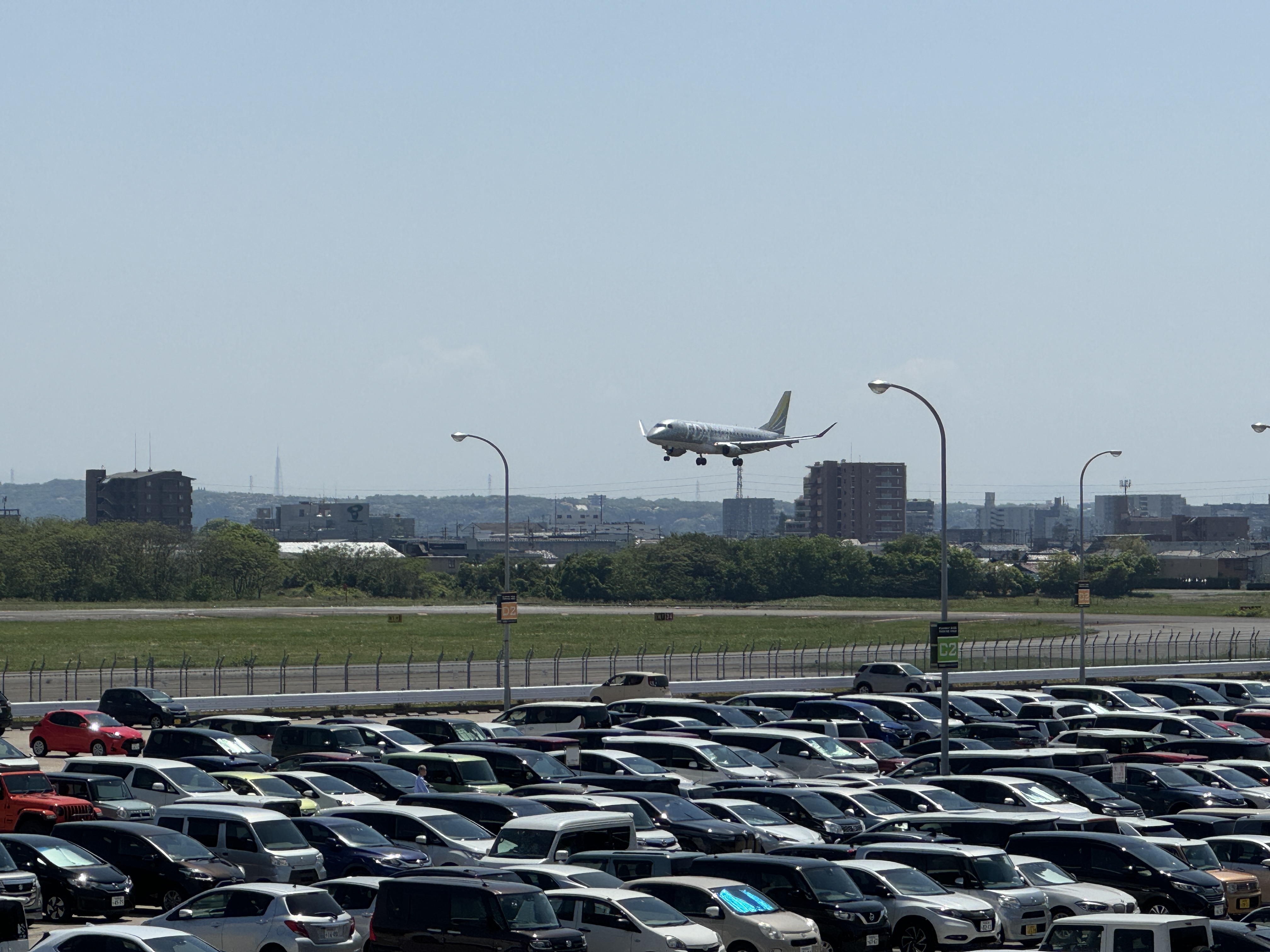 드디어 코마키 공항에 착륙하는 후지드림에어라인 비행기를 찍고