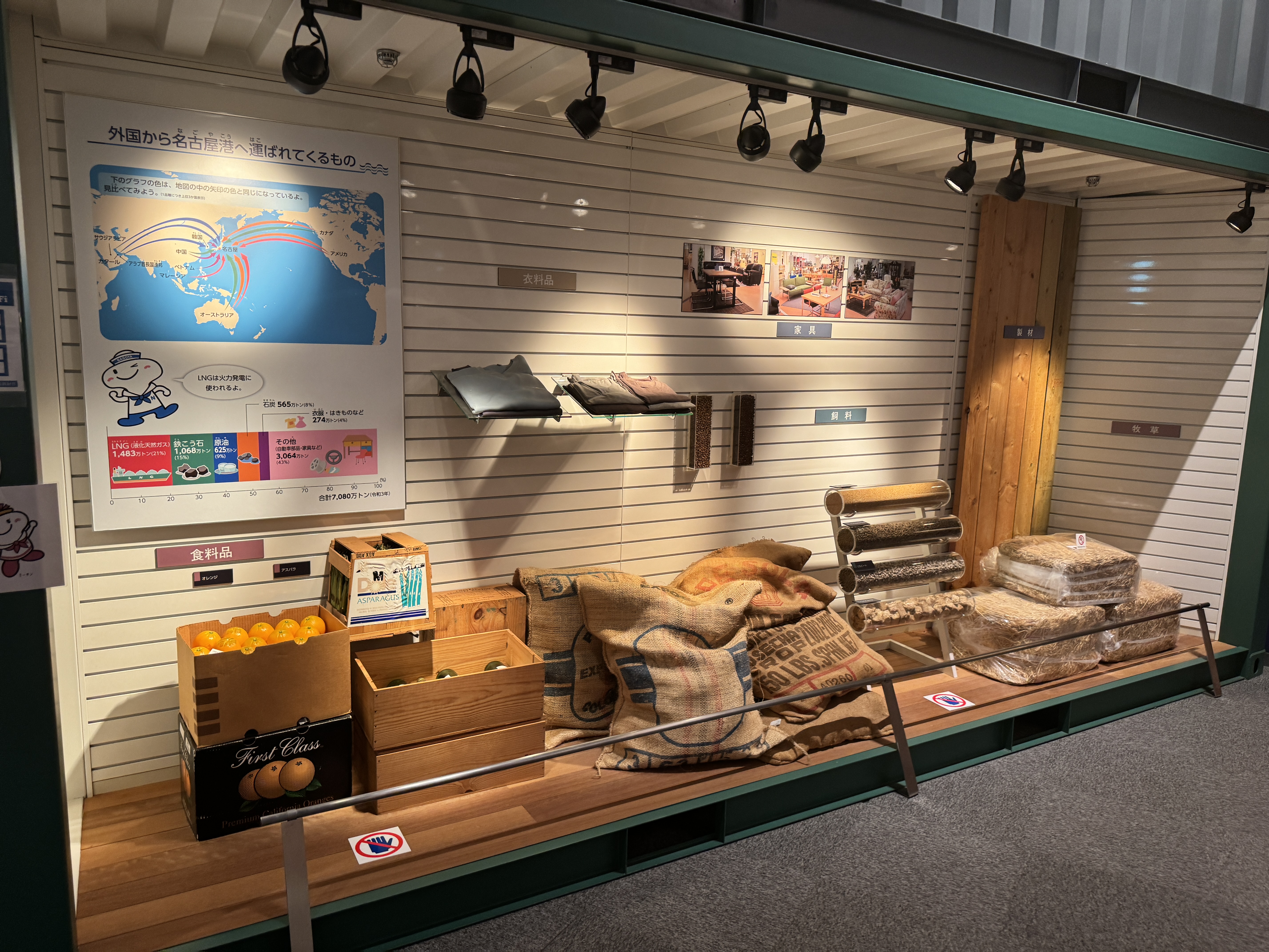 어떤 물건들이 나고야항을 통해 들어오고 나가는지 컨테이너를 직접 뜯어보듯이 알려주네요.