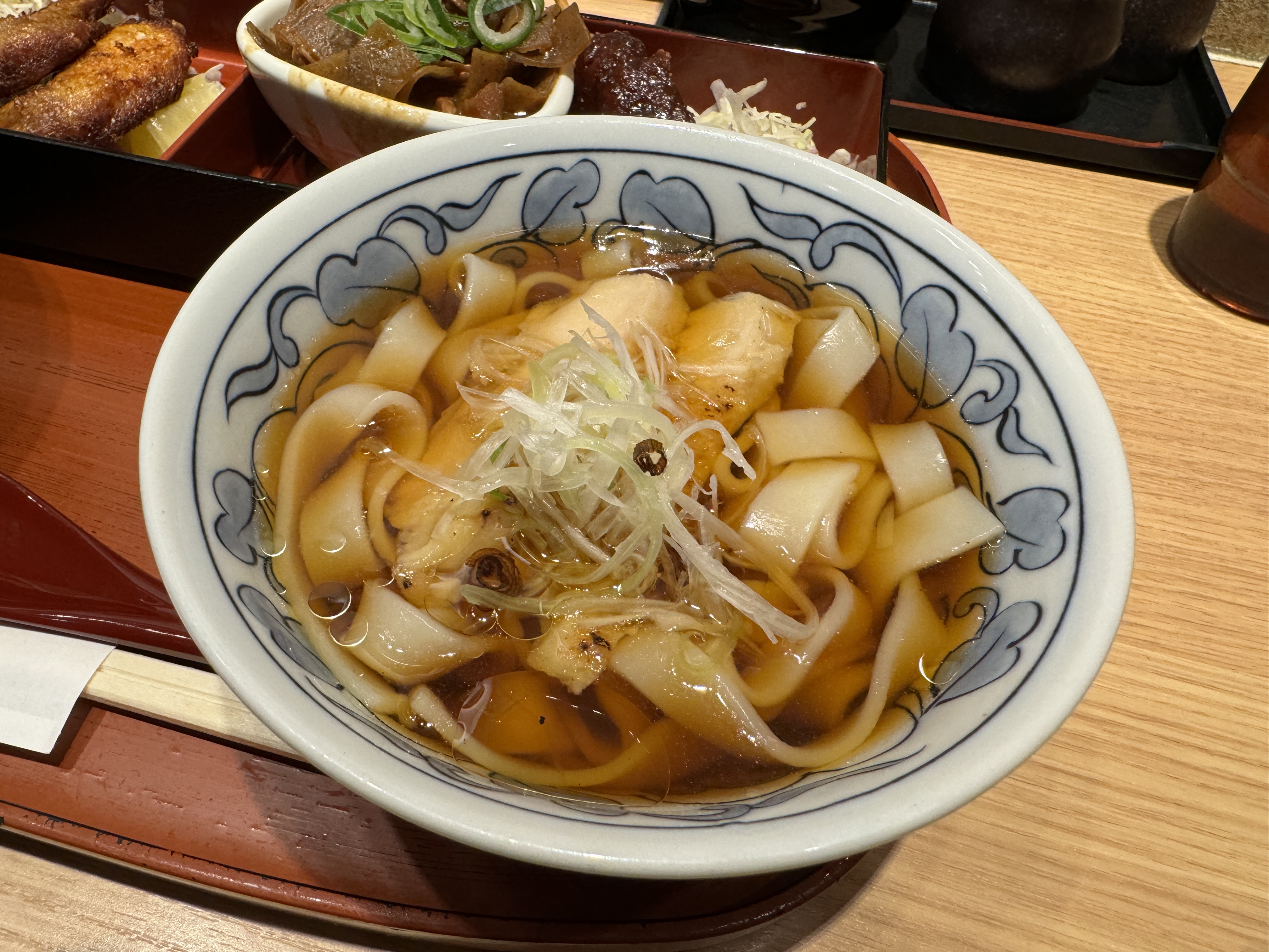 우동과 비슷한 음식인가 싶으면서도 면발이 칼국수처럼 납작한 것이 특징인데