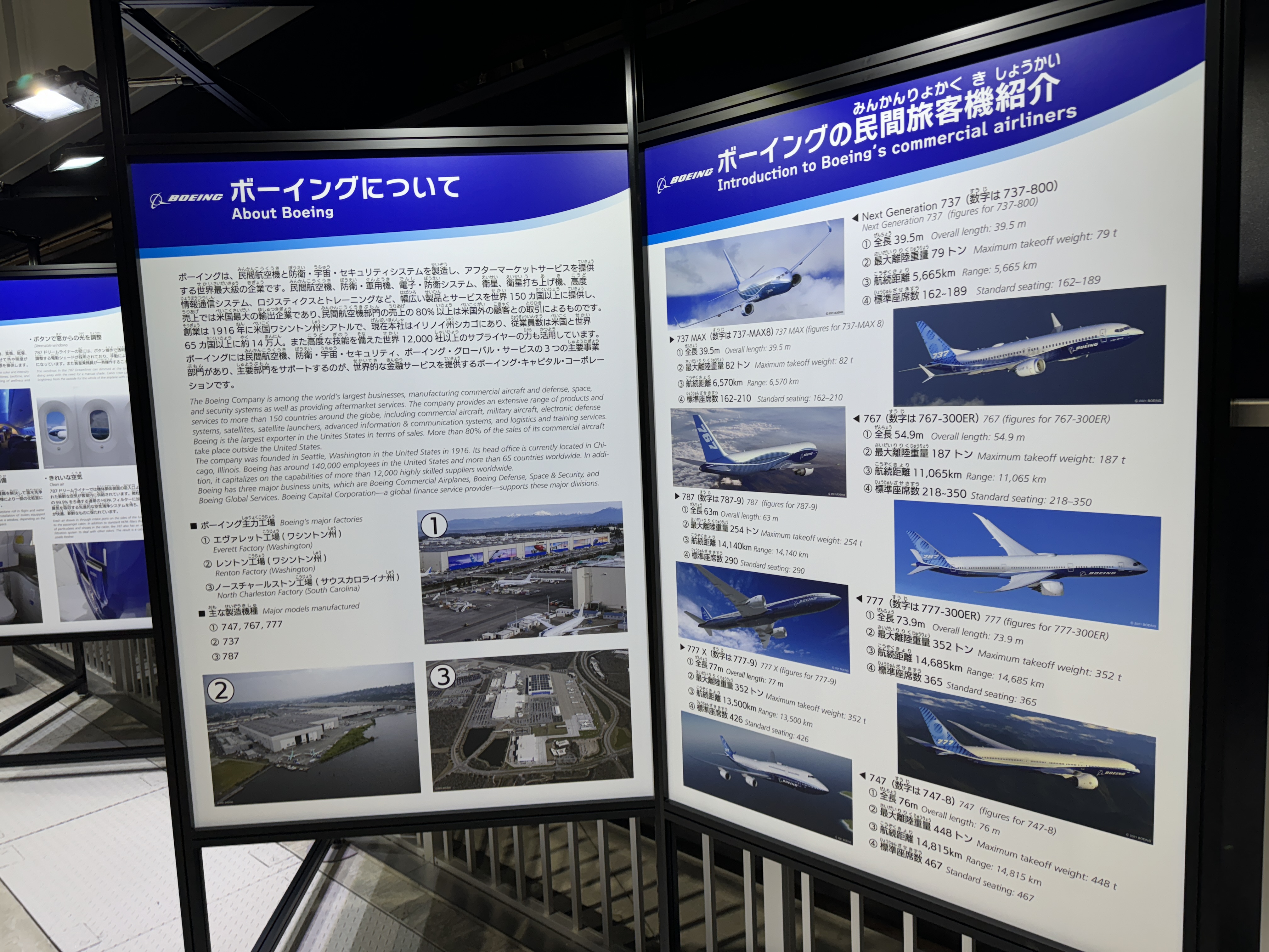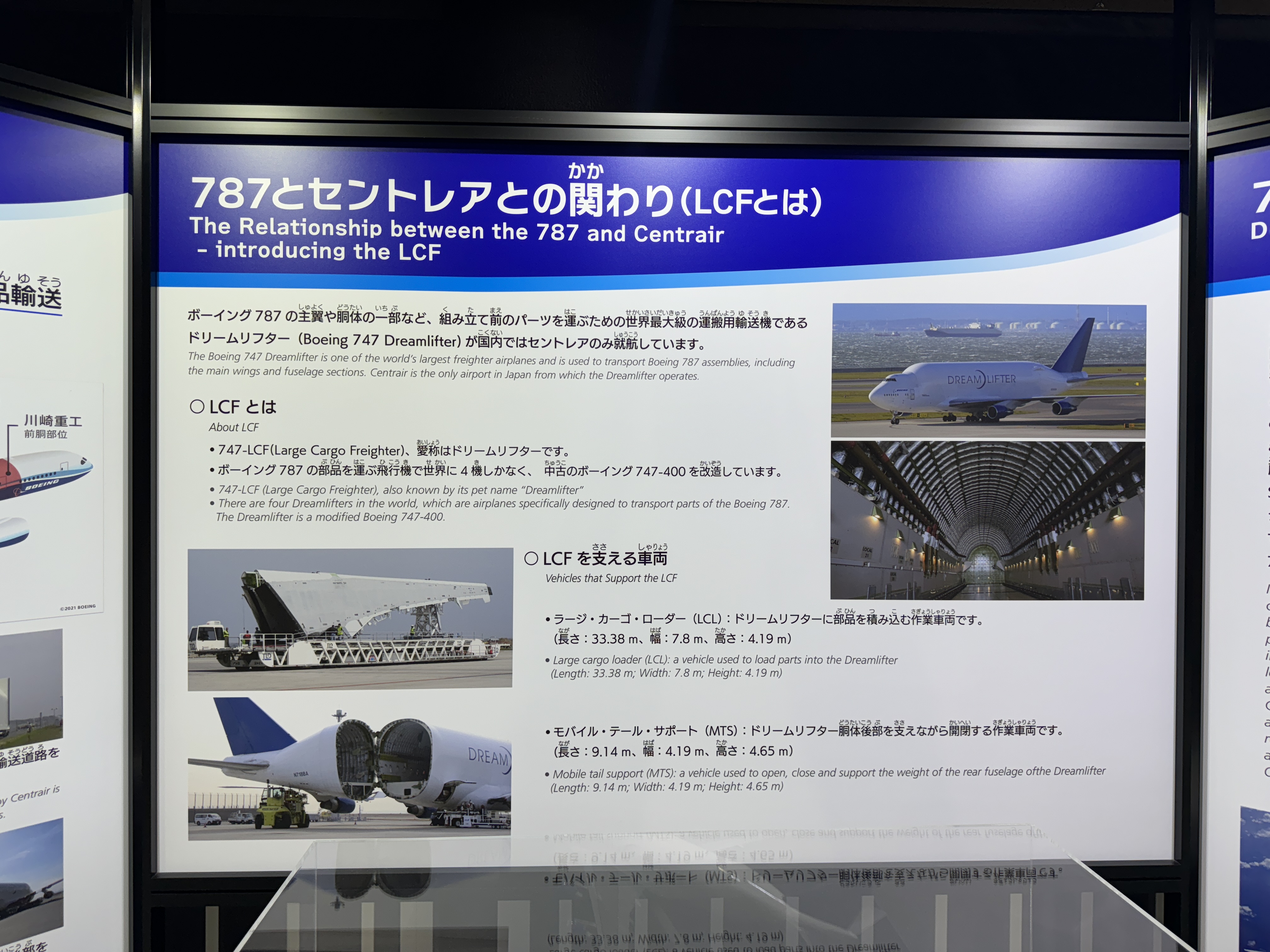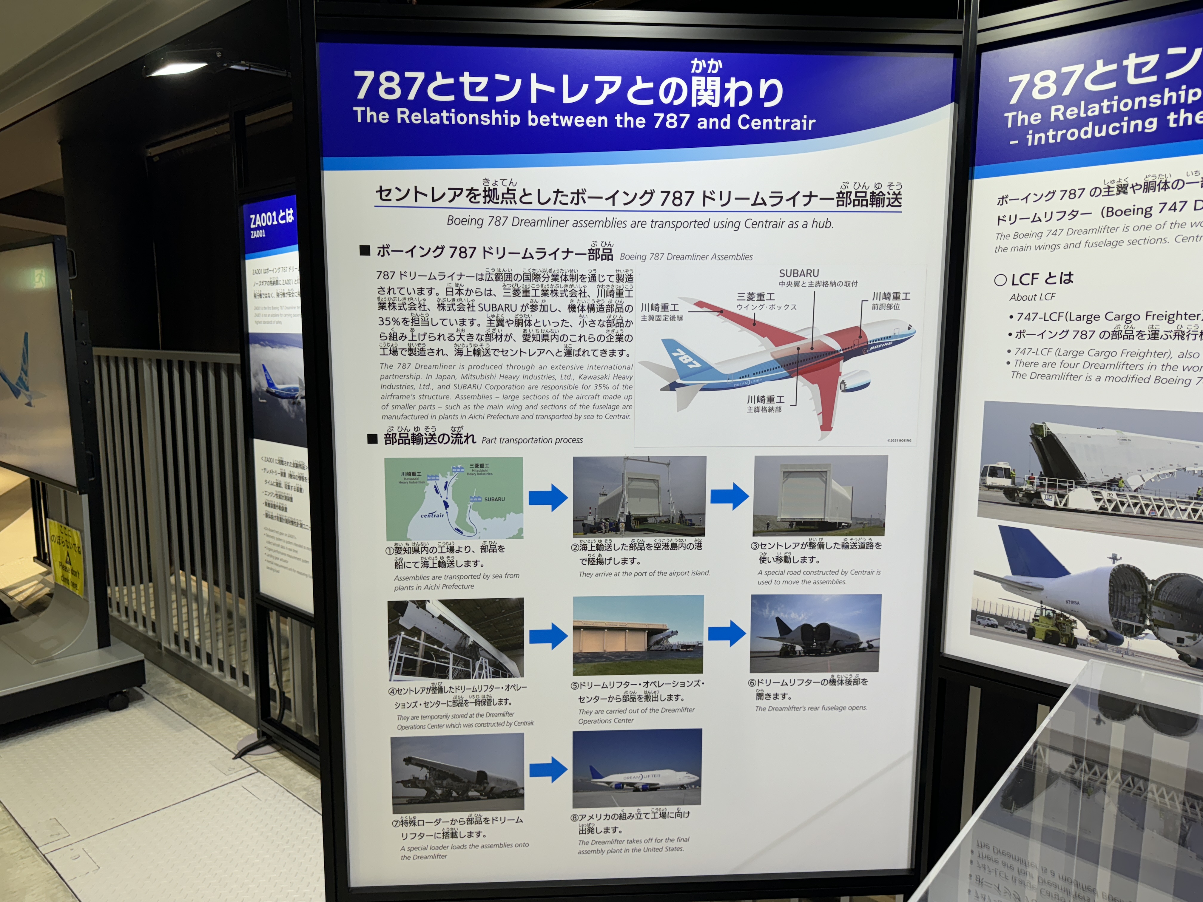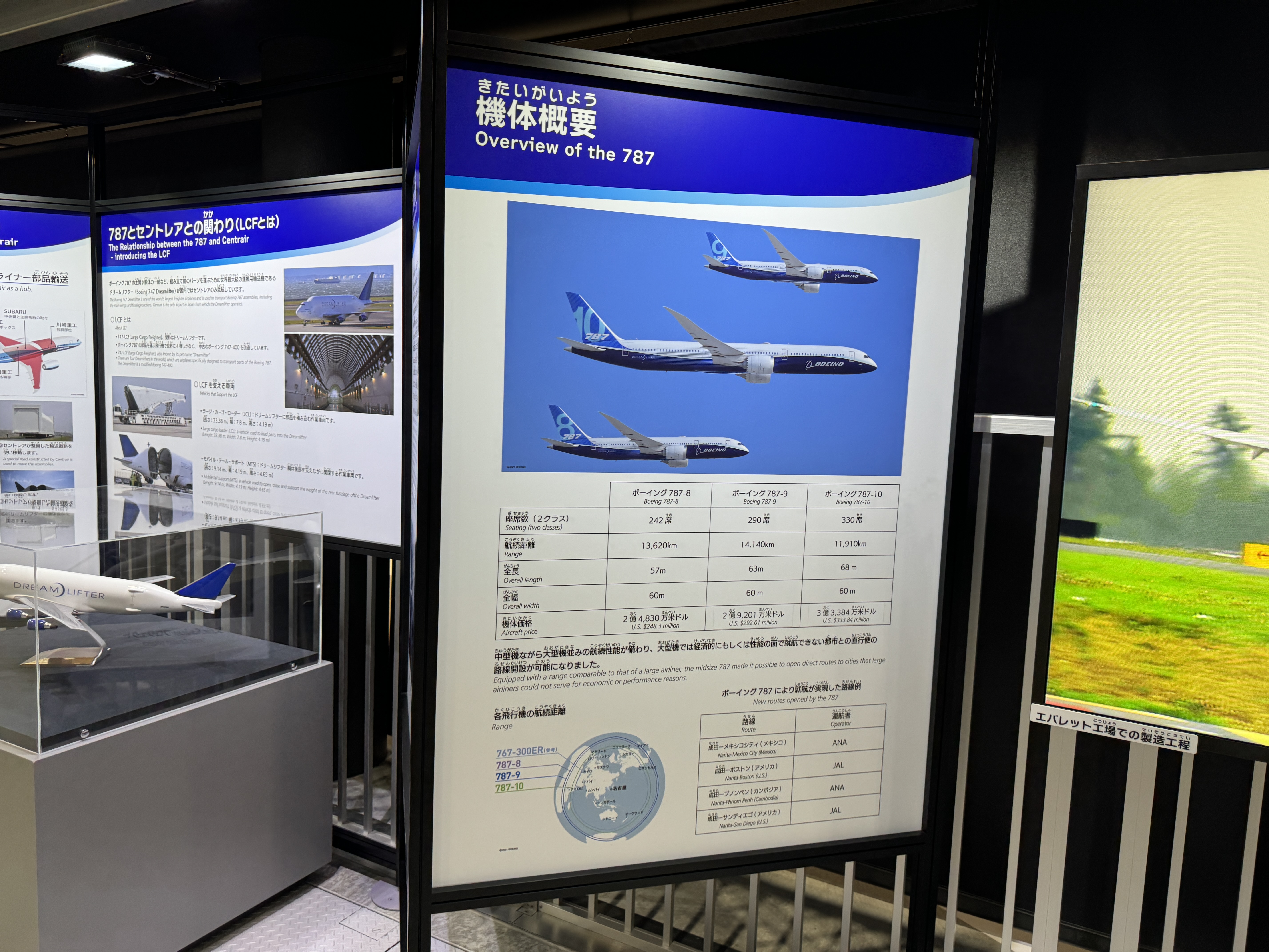 보잉 787과 츄부국제공항(센트레아)의 관계를 보여주는 패널도 있는데