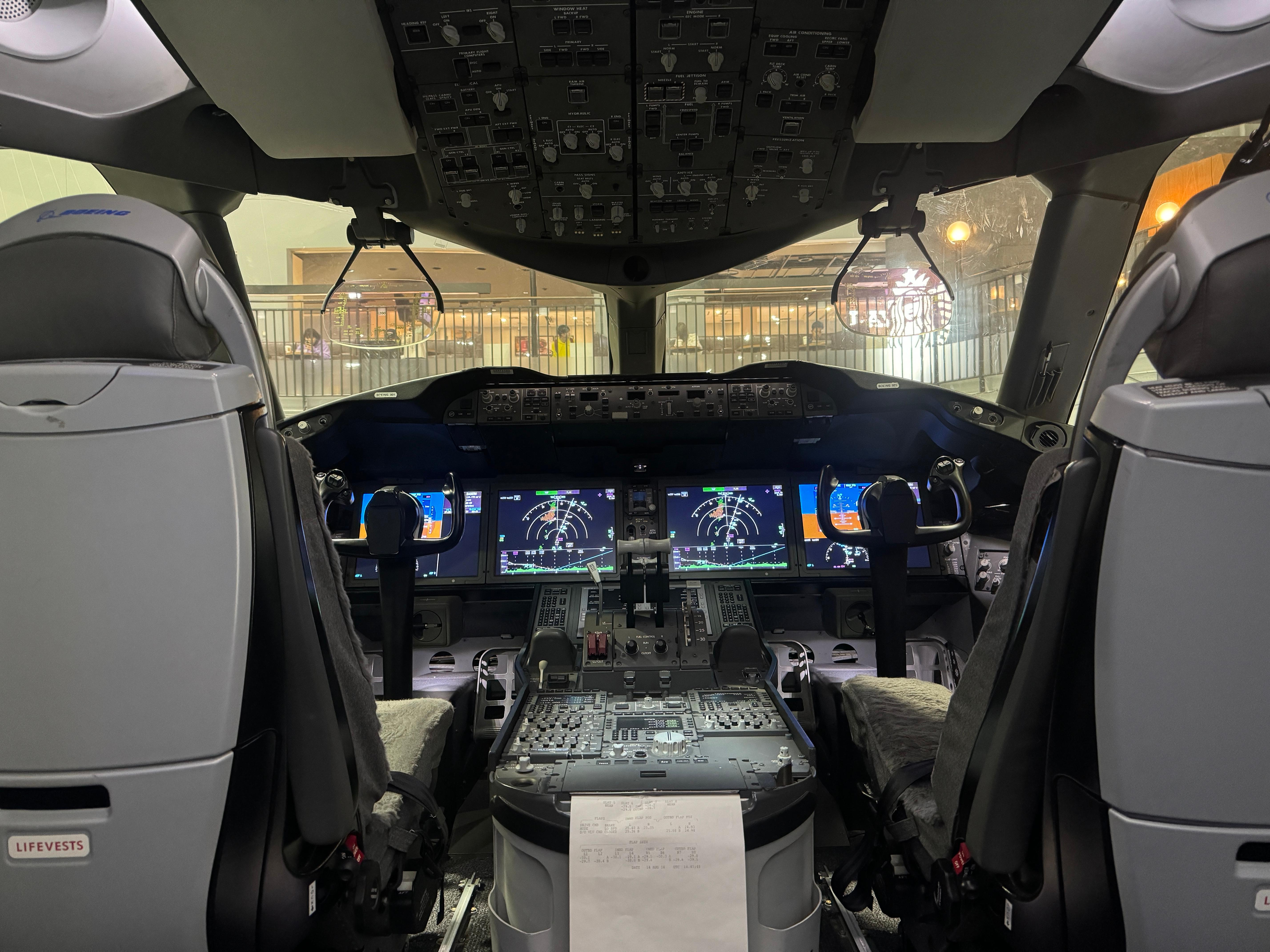 한국에서는 어지간하면 볼 일이 없는 콕핏이 유리창 너머로 보입니다.