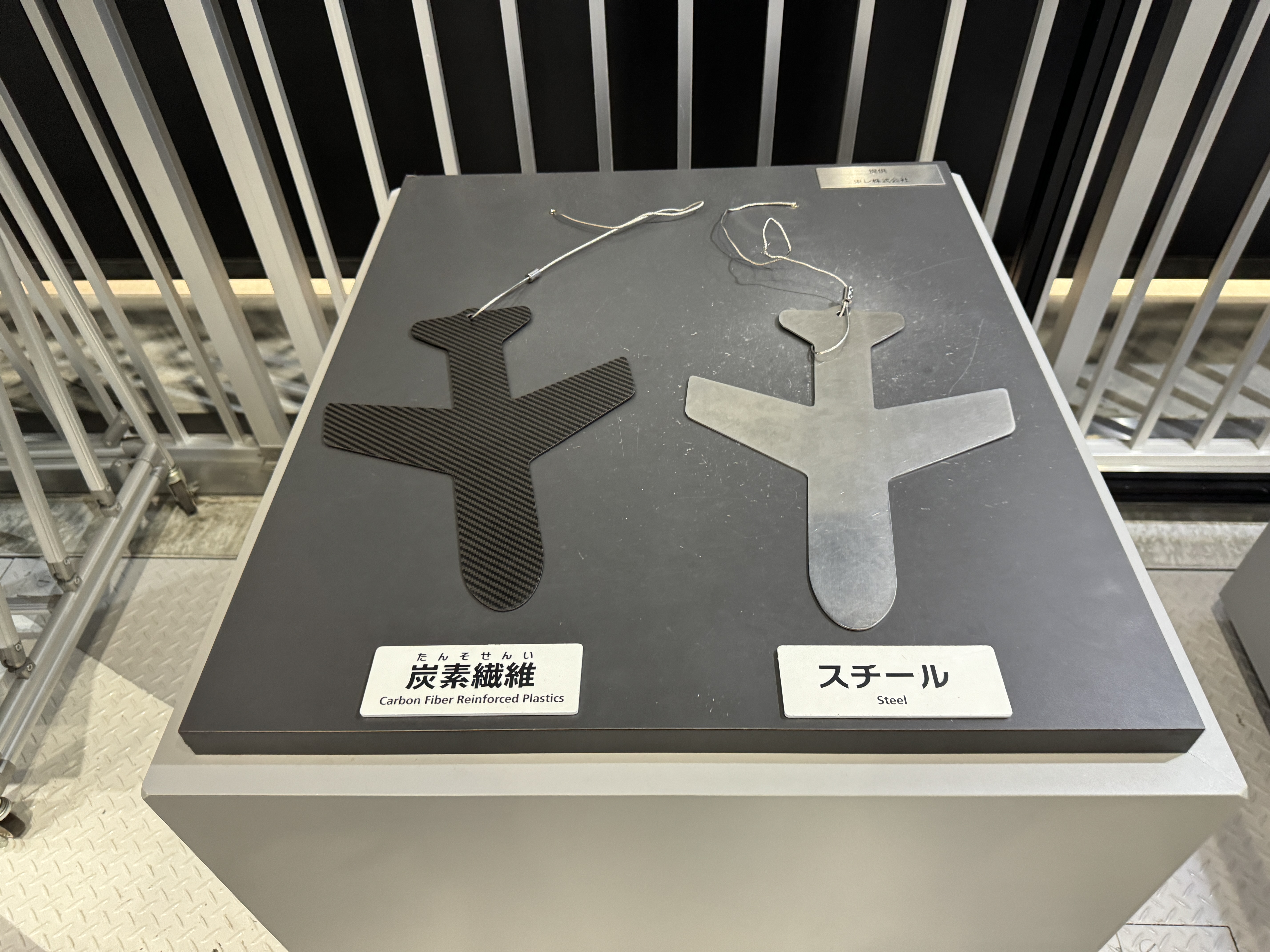 철로 만든 조각과 탄소 섬유 강화 플라스틱으로 만든 조각을 직접 들어보게 해서