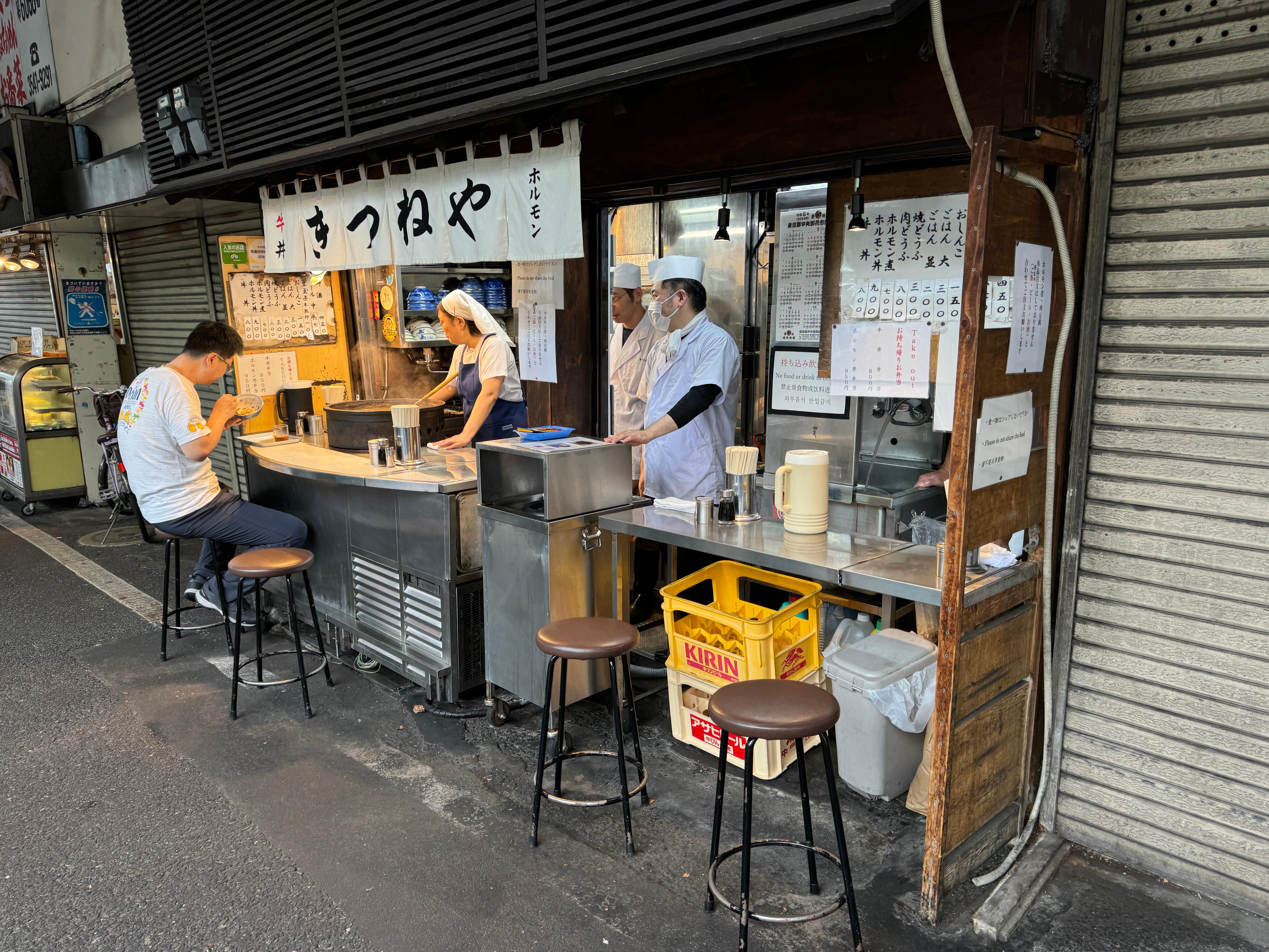 소 내장을 된장에 푹 삶은 뒤 밥에 얹은 호르몬동을 파는 키츠네야(きつねや).