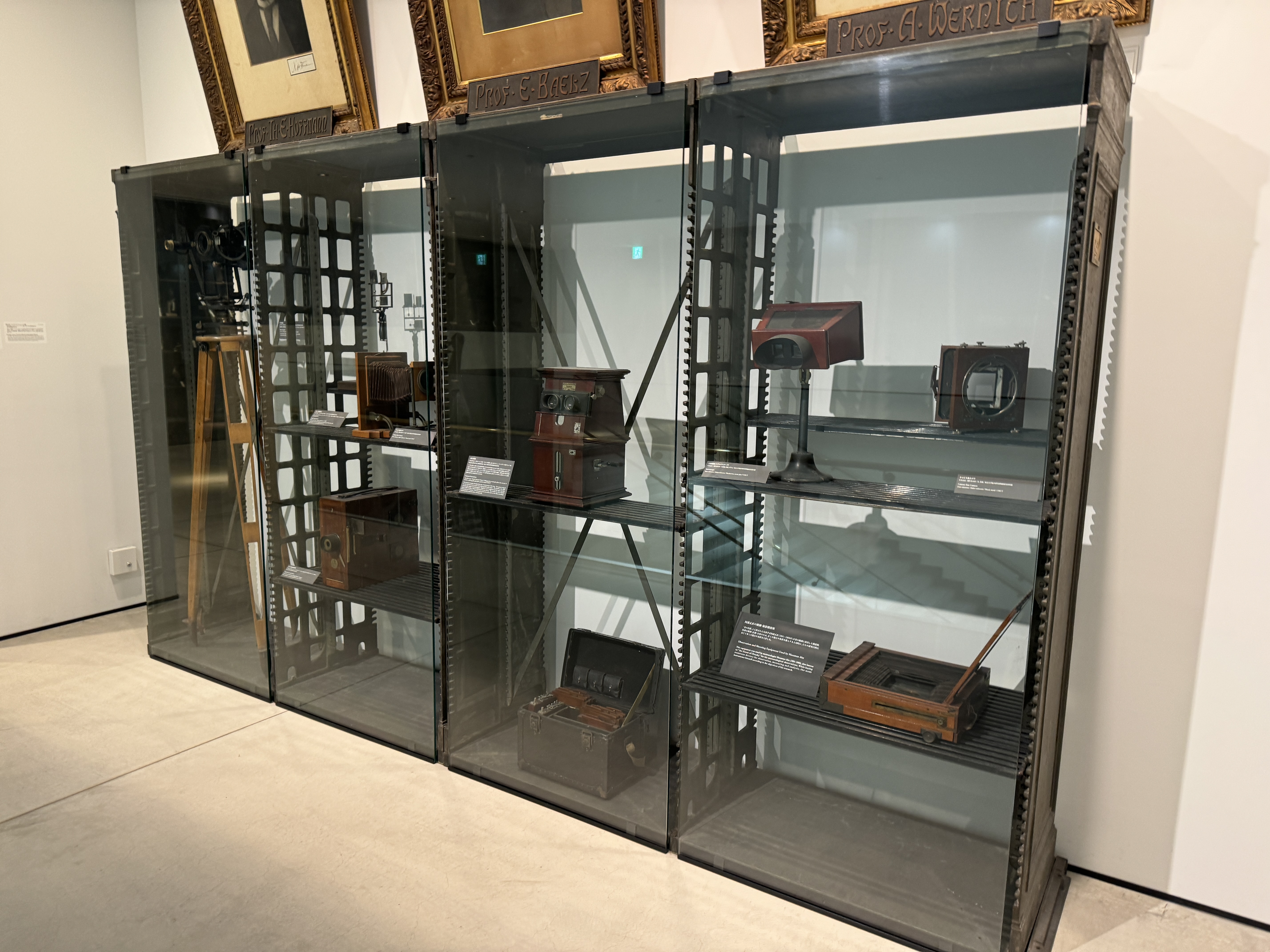 스테레오스코프나 초창기 대형 카메라 같은 영상 장치가 보이고