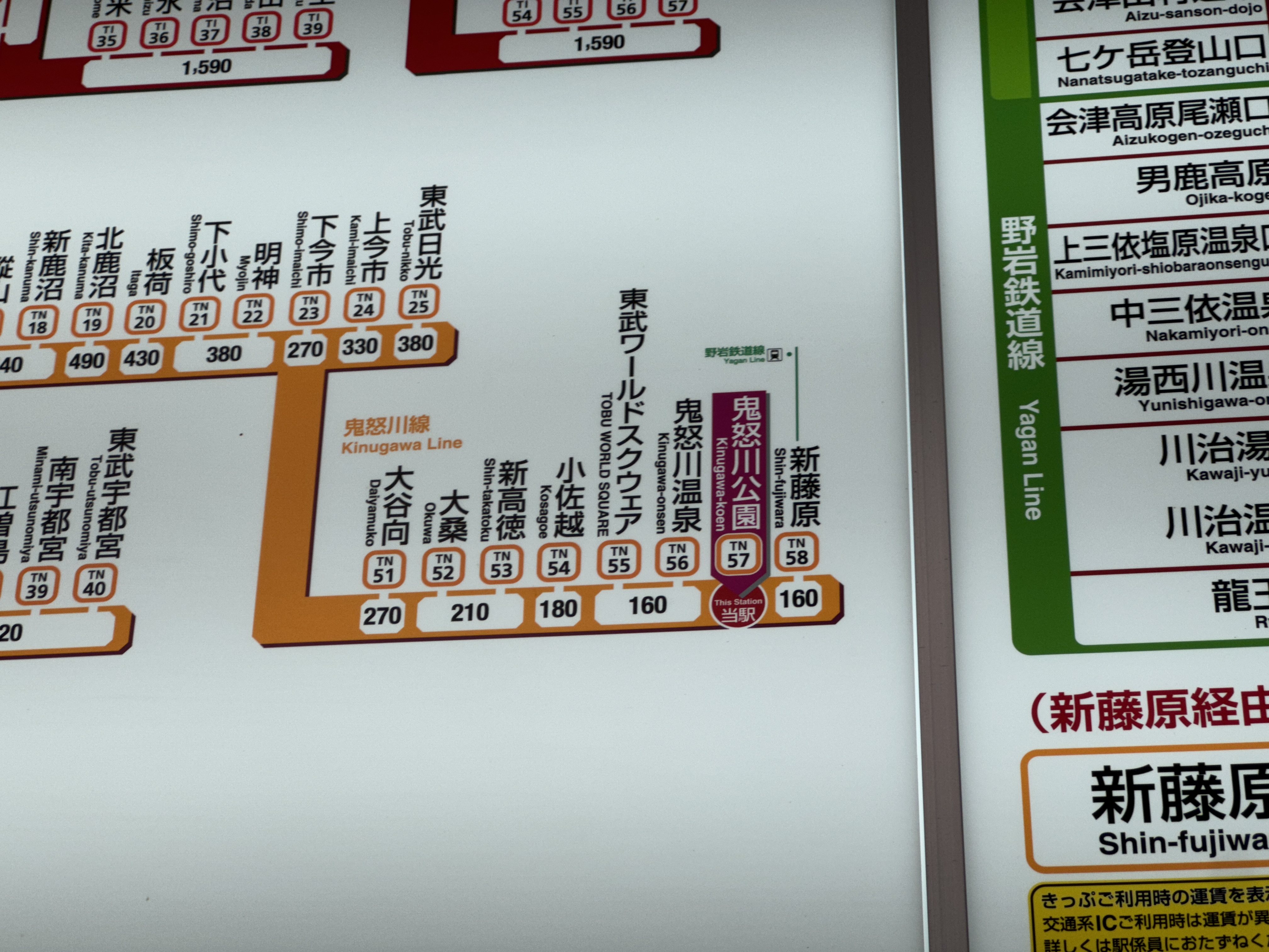 보통열차 운행이 대폭 줄어드는 키누가와온센역부터 북쪽으로 이동할 때에는