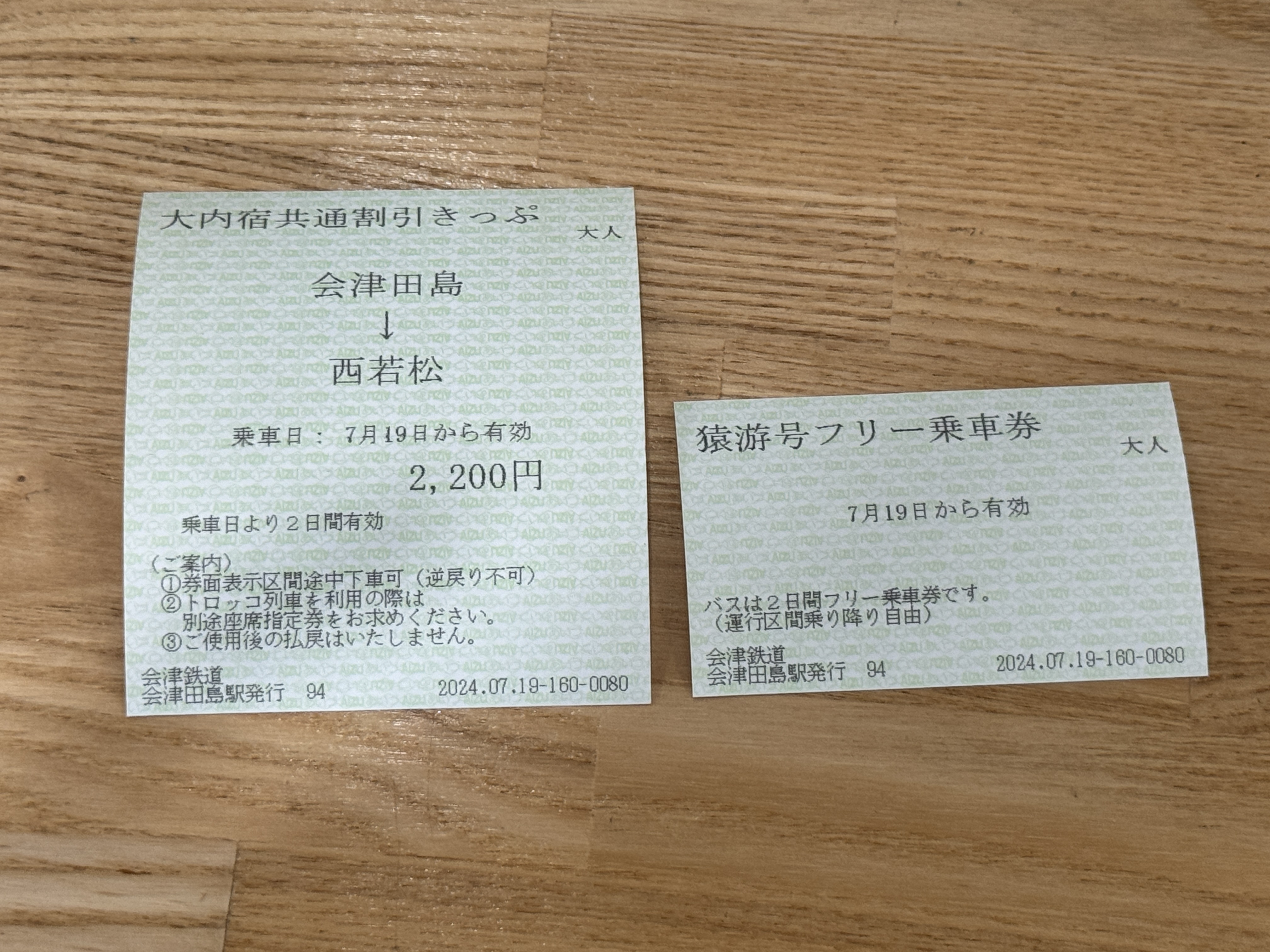 2,200엔짜리 오우치쥬쿠 공통 할인 승차권을 샀습니다.