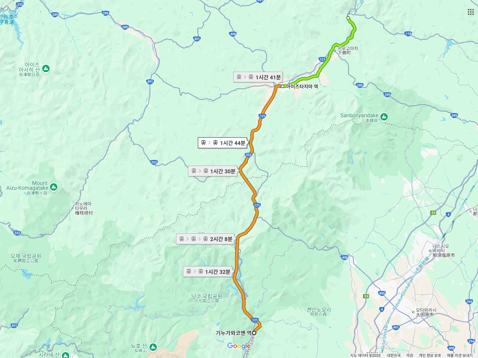 아이즈코겐오제구치역에서 니시와카마츠역까지는 아이즈 철도,