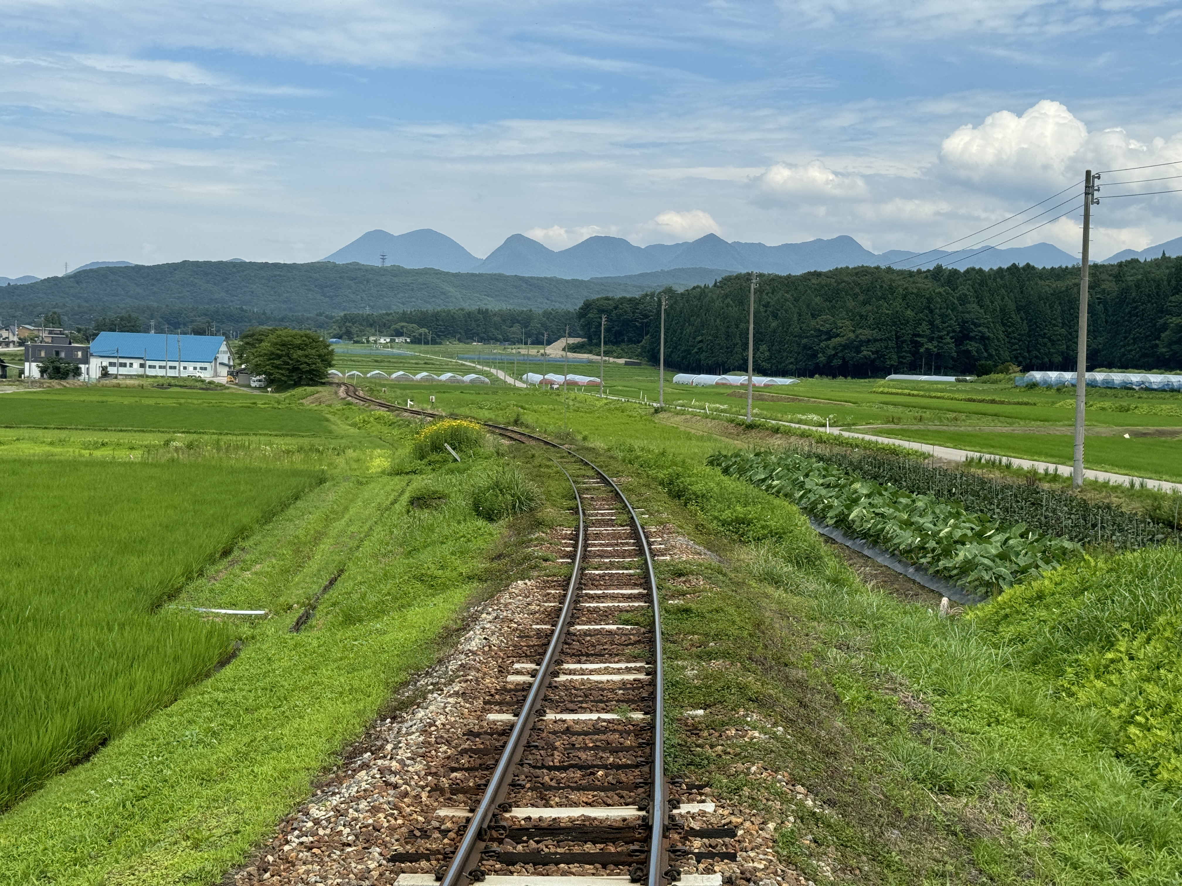아이즈타지마역을 출발하면 철길 위에 있던 전깃줄이 사라지고