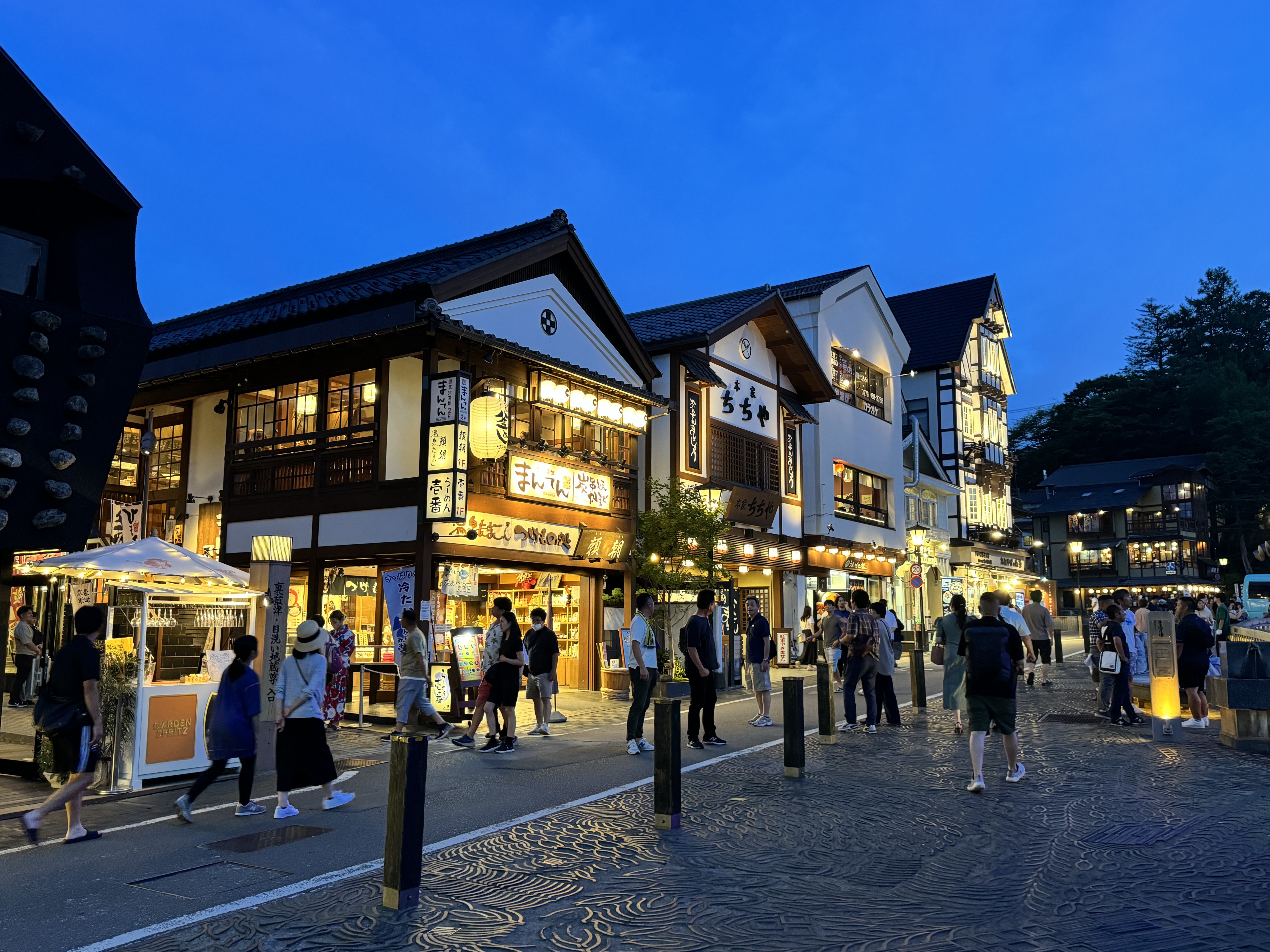 유바타케 곳곳에 놓인 조명이 환하게 빛을 비추고