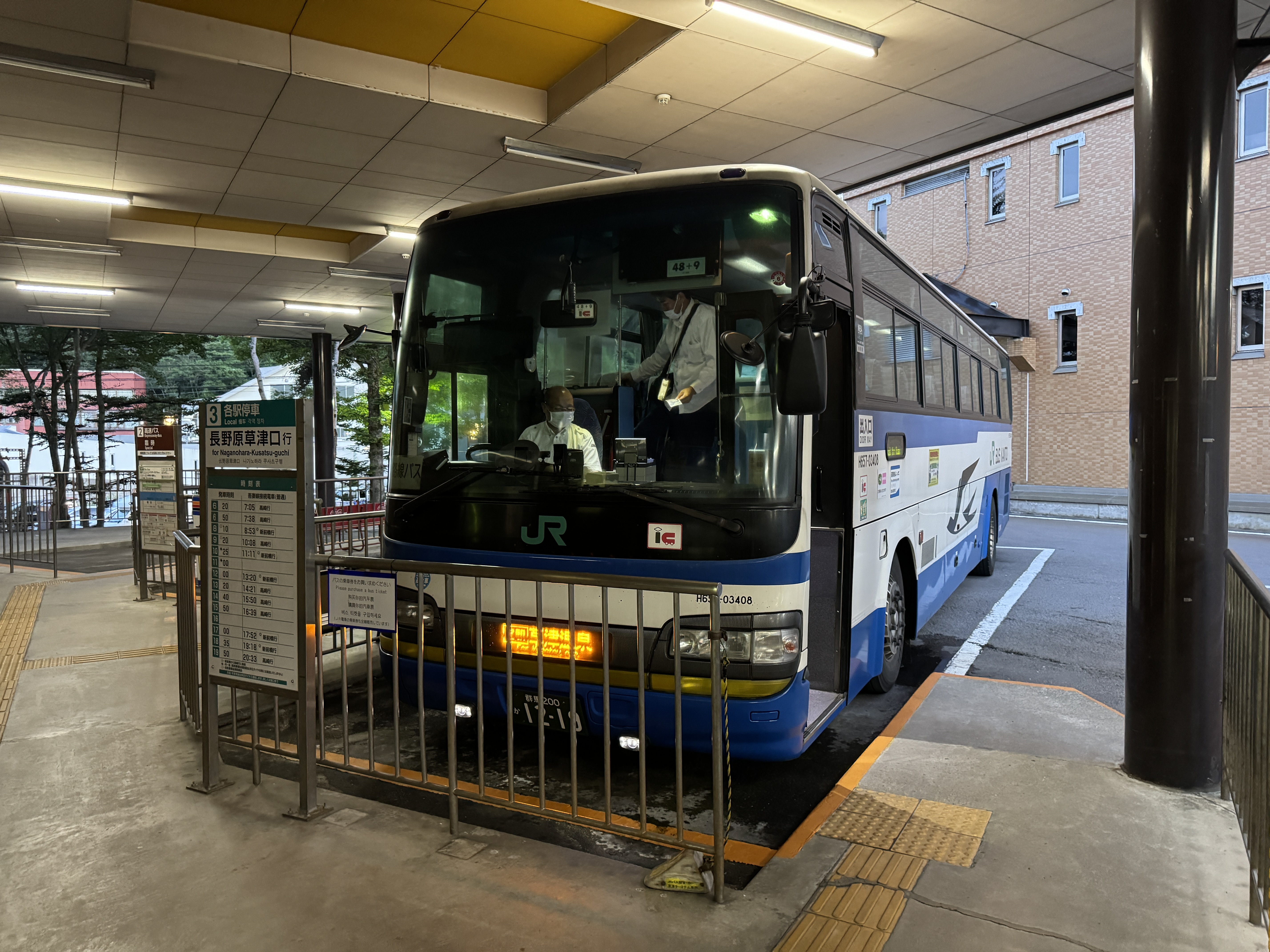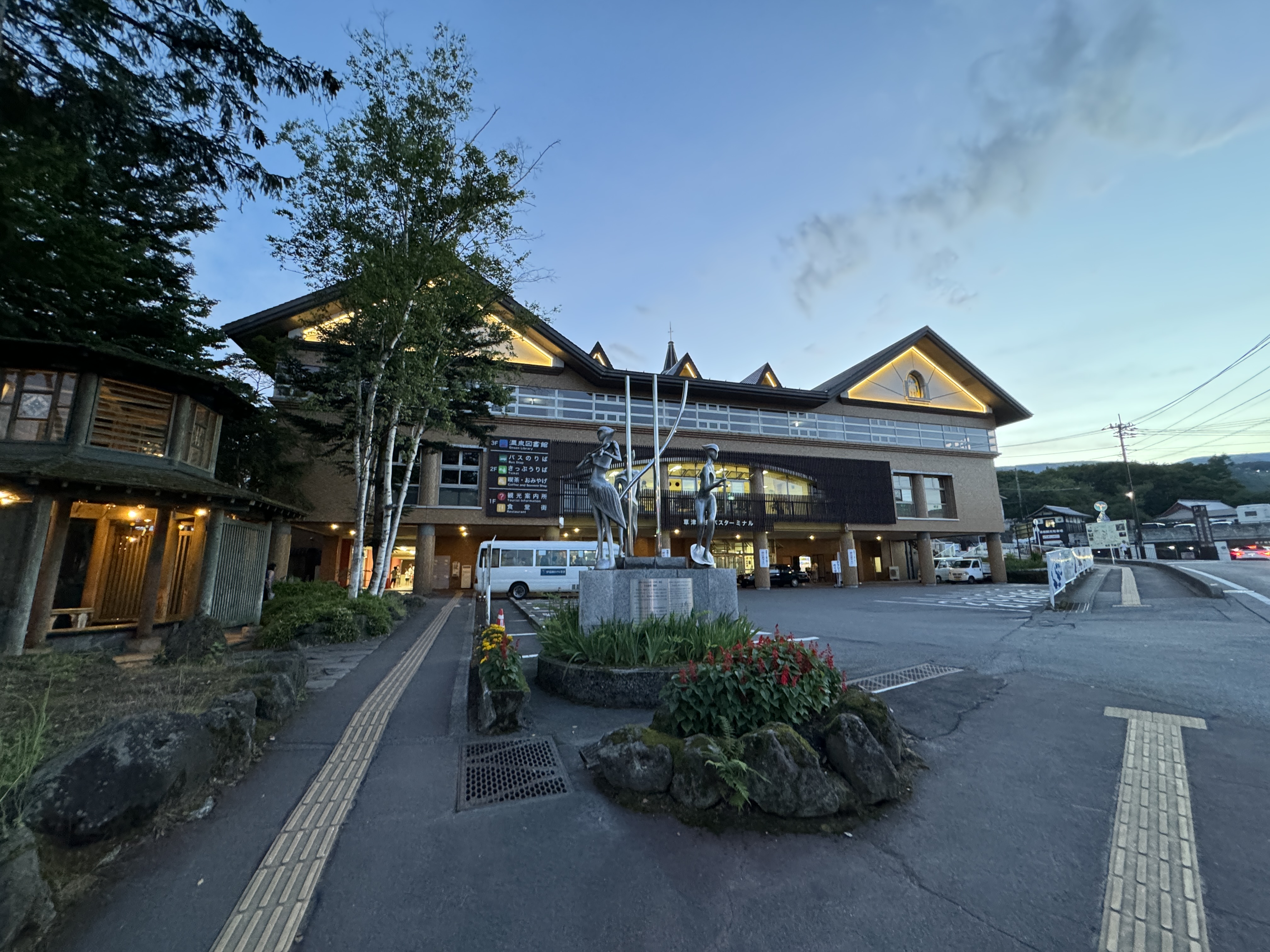 역을 나오면 바로 쿠사츠 온천으로 가는 버스를 타는 정류장이 나오는데
