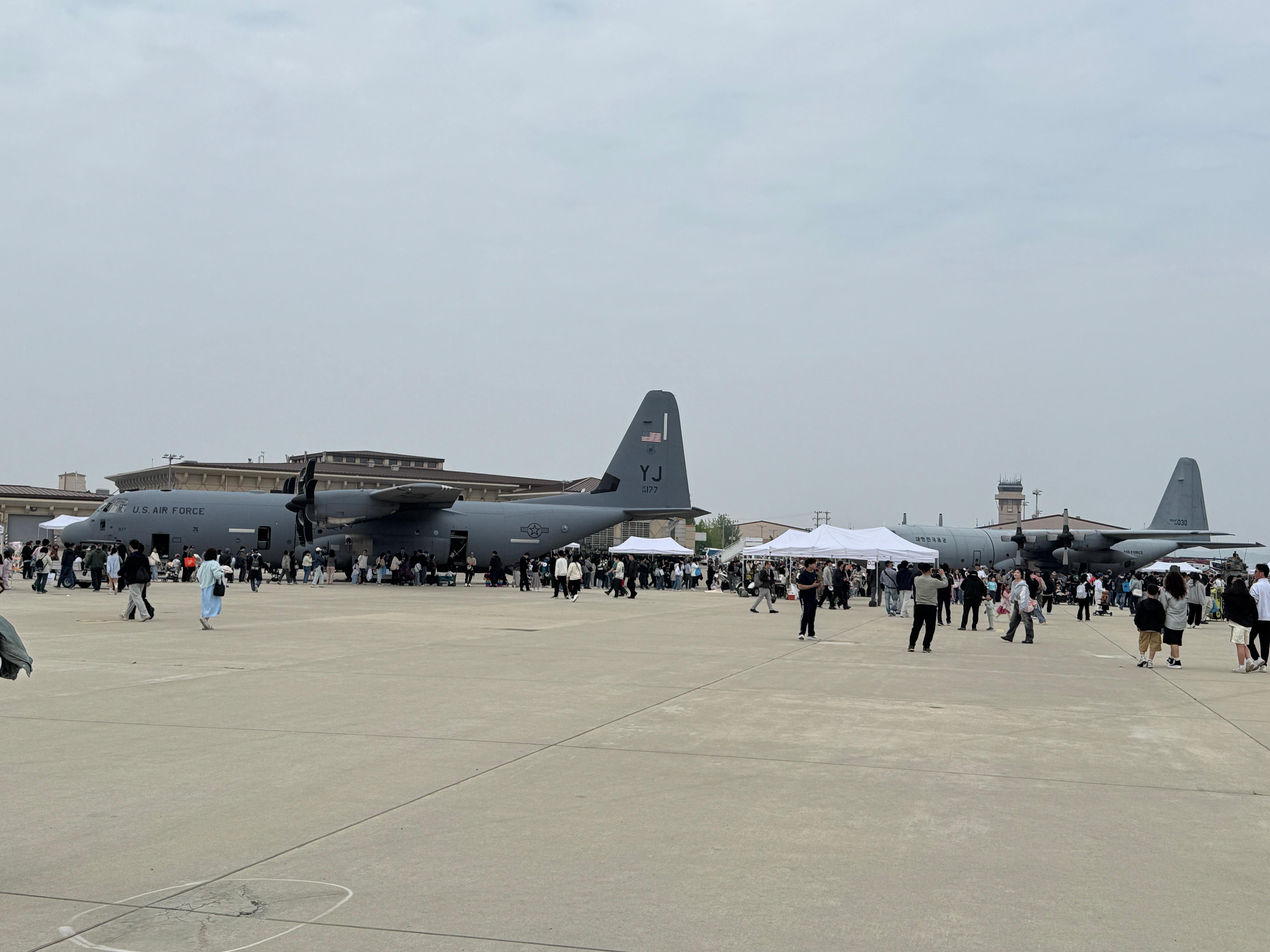 특이하게 미군 공군과 한국 공군에서 운용 중인 수송기 C-130 허큘리스가 나란히 놓여 있는데