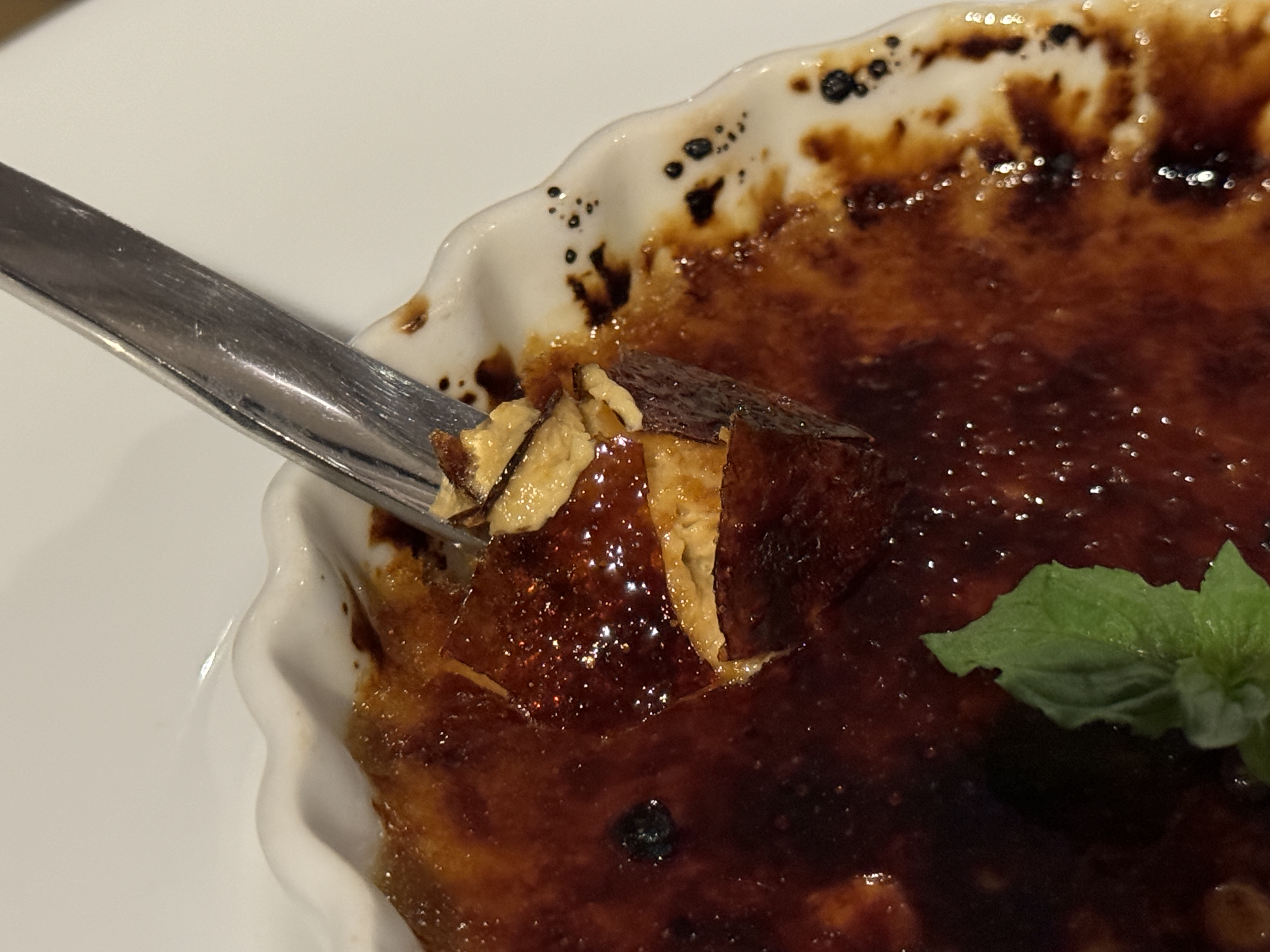 설탕을 단단하게 구운 크렘브륄레가 나오자마자