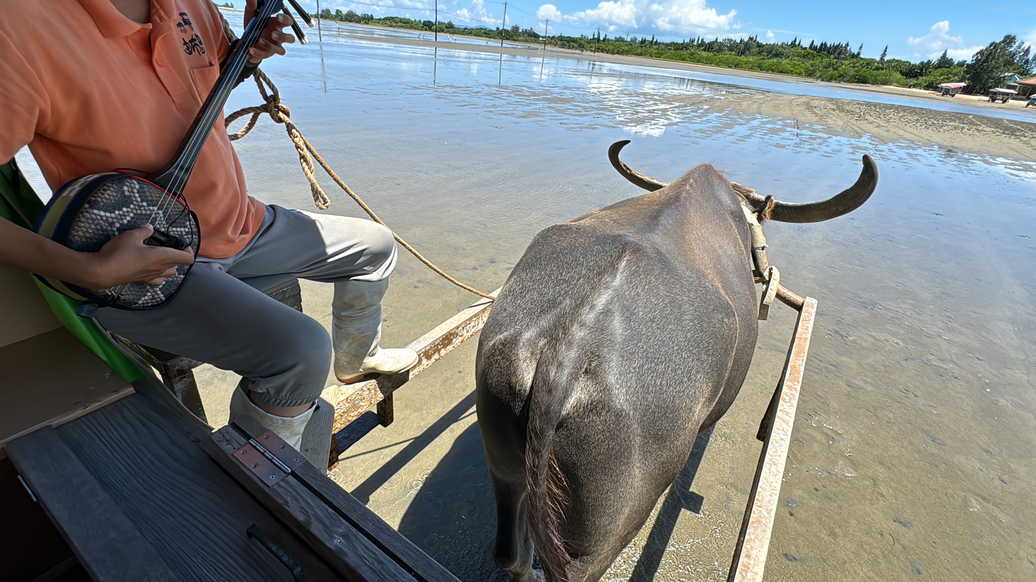 Singing folk songs on a water buffalo cart