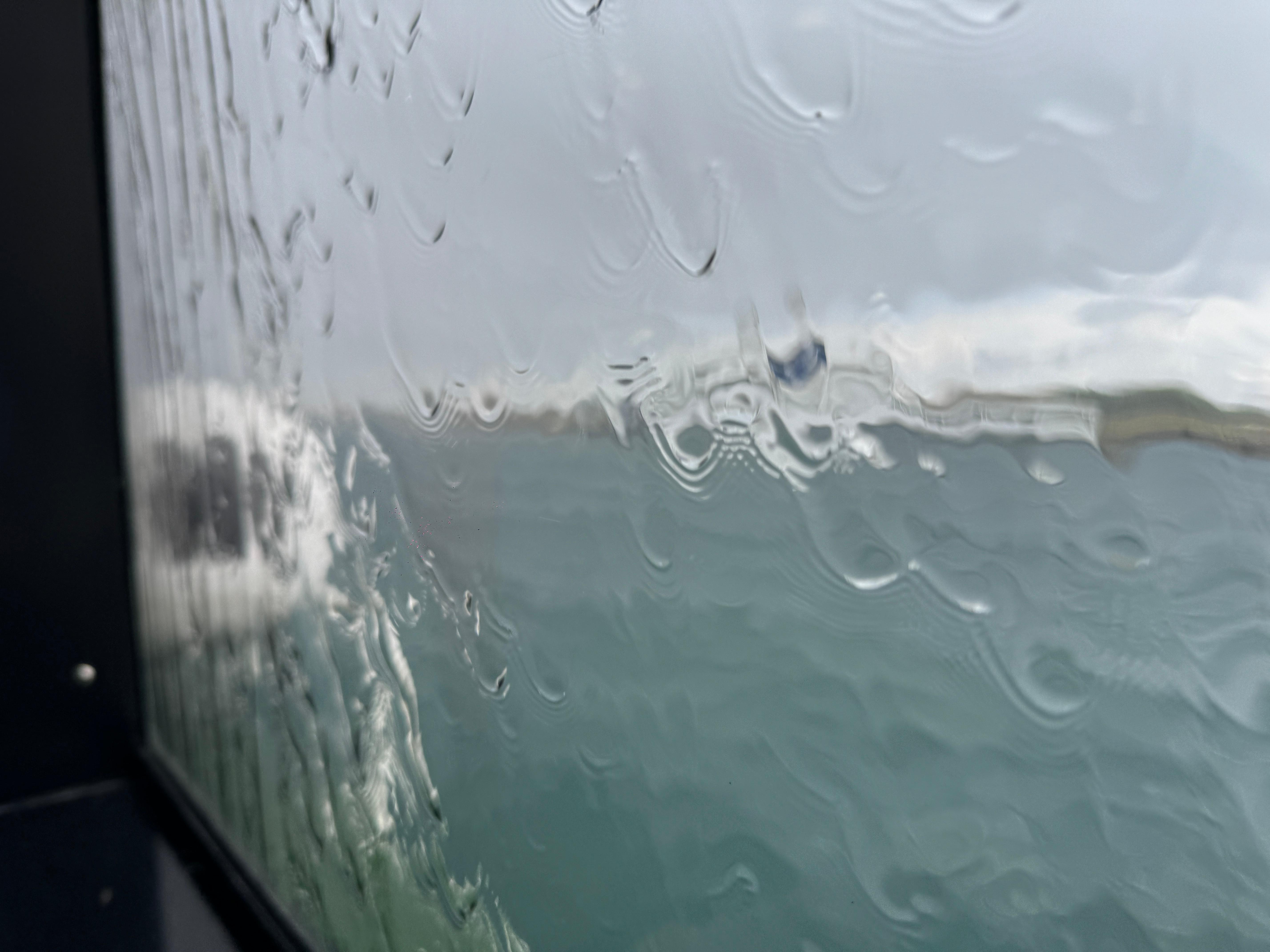 살에 닿으면 따가울 정도로 세게 내리는 비가 그치기를 기다리며