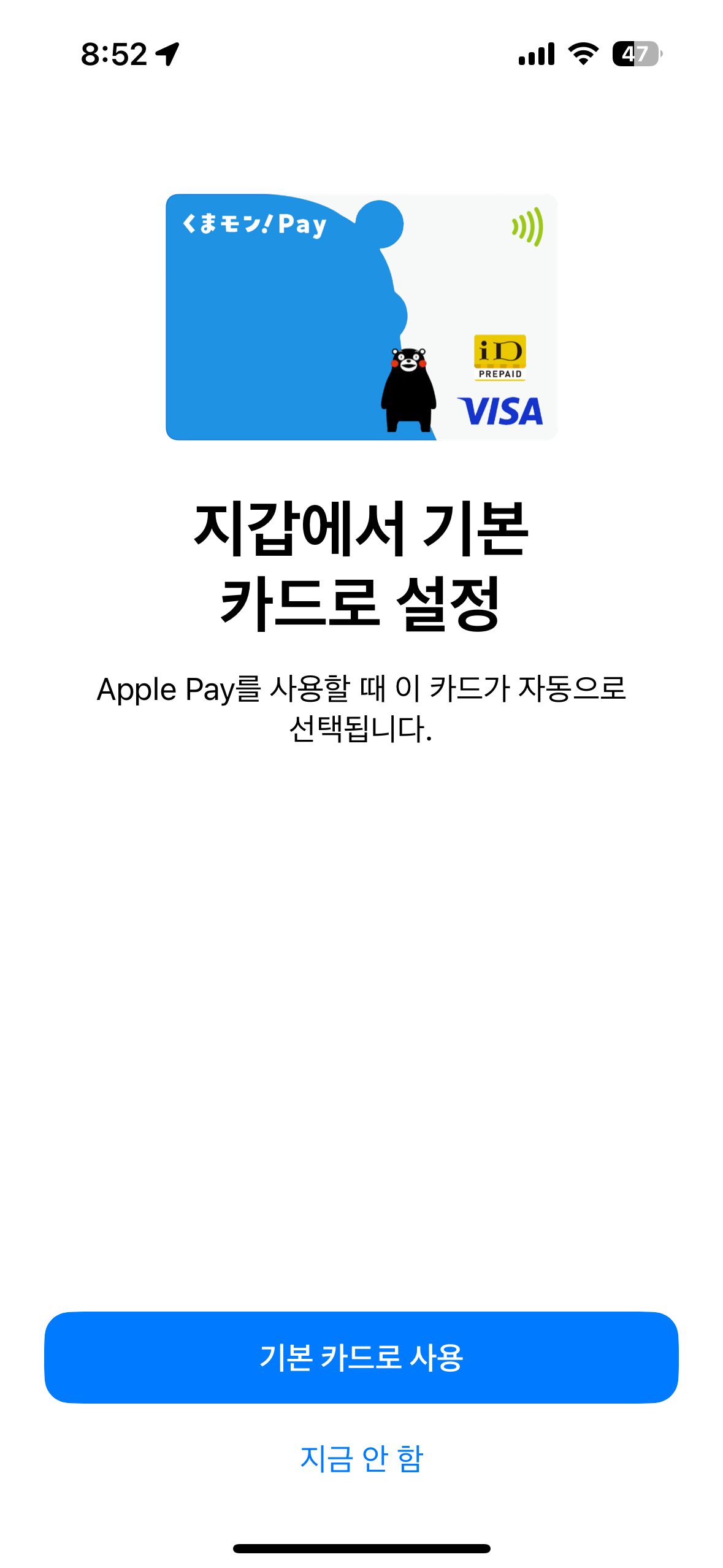한국에서 애플페이용 티머니가 발표된 날, 일본에서는 쿠마몬!페이라는 서비스가 시작됐습니다.