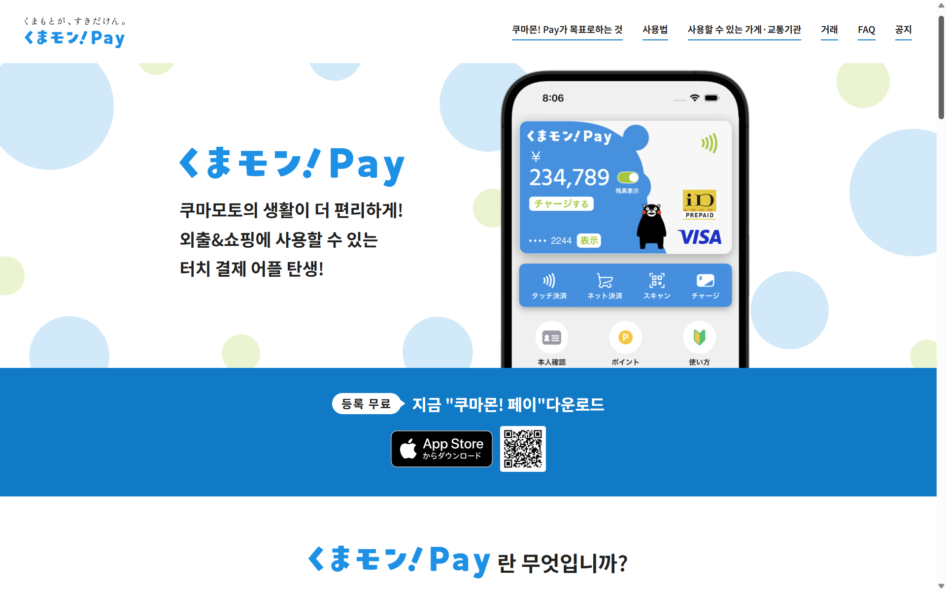스마트폰으로도 교통카드 기능을 쓸 수 있는 쿠마몬!페이(くまモン!Pay)라는 모바일 페이를 서비스하겠다고 했는데