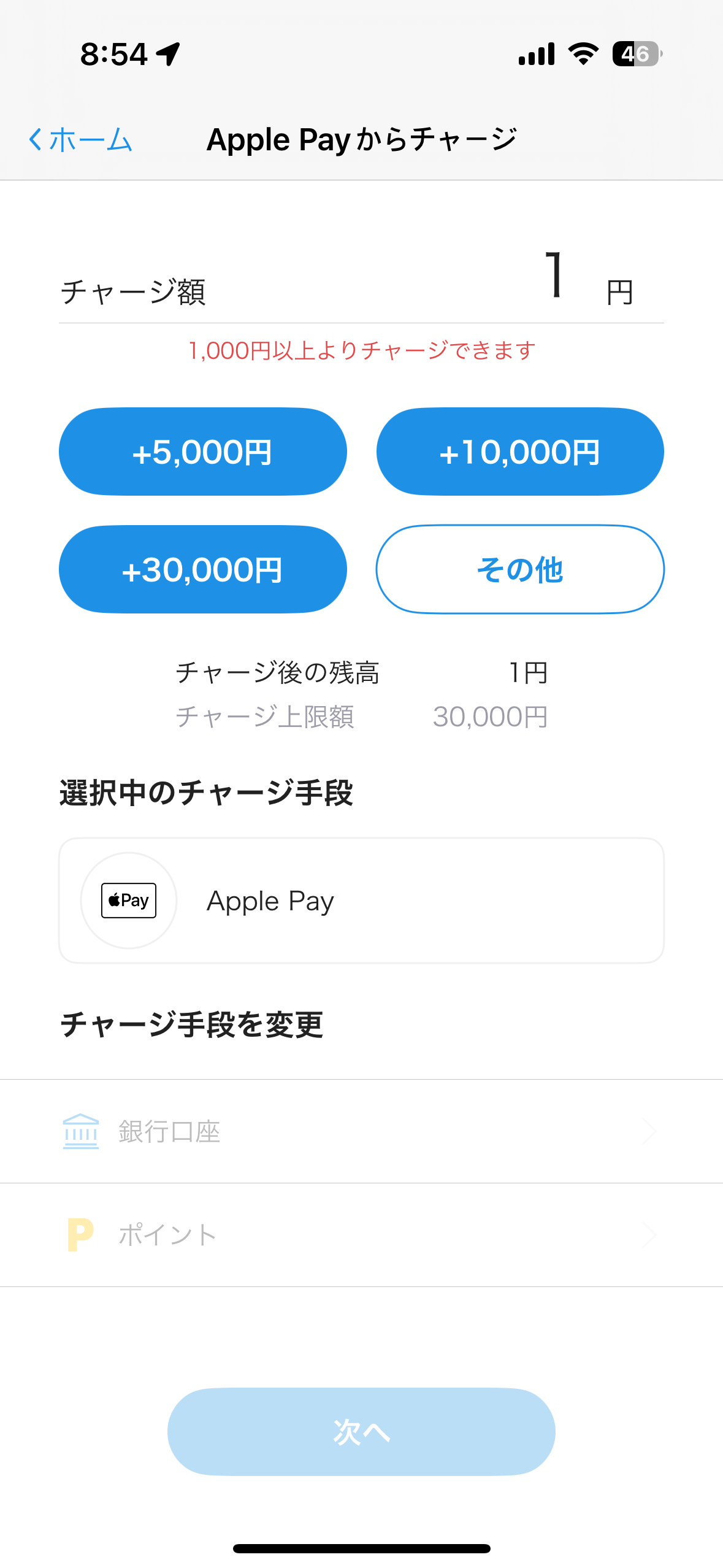 본인인증을 하지 않은 경우 충전 상한액은 30,000엔이네요.