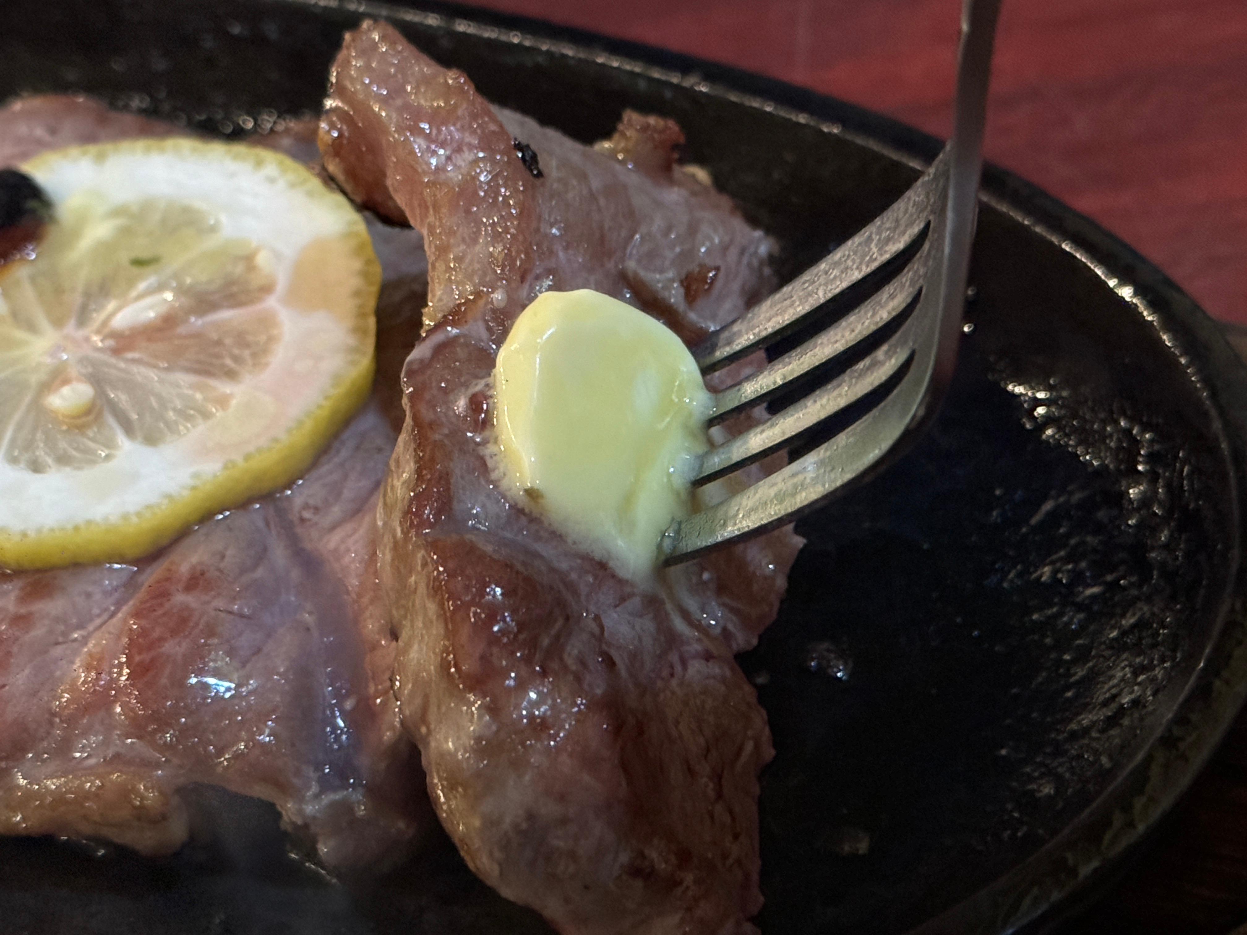 버터를 고기 위에 올리고 칼을 썰어봤는데...