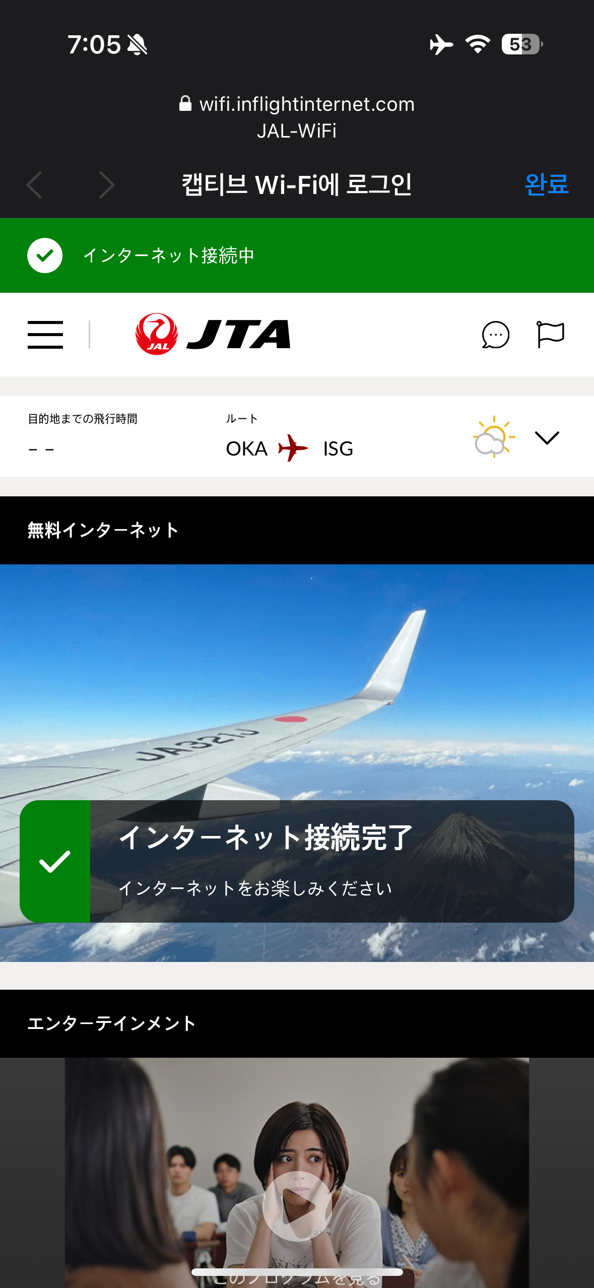 하필이면 바로 옆에서 출발하는 오키나와행 비행기가
