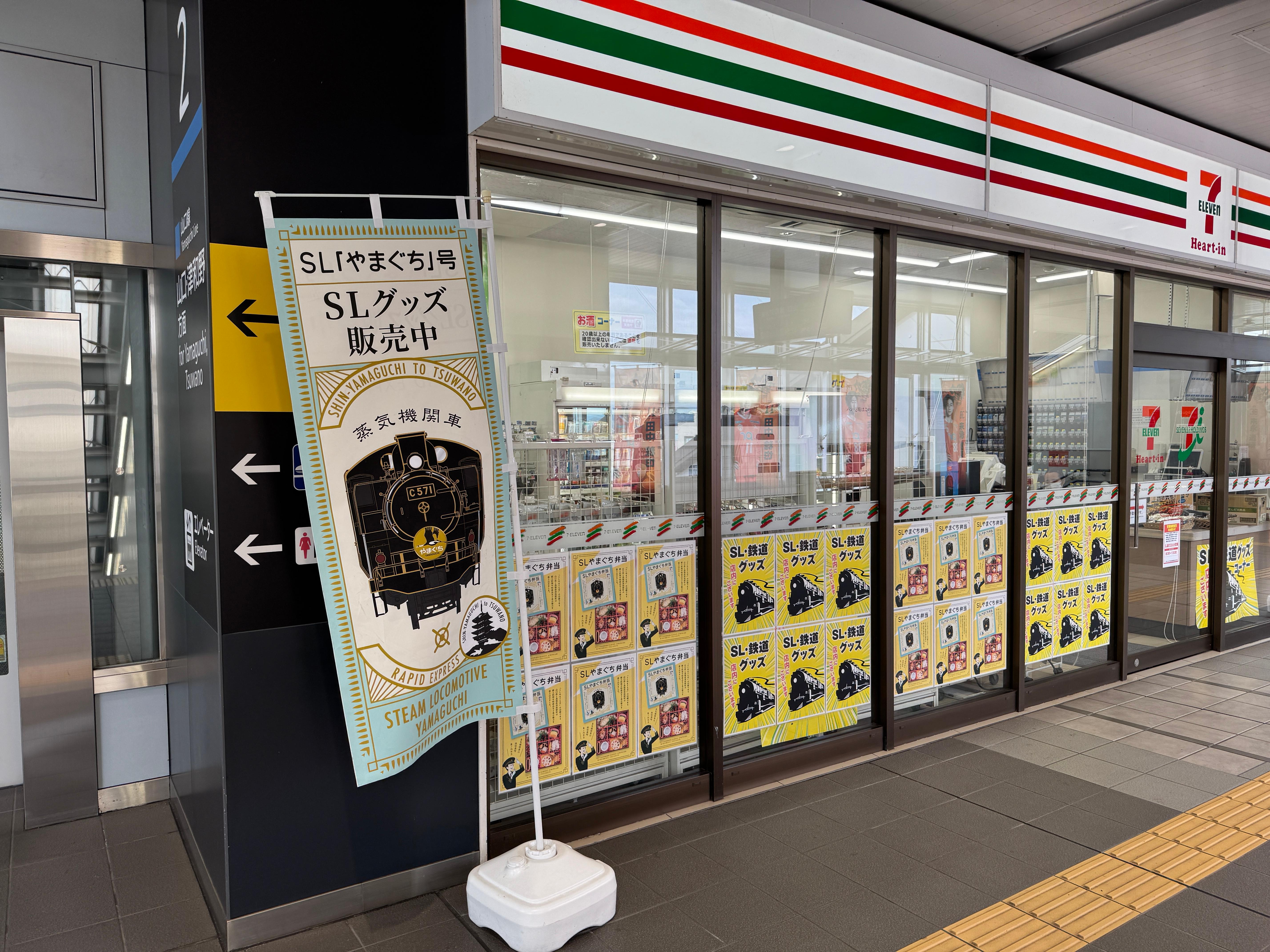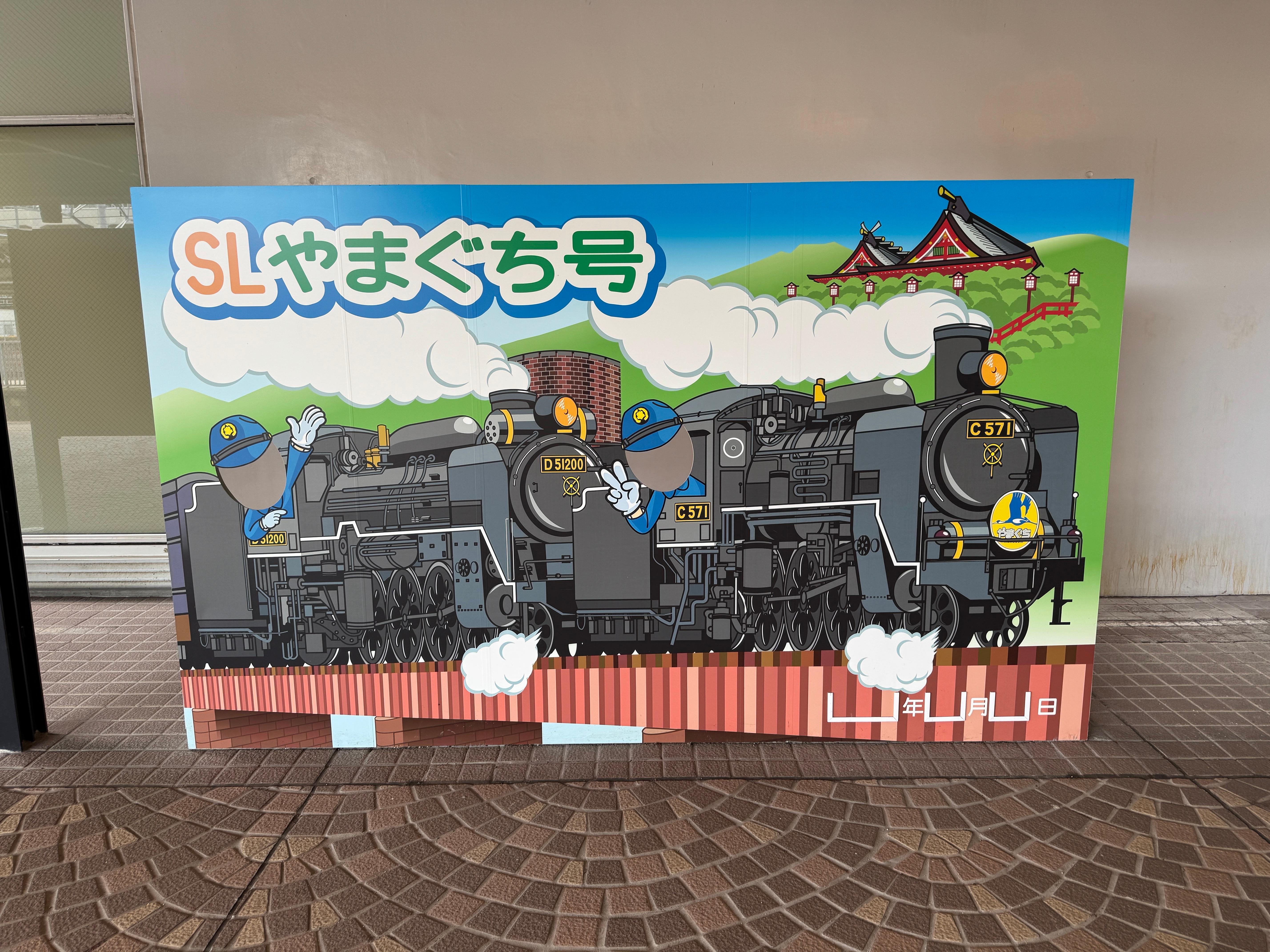 신야마구치역 곳곳에 SL 야마구치호 관련 홍보물이 놓여 있지만