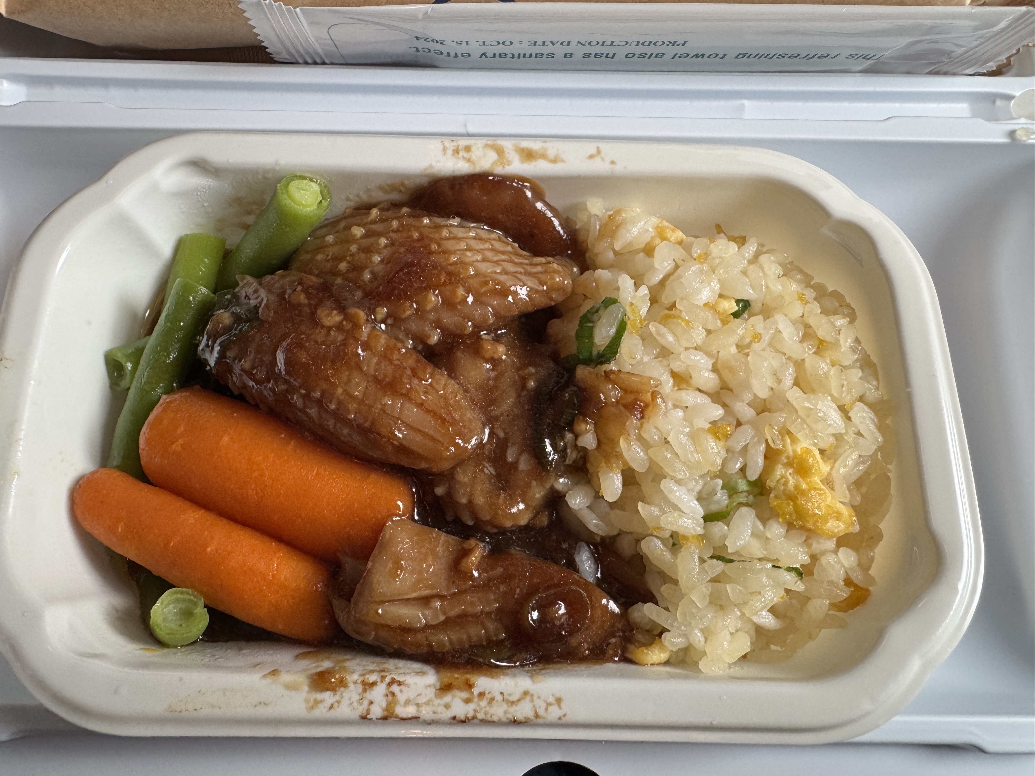 의외로 샌드위치나 삼각김밥 같은 콜드밀이 아니라 한번 데운 기내식을 주네요.