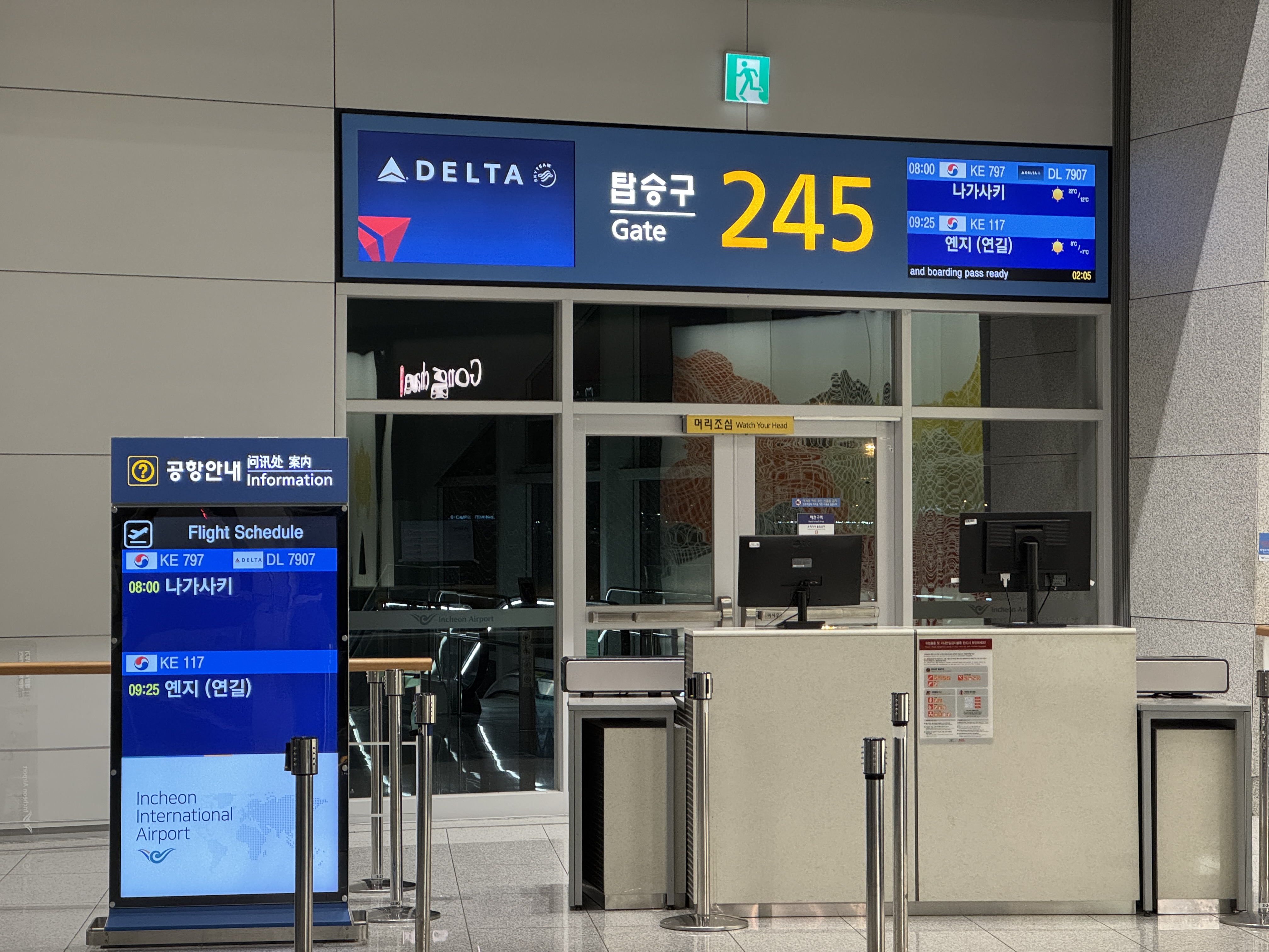 자고 일어나니 나가사키로 갈 대한항공 비행기가 보딩 브리지에 연결됐는데