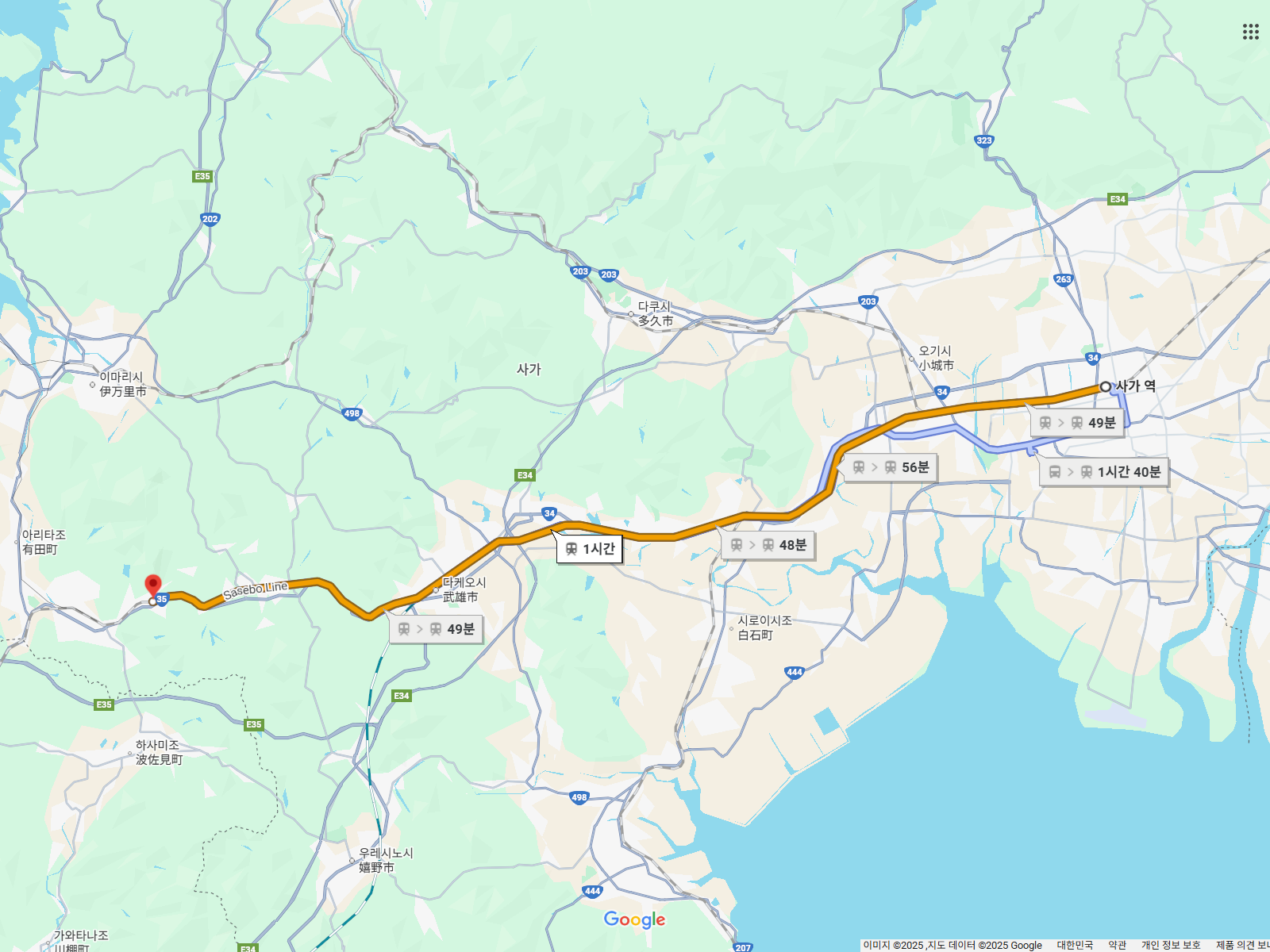 사가역으로 갑니다.