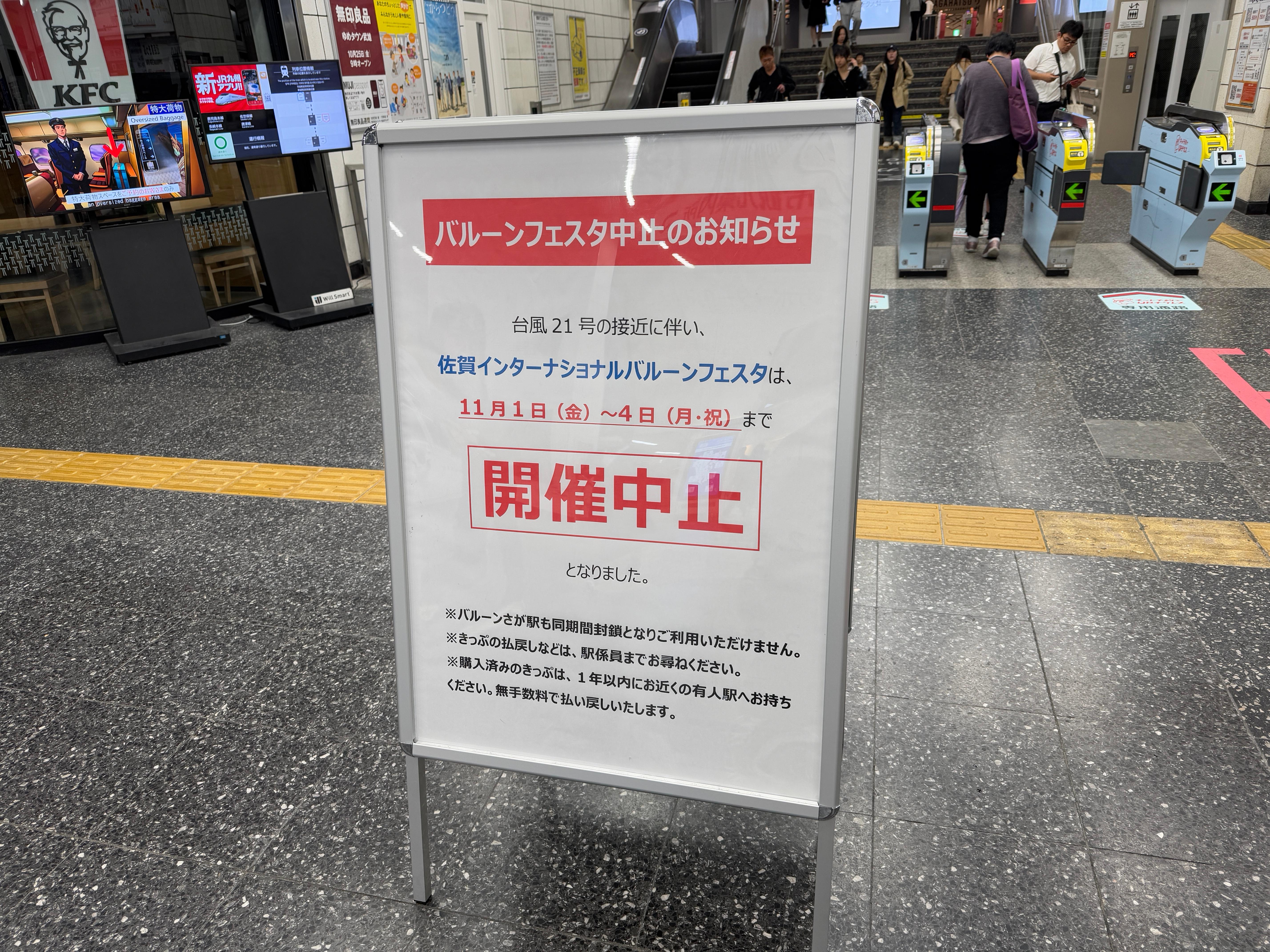 역사 내에 여러 전광판을 통해 행사가 취소되었으니
